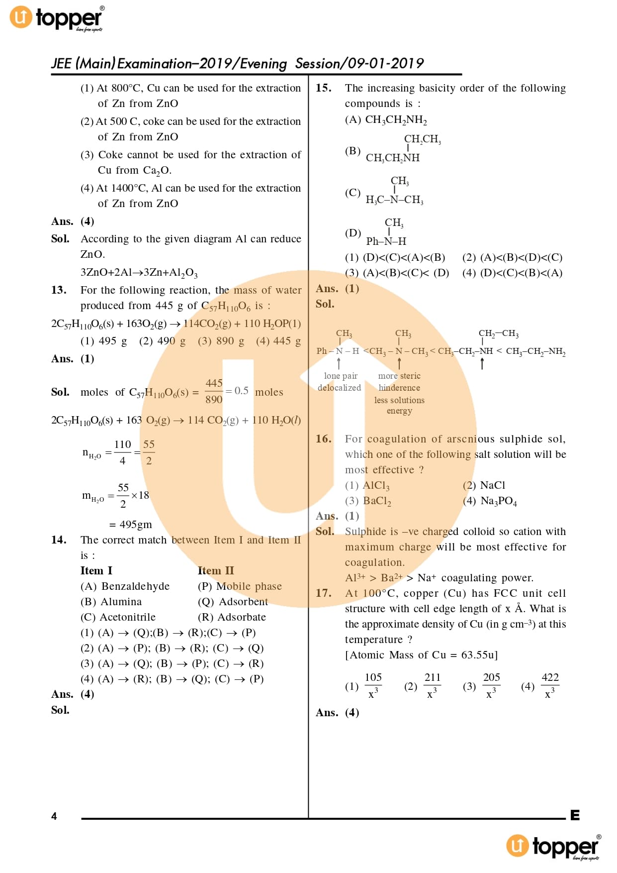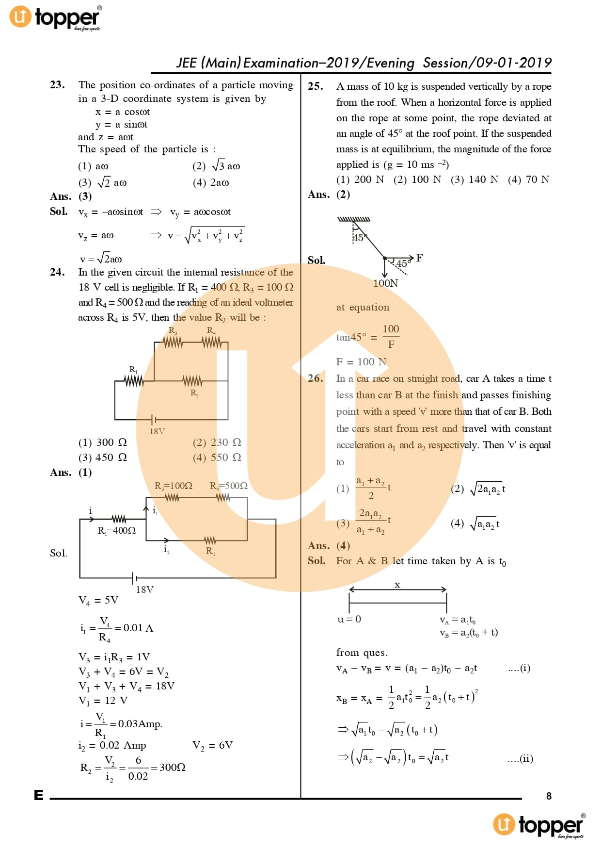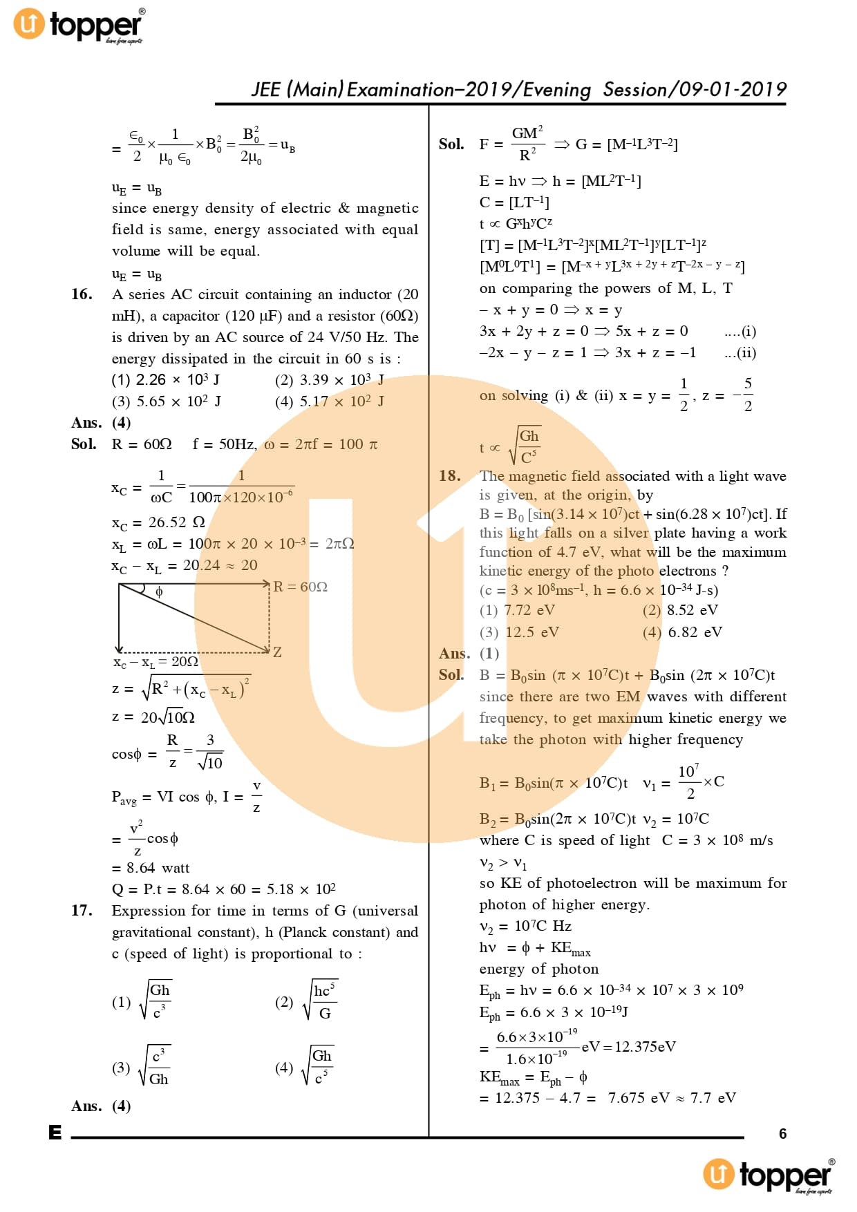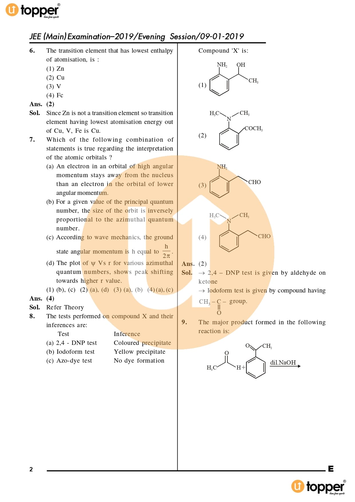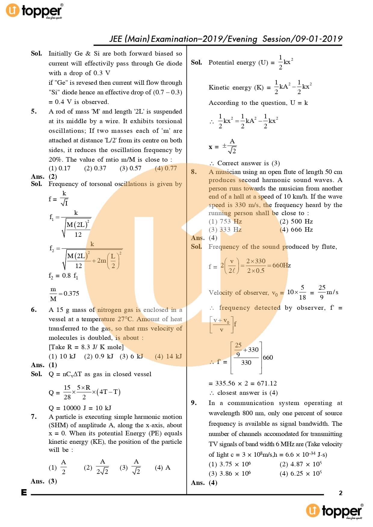 JEE Main 2019 Previous Year Question Paper with Solution 2nd Shift (9th January Evening)