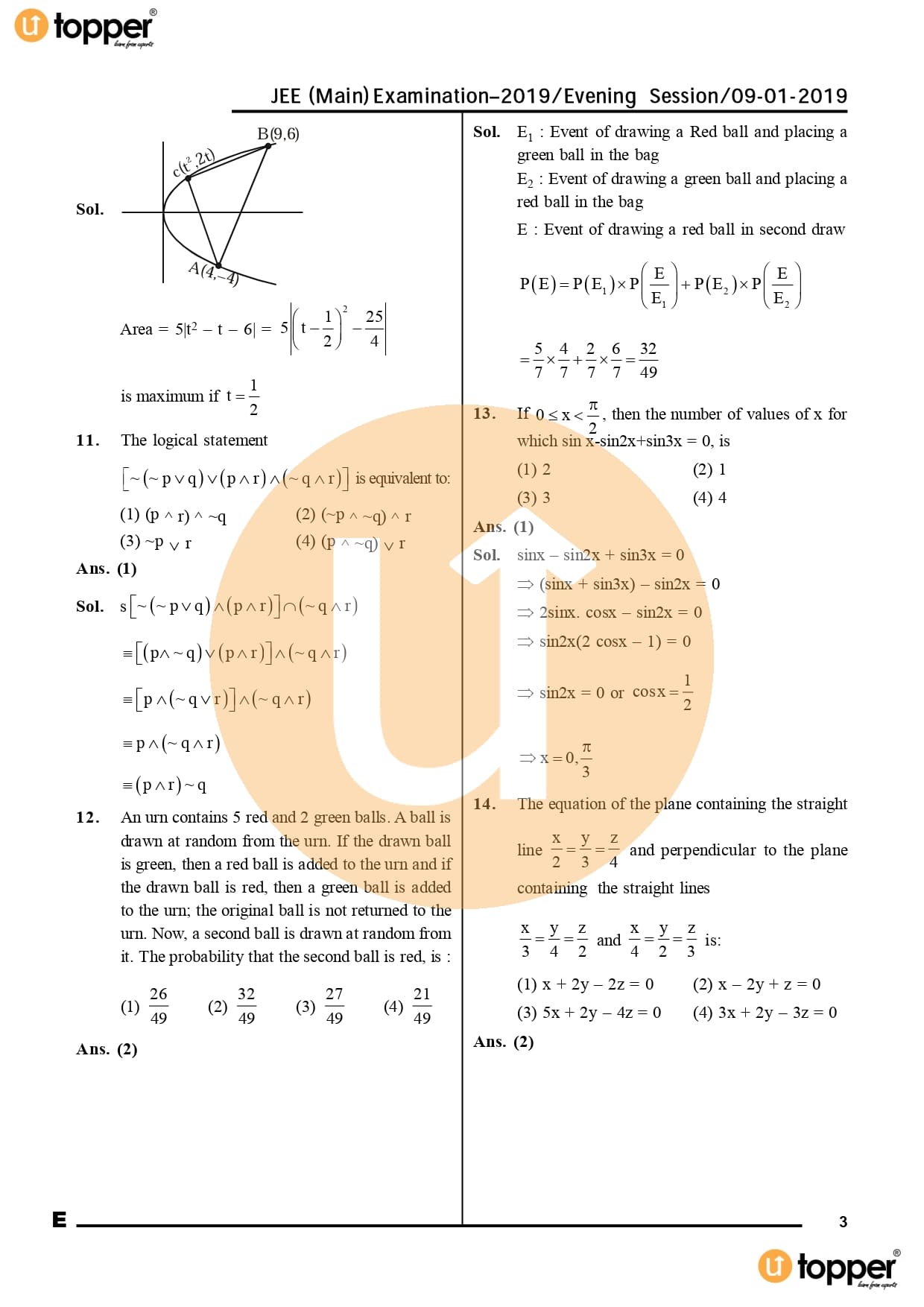 JEE Main 2019 Previous Year Question Paper with Solutions (9th January – Evening)