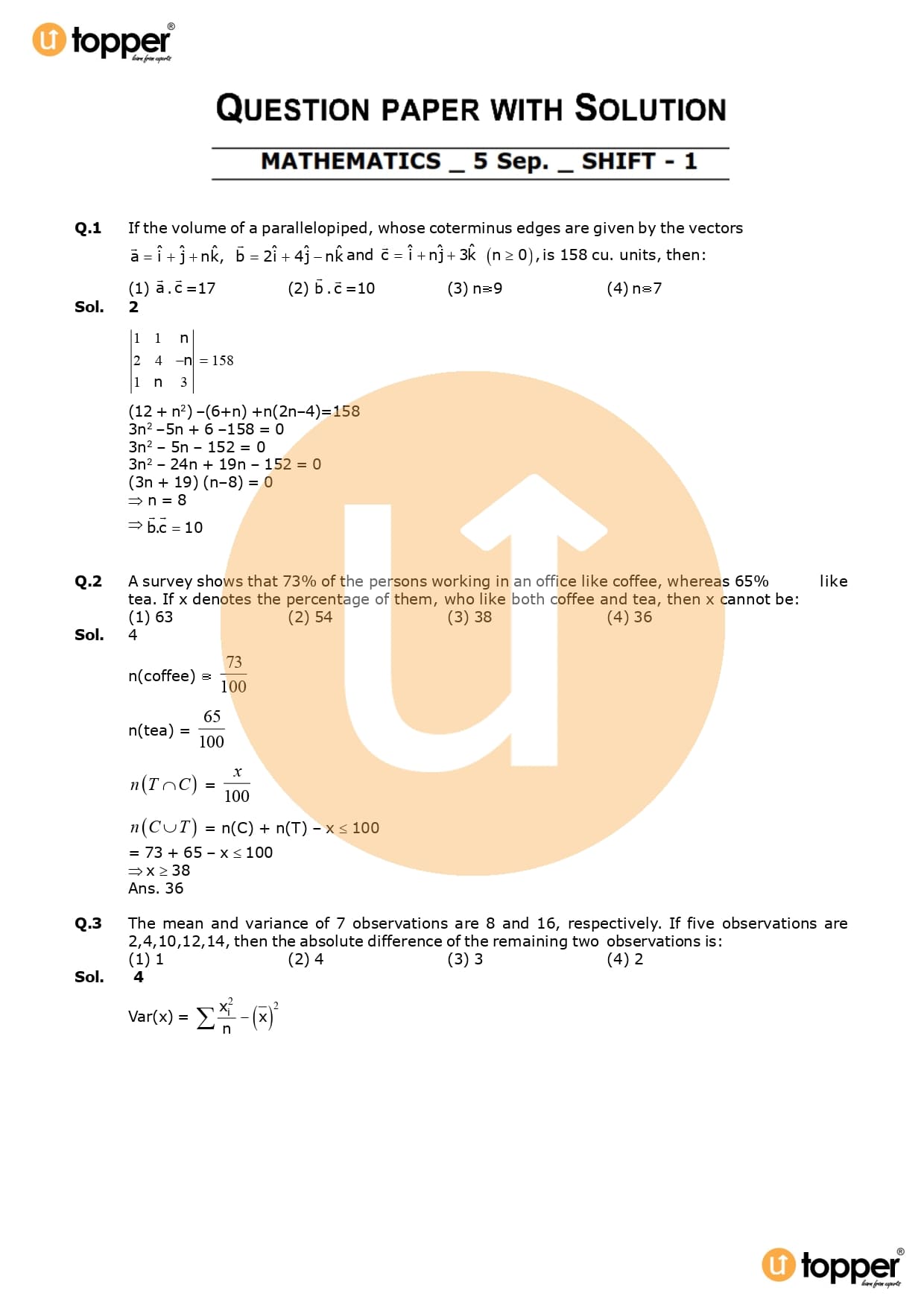 JEE Main 2020 Previous Year Question Paper with Solutions (5th September – Morning)