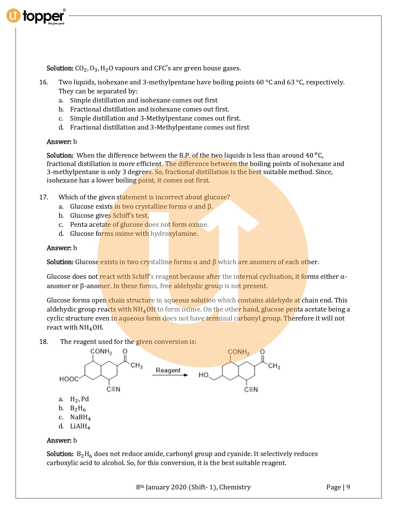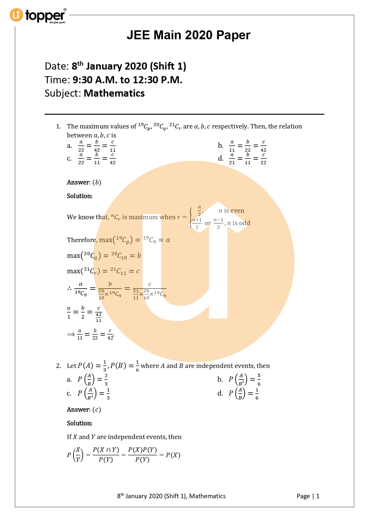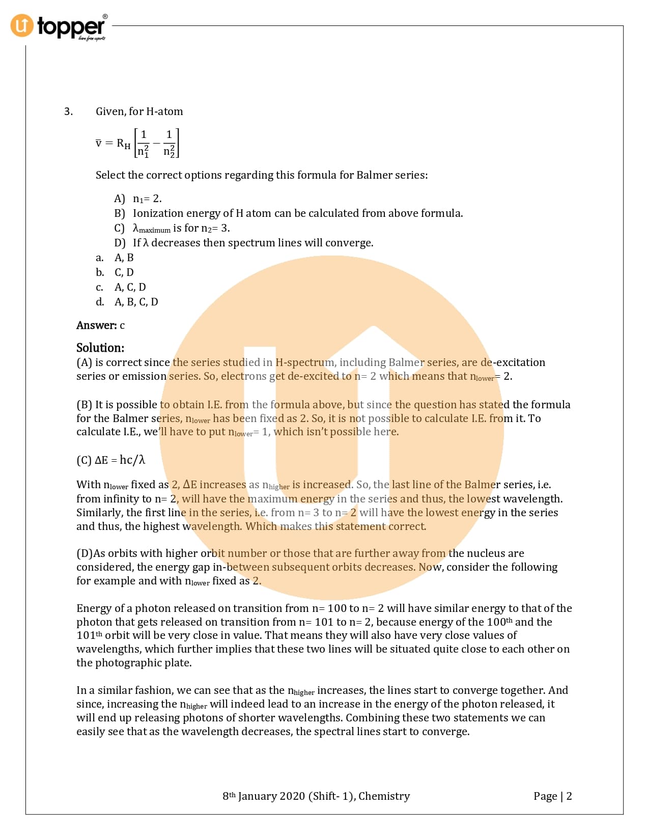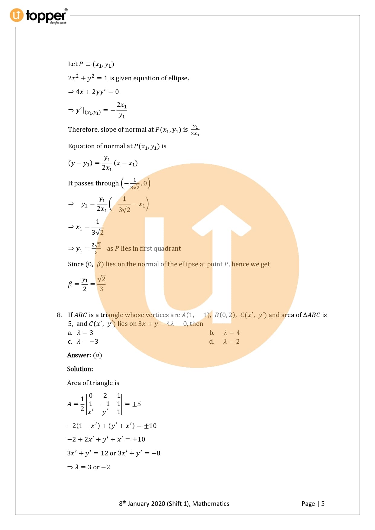 JEE Main 2020 Previous Year Question Paper with Solution 1st Shift (8 January Morning)
