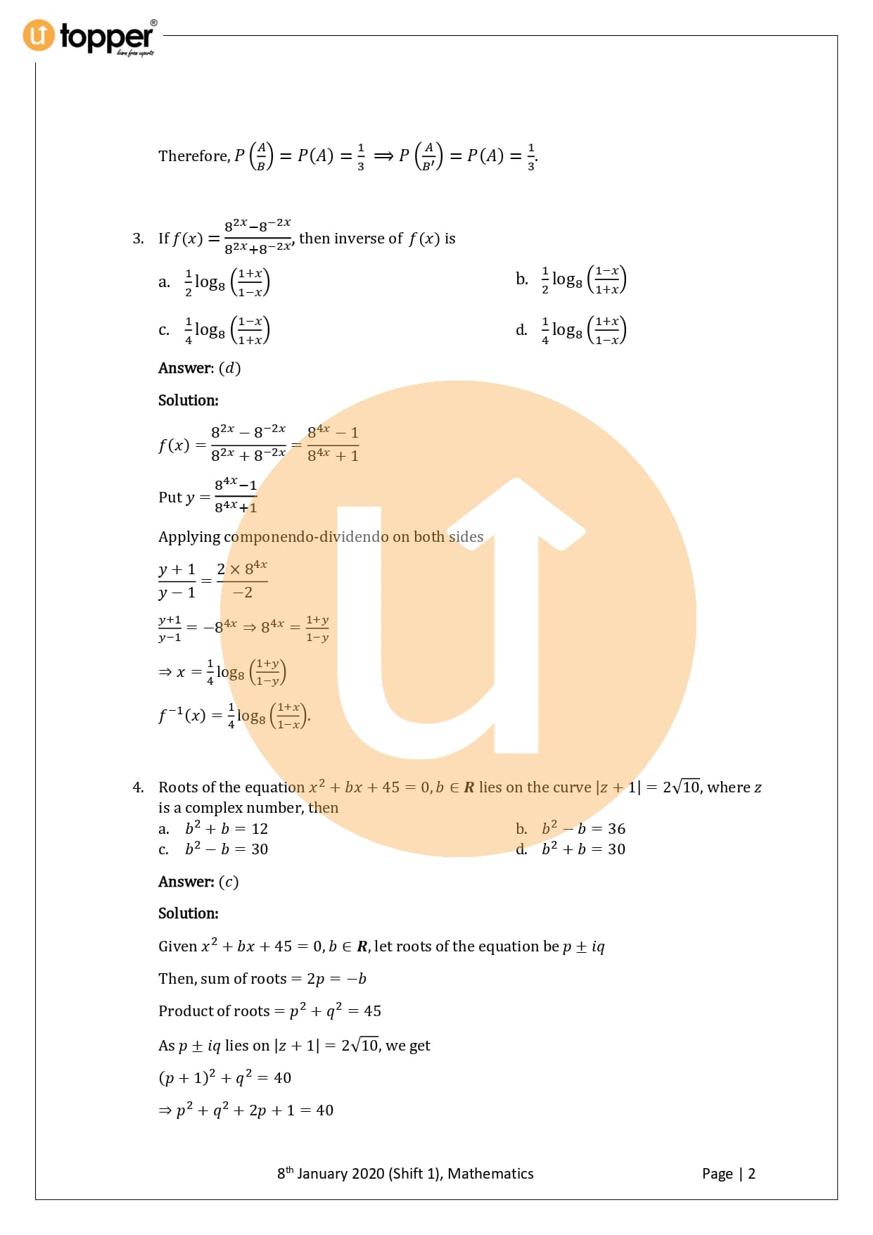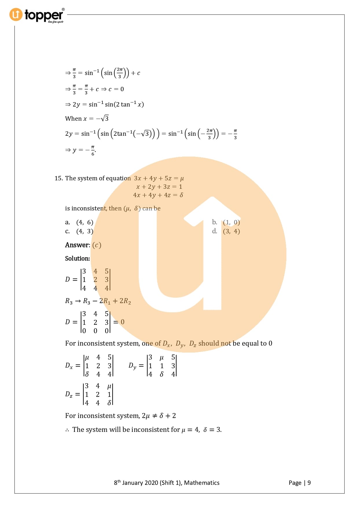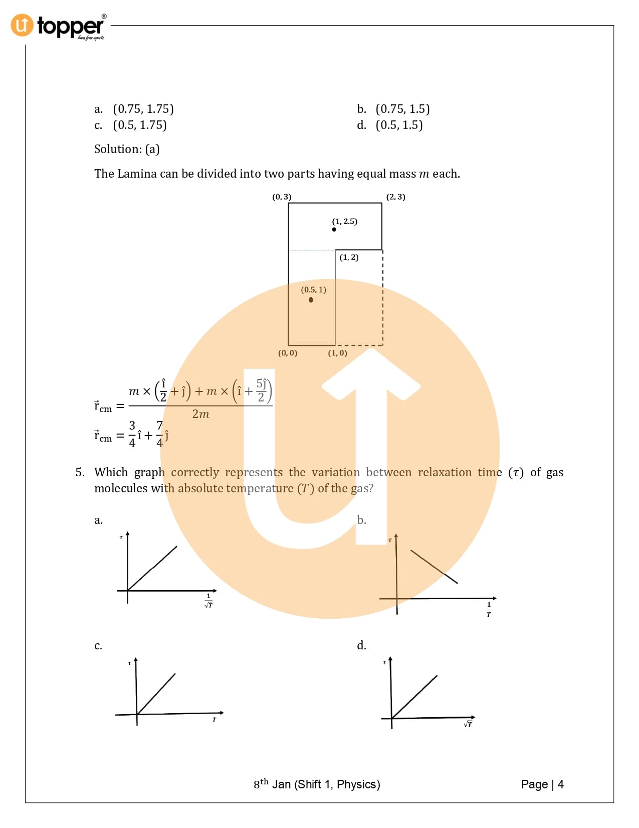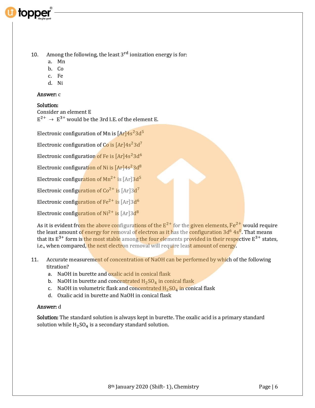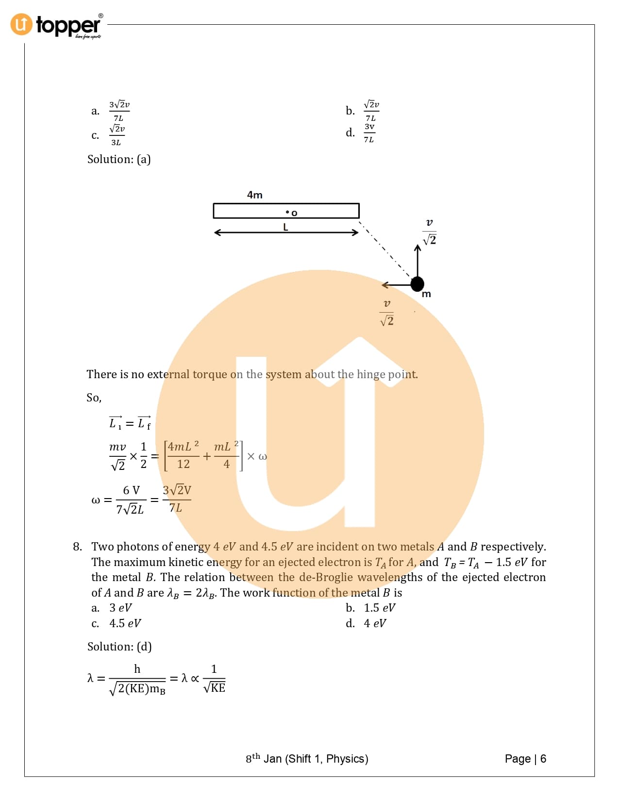 JEE Main 2020 Previous Year Question Paper with Solution 1st Shift (8 January Morning)
