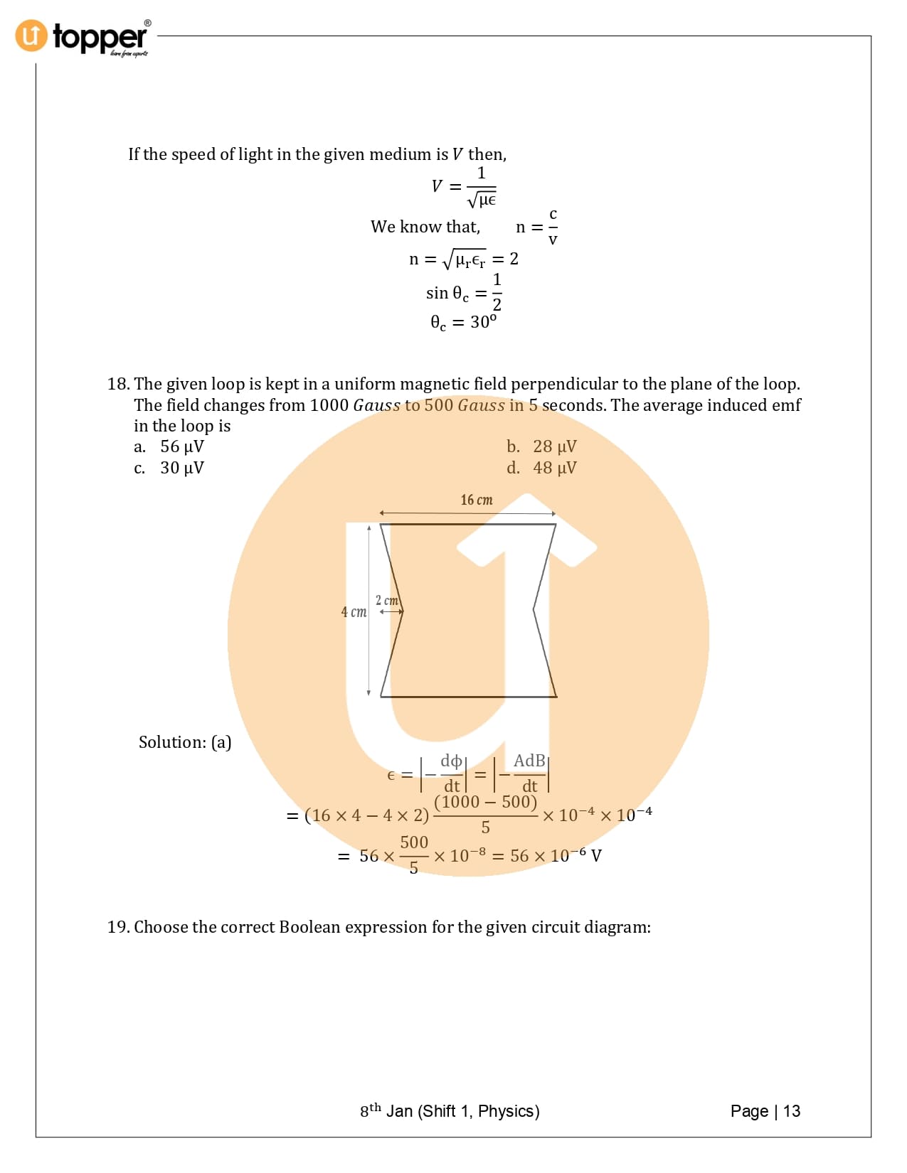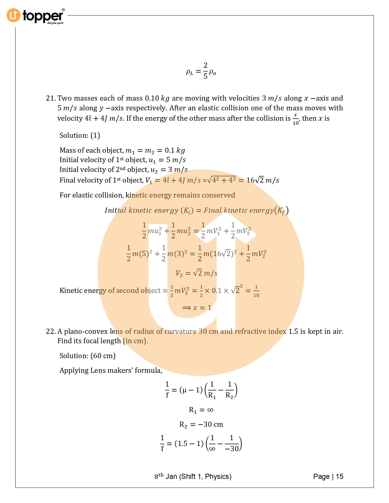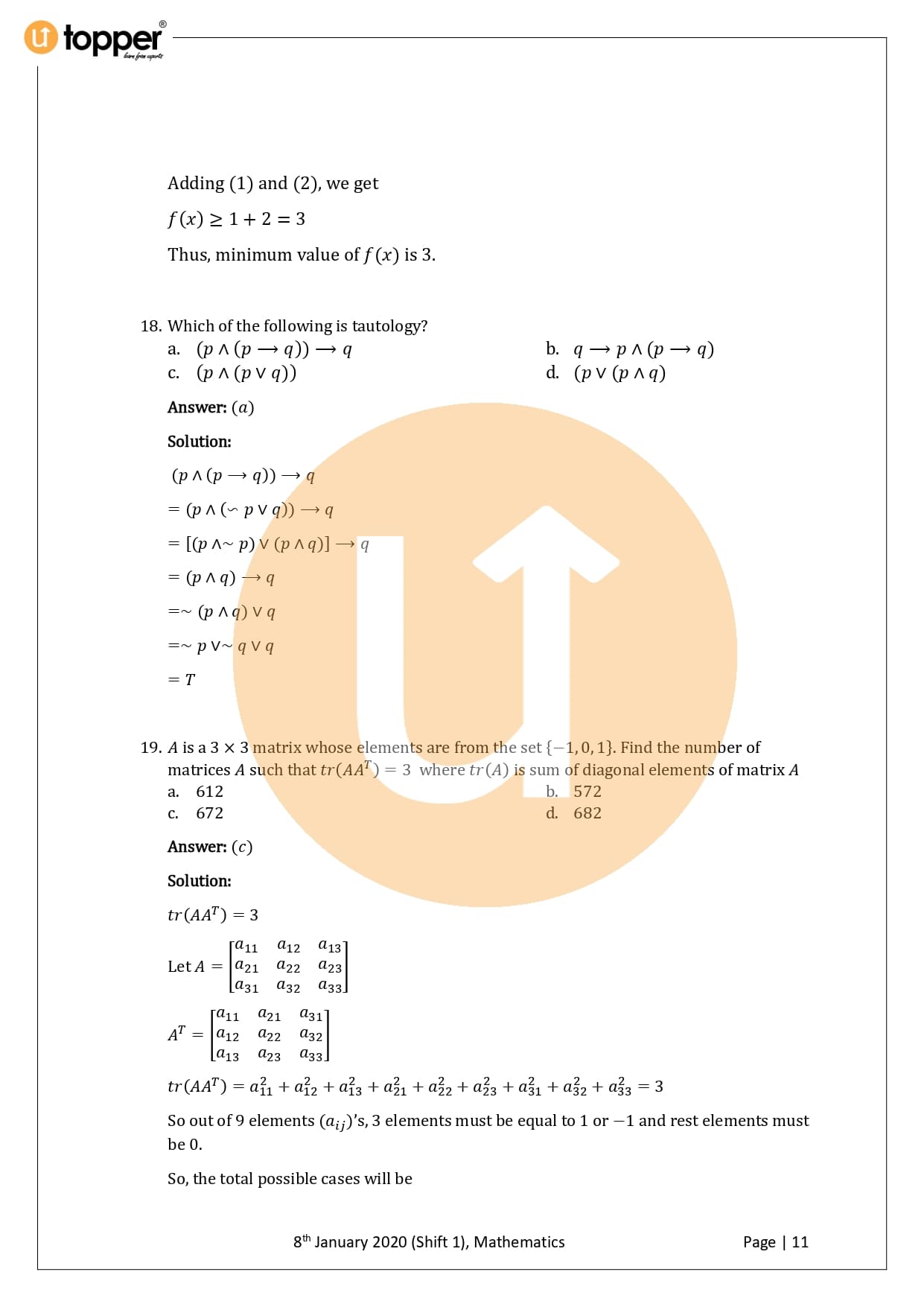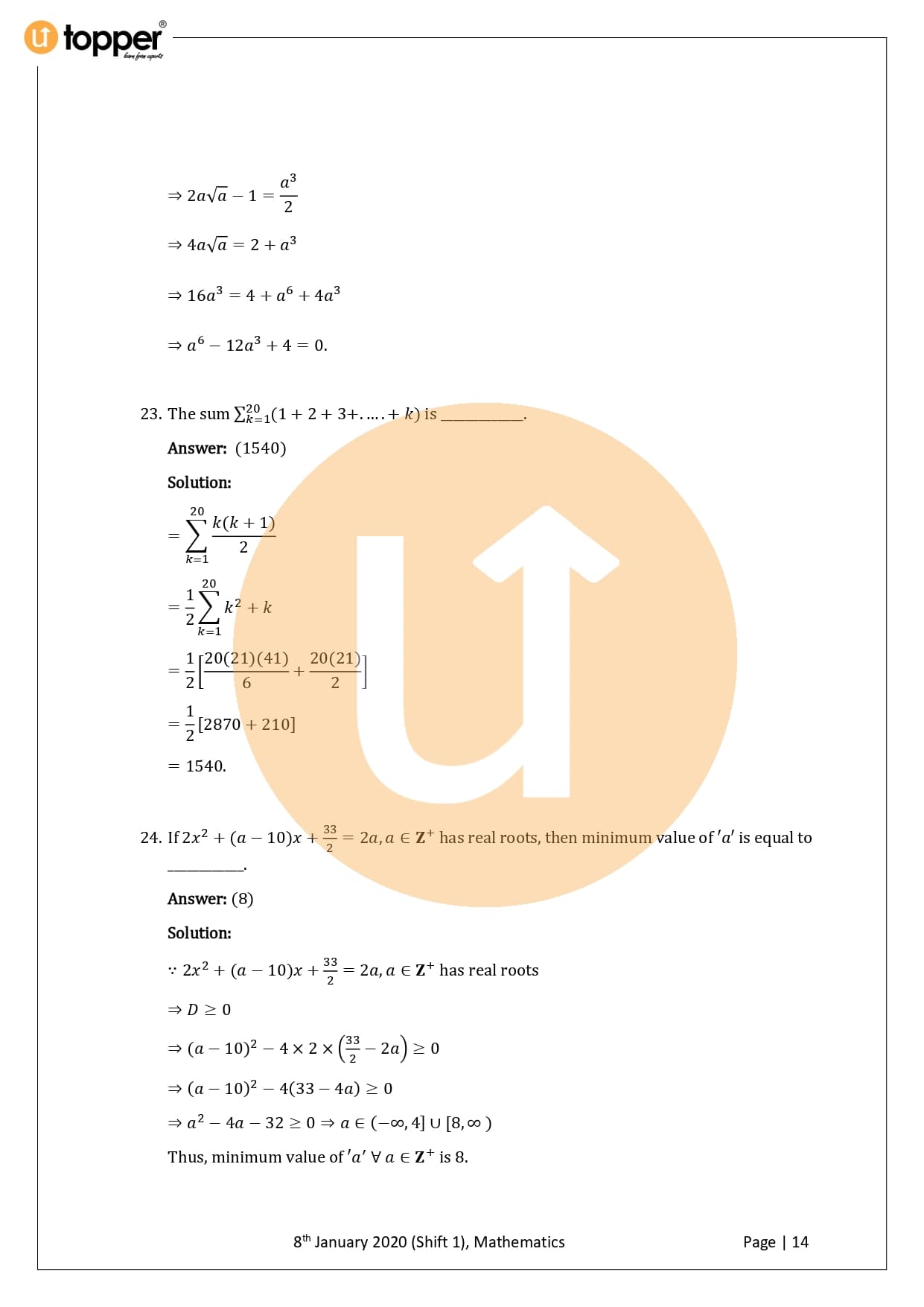 JEE Main 2020 Previous Year Question Paper with Solution 1st Shift (8 January Morning)