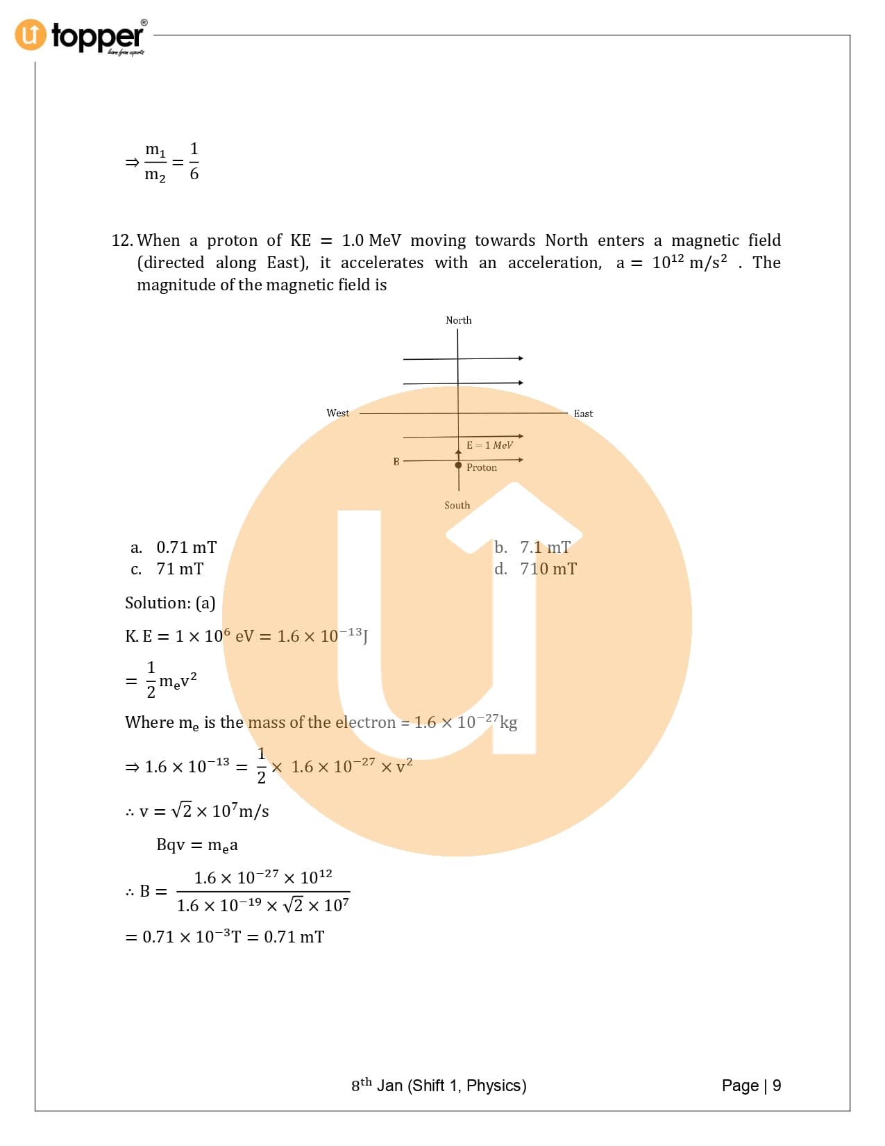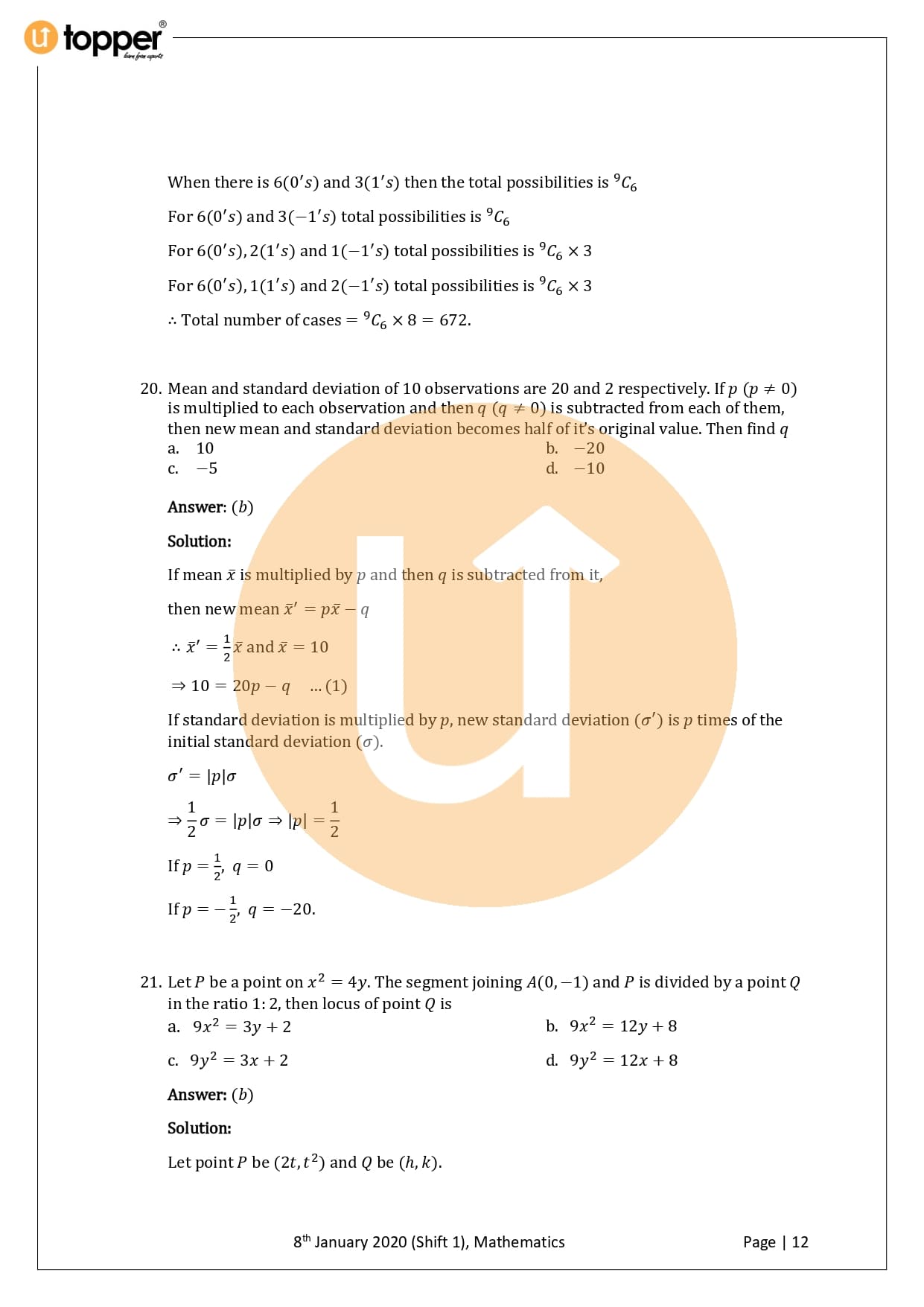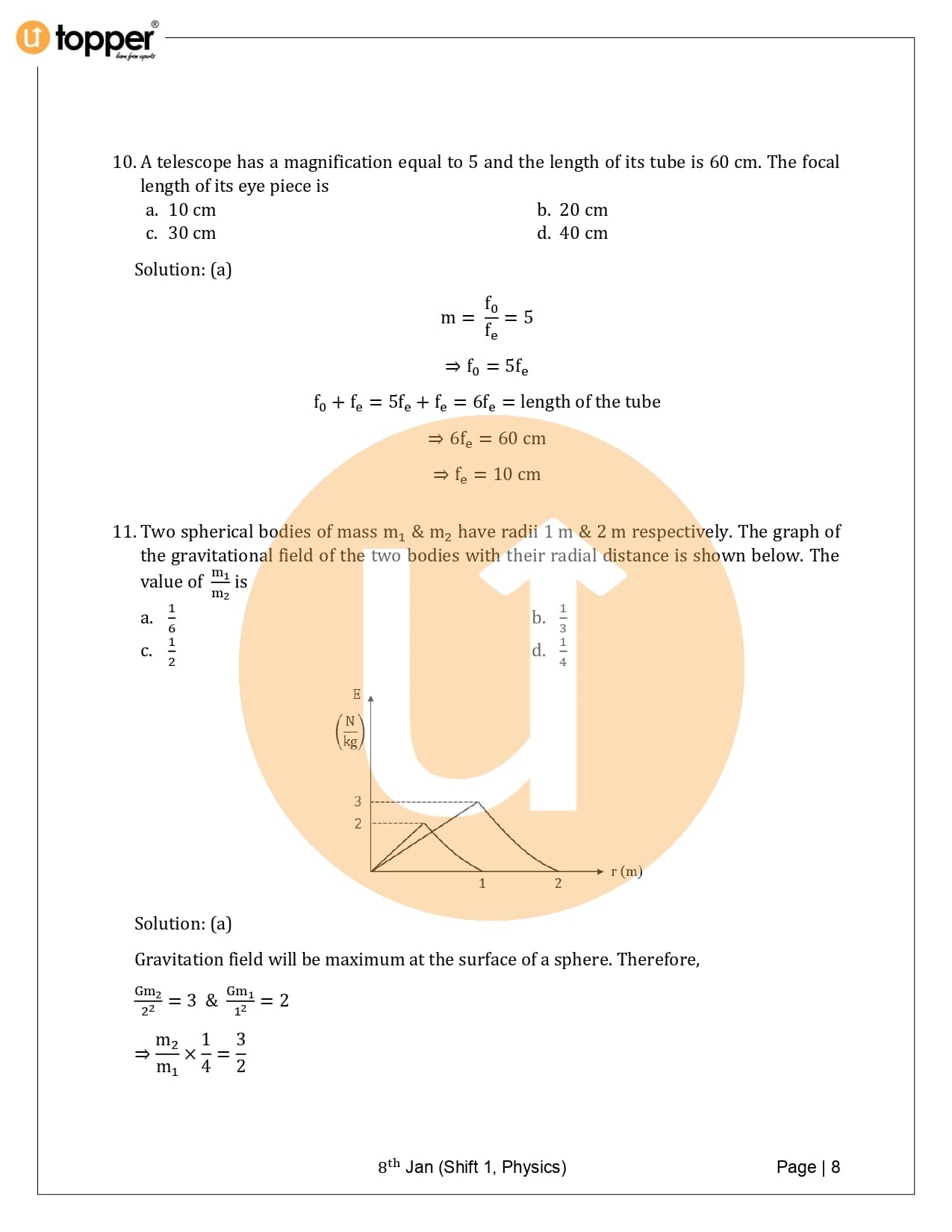 JEE Main 2020 Previous Year Question Paper with Solutions (8th January – Morning)
