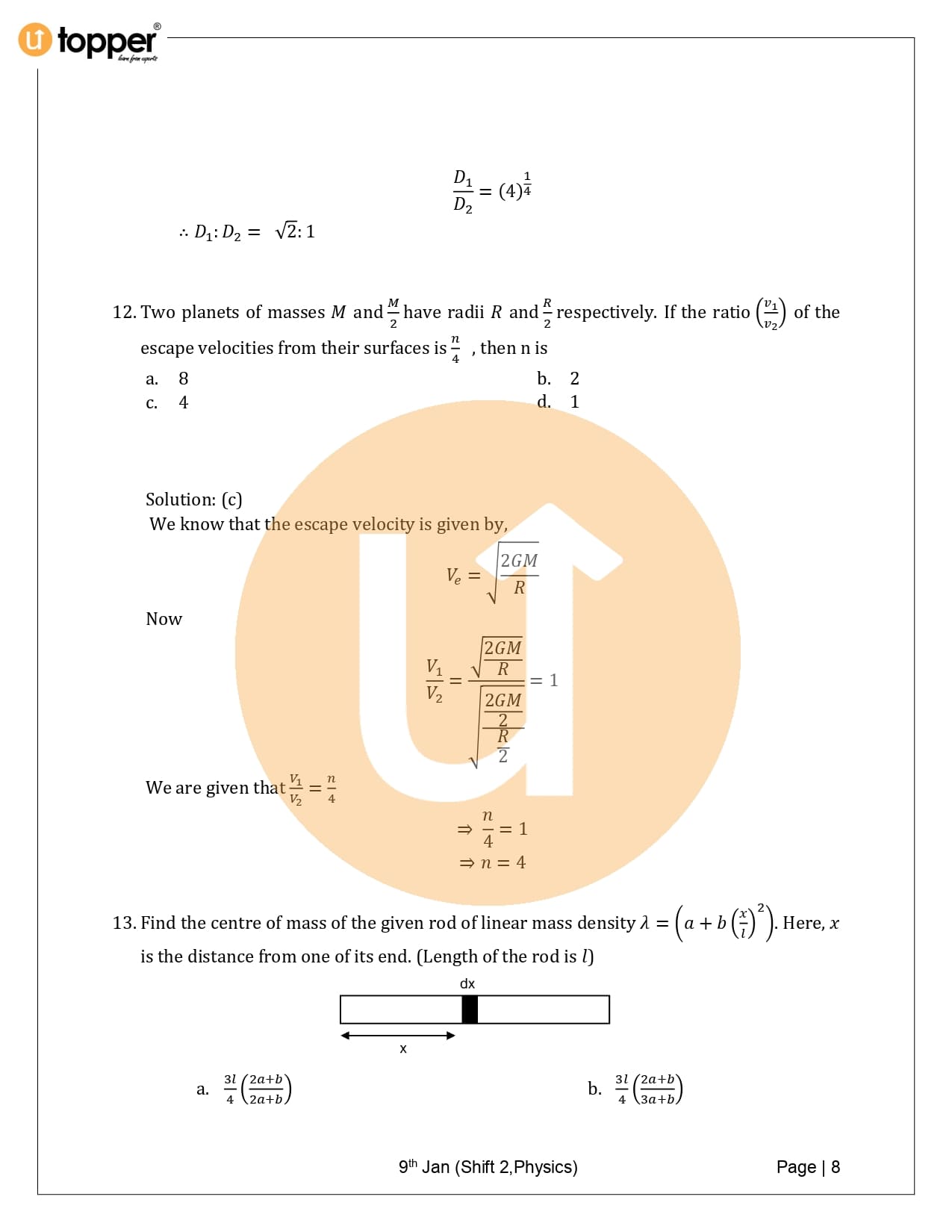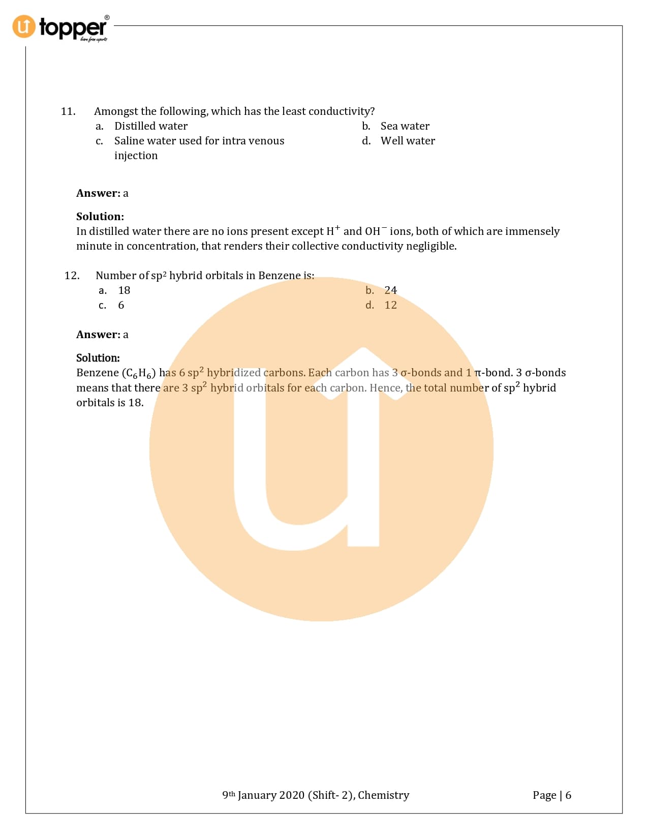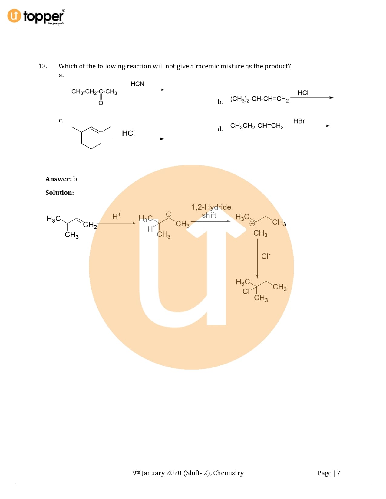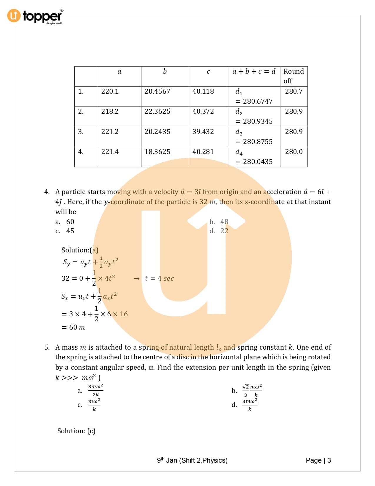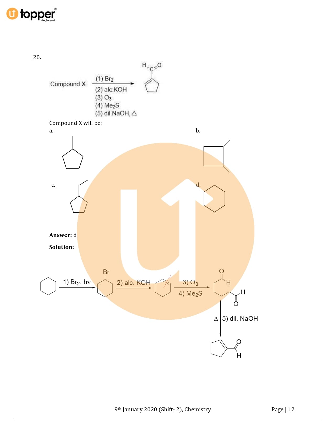 JEE Main 2020 Previous Year Question Paper with Solutions (9th January – Evening)