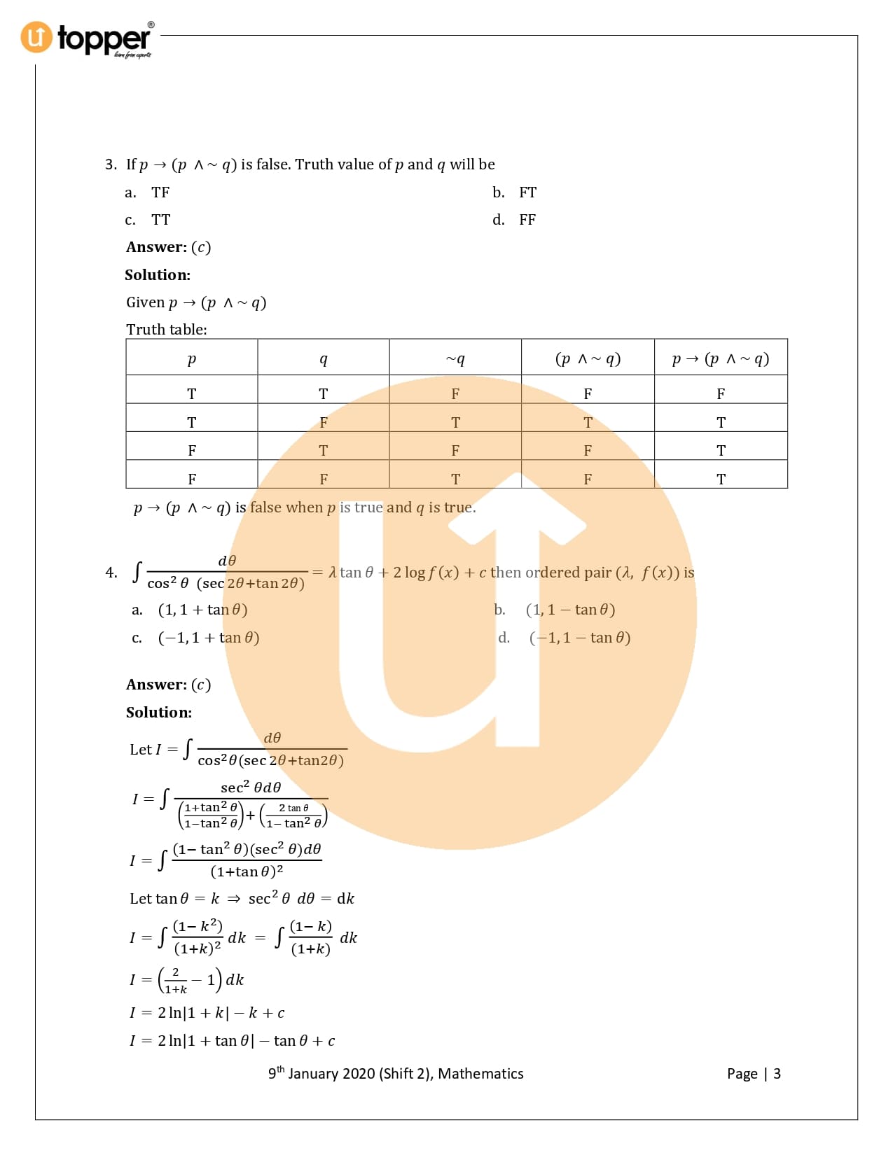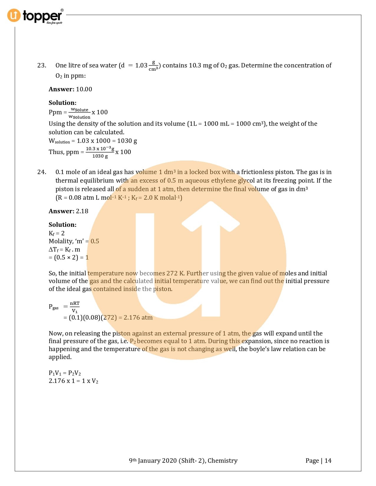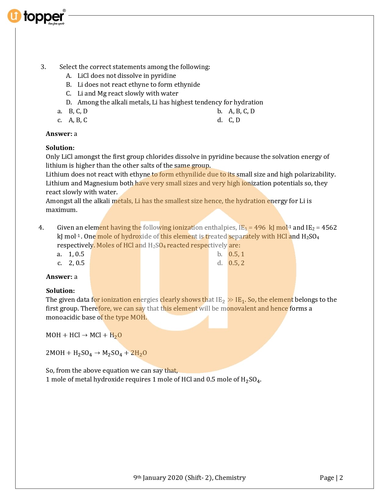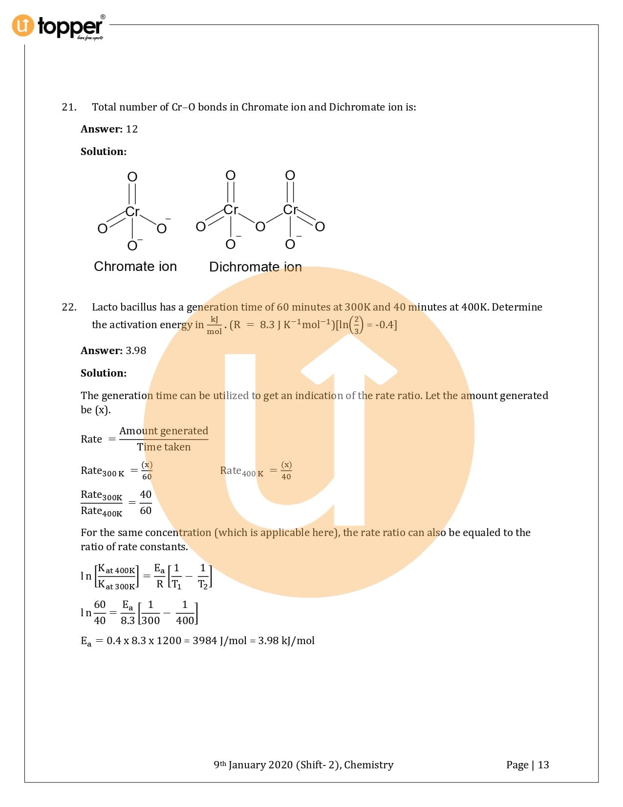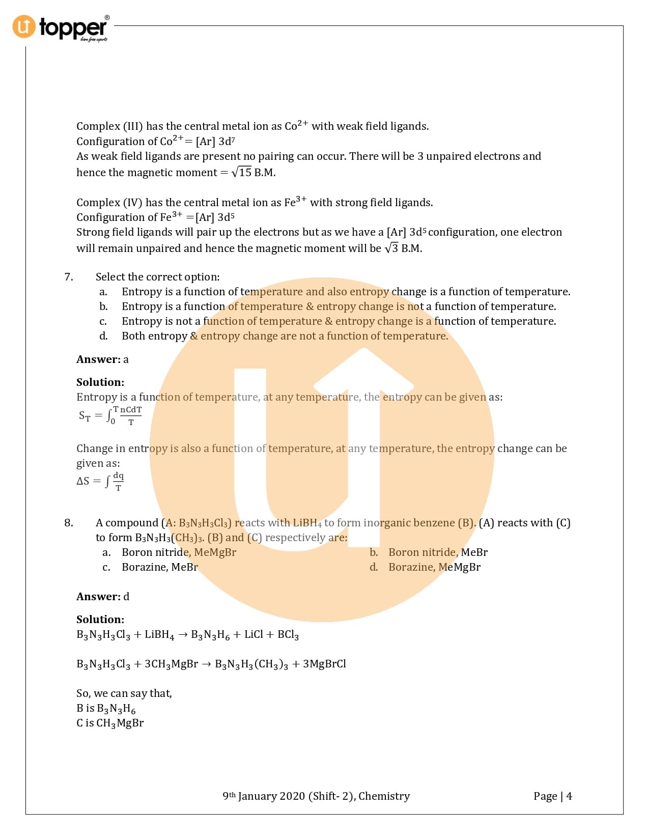 JEE Main 2020 Previous Year Question Paper with Solutions (9th January – Evening)