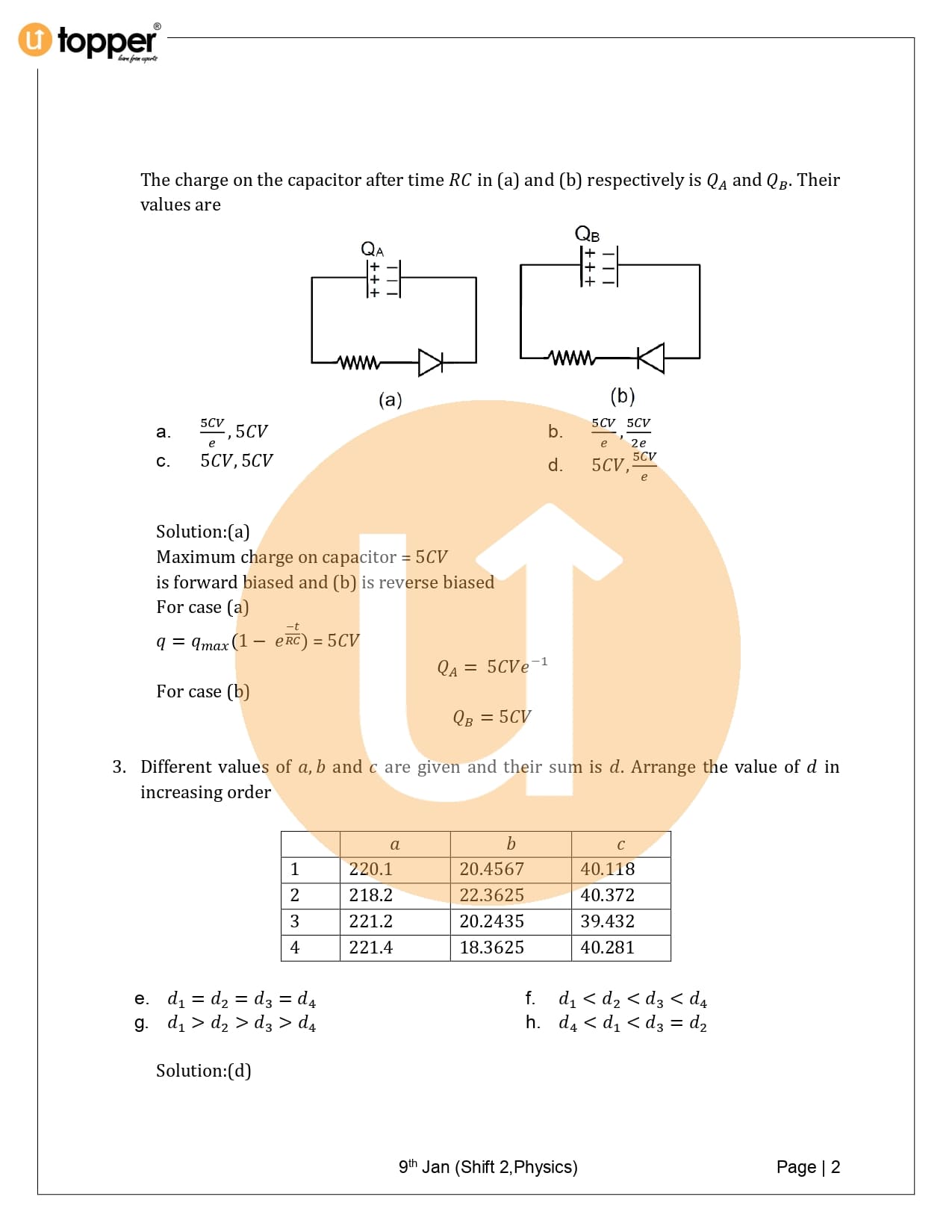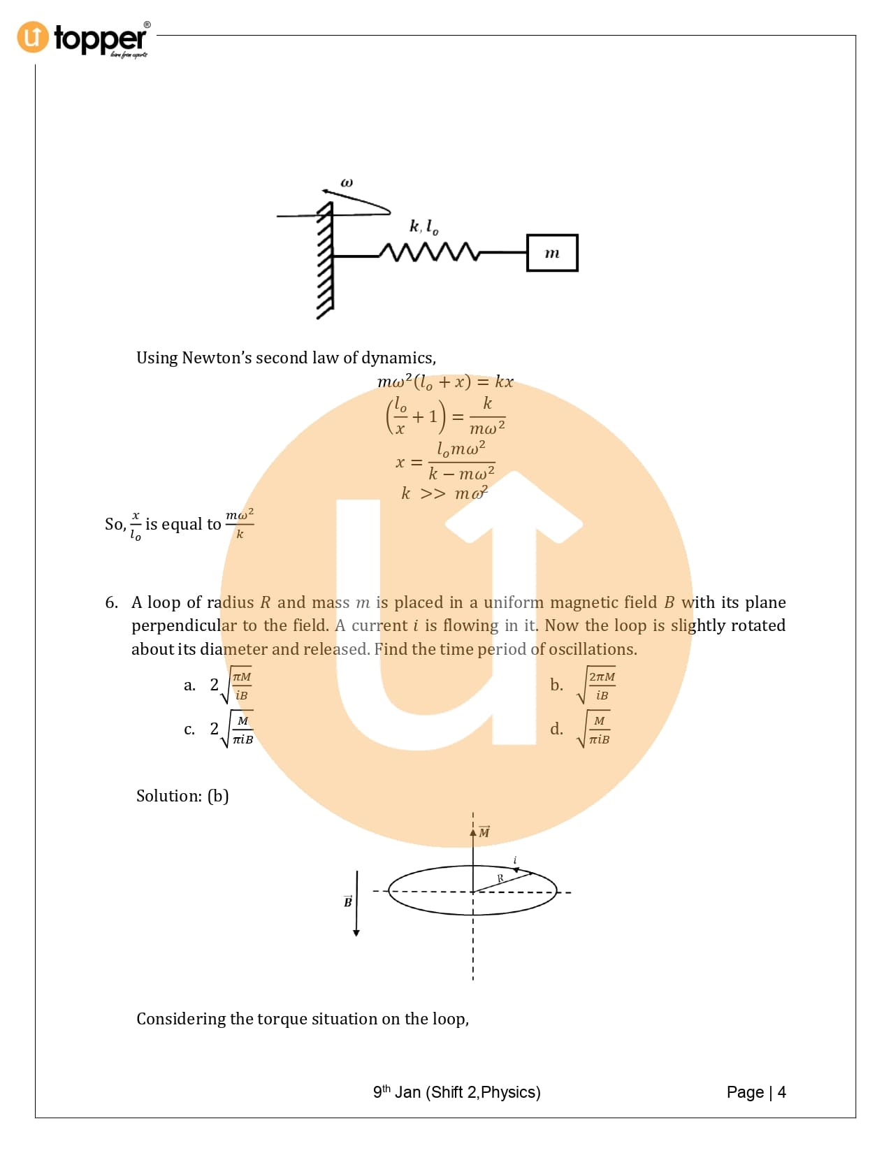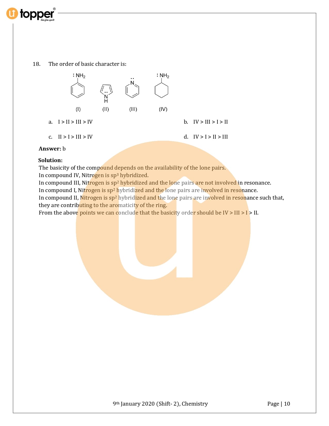 JEE Main 2020 Question Paper 9 Jan 2nd Shift