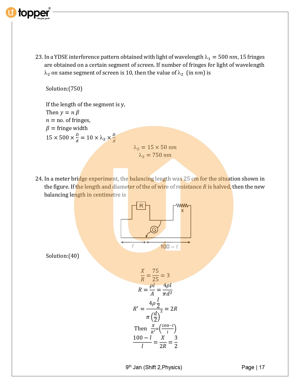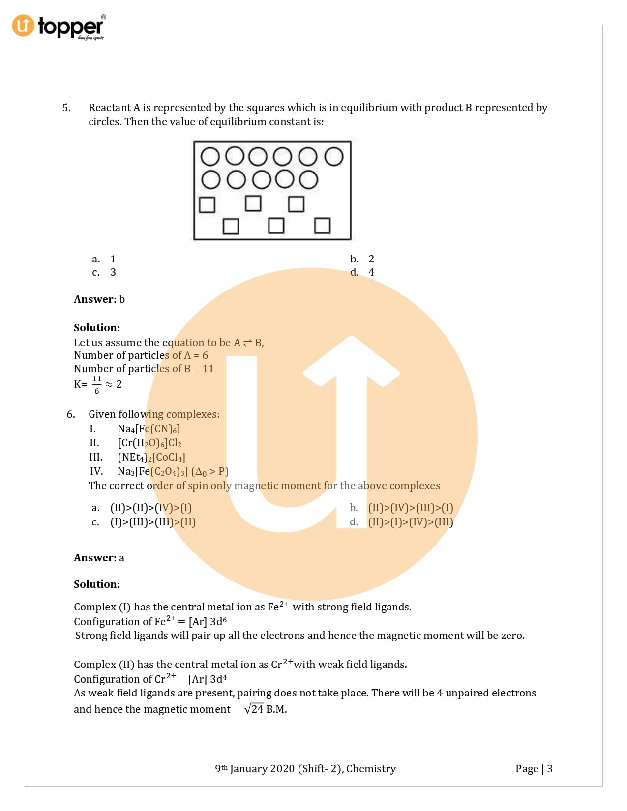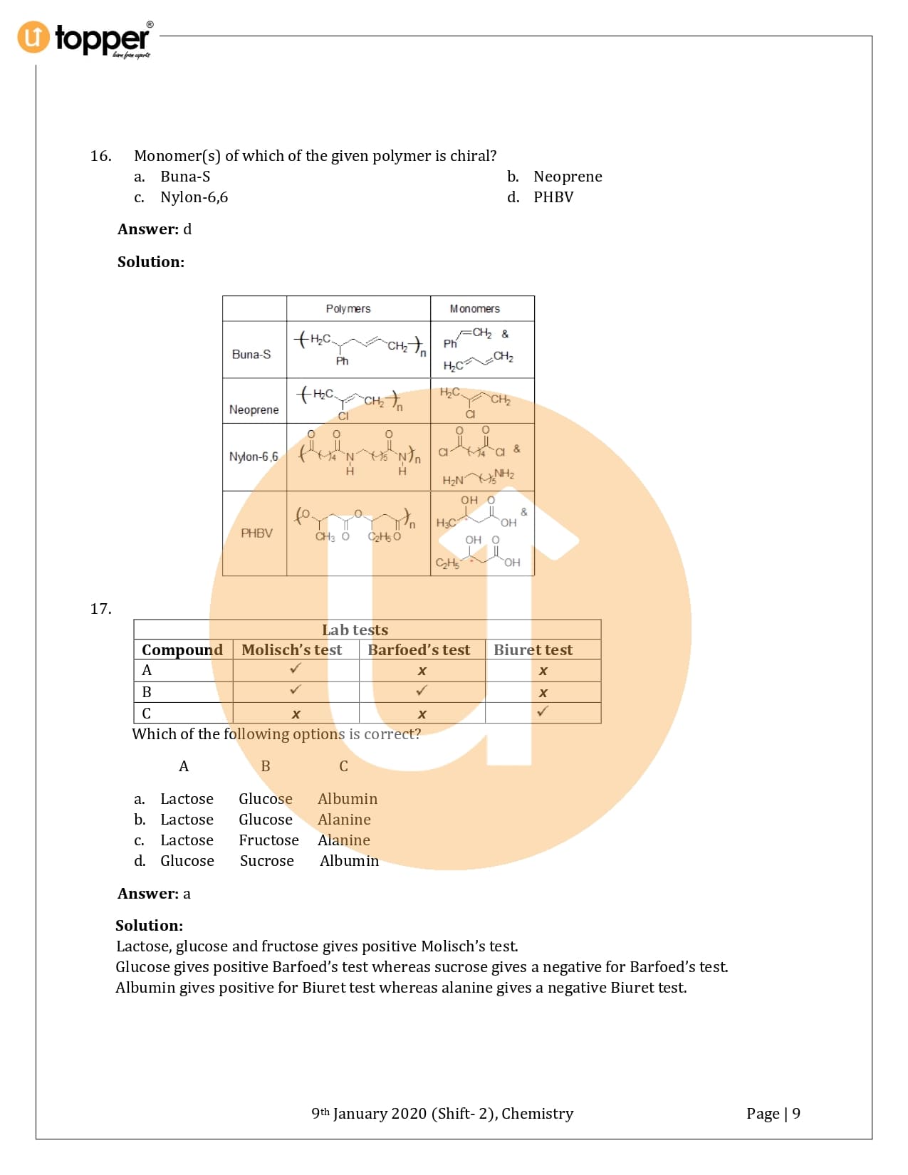 JEE Main 2020 Question Paper 9 Jan 2nd Shift