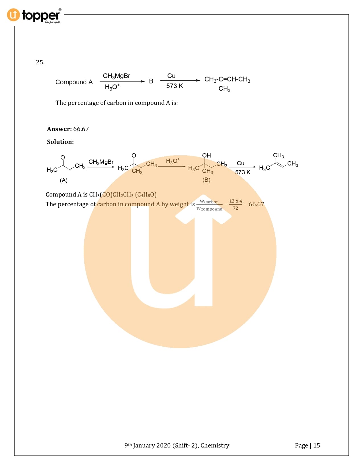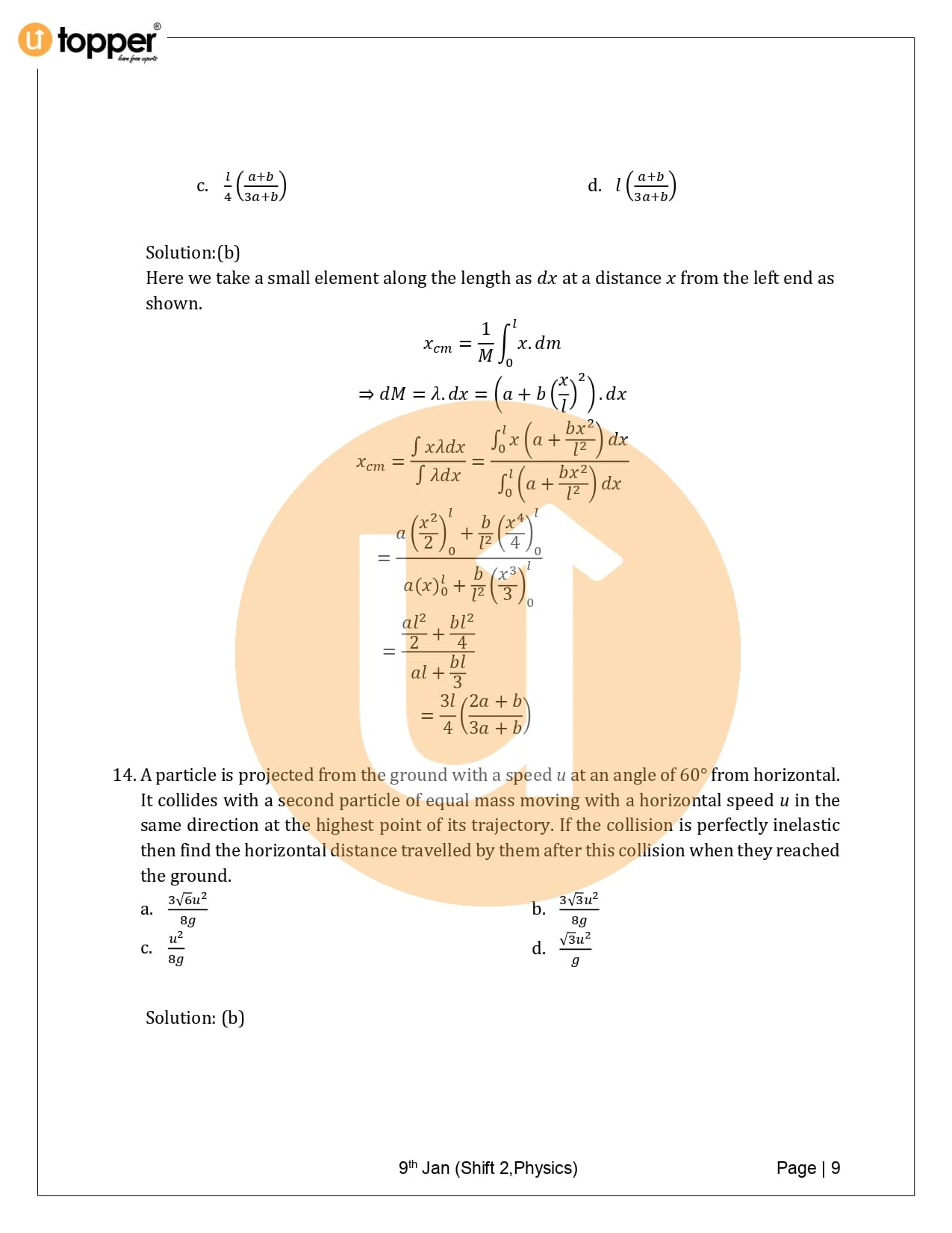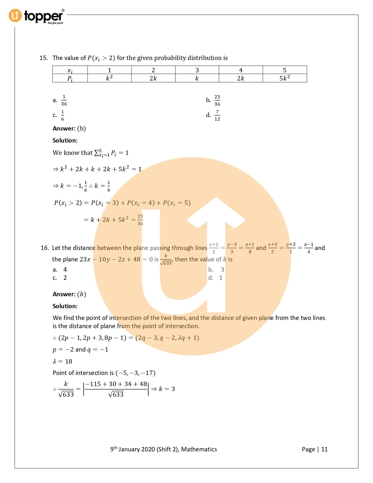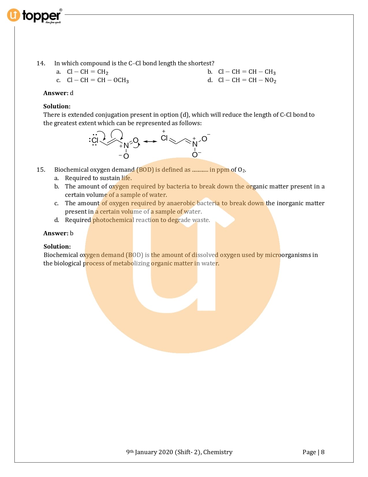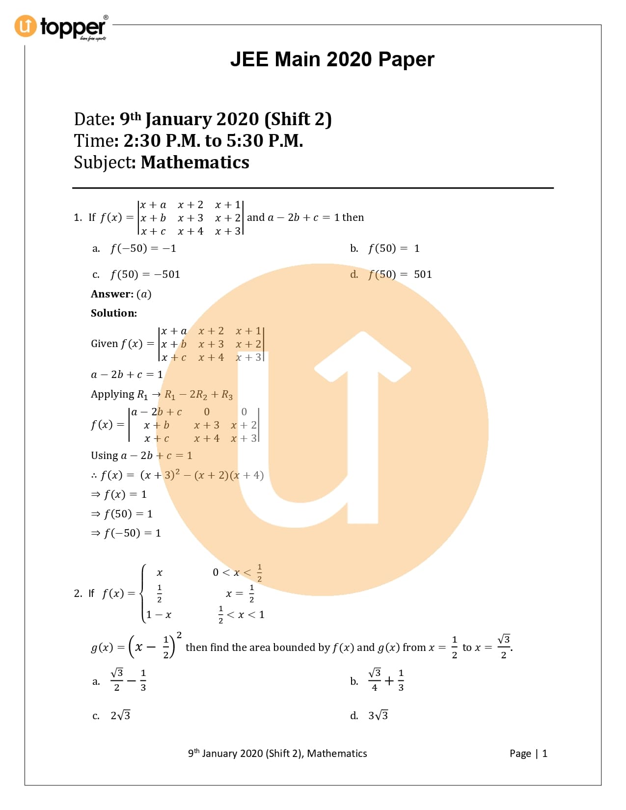 JEE Main 2020 Previous Year Question Paper with Solution 2nd Shift (9 January Evening)