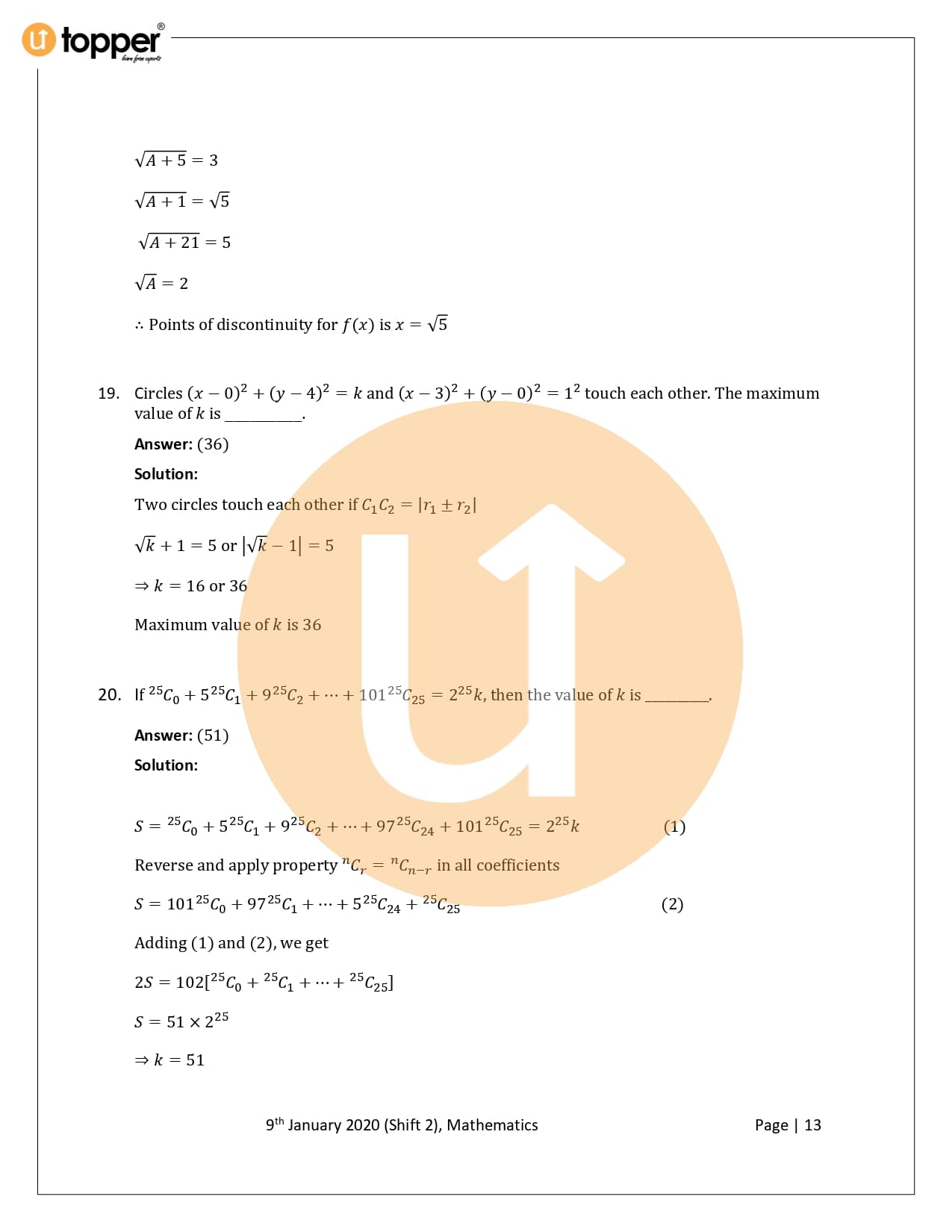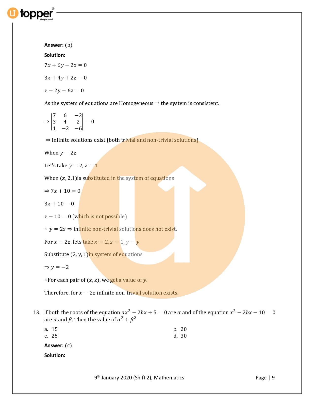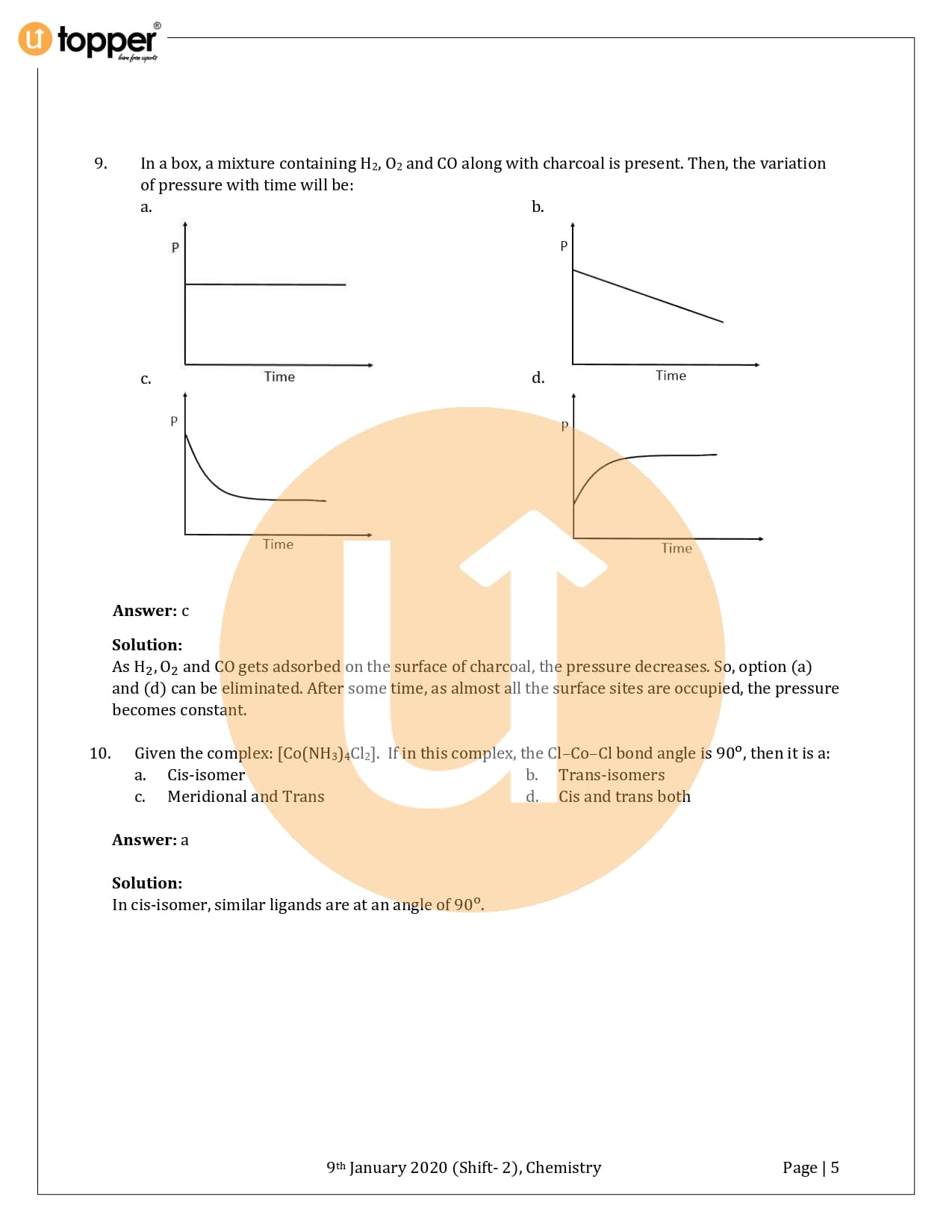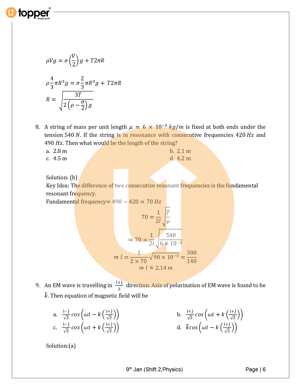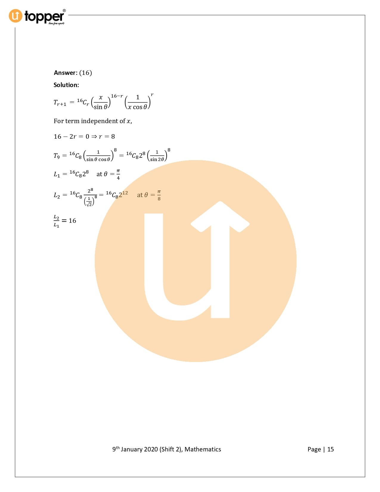 JEE Main 2020 Previous Year Question Paper with Solution 2nd Shift (9 January Evening)