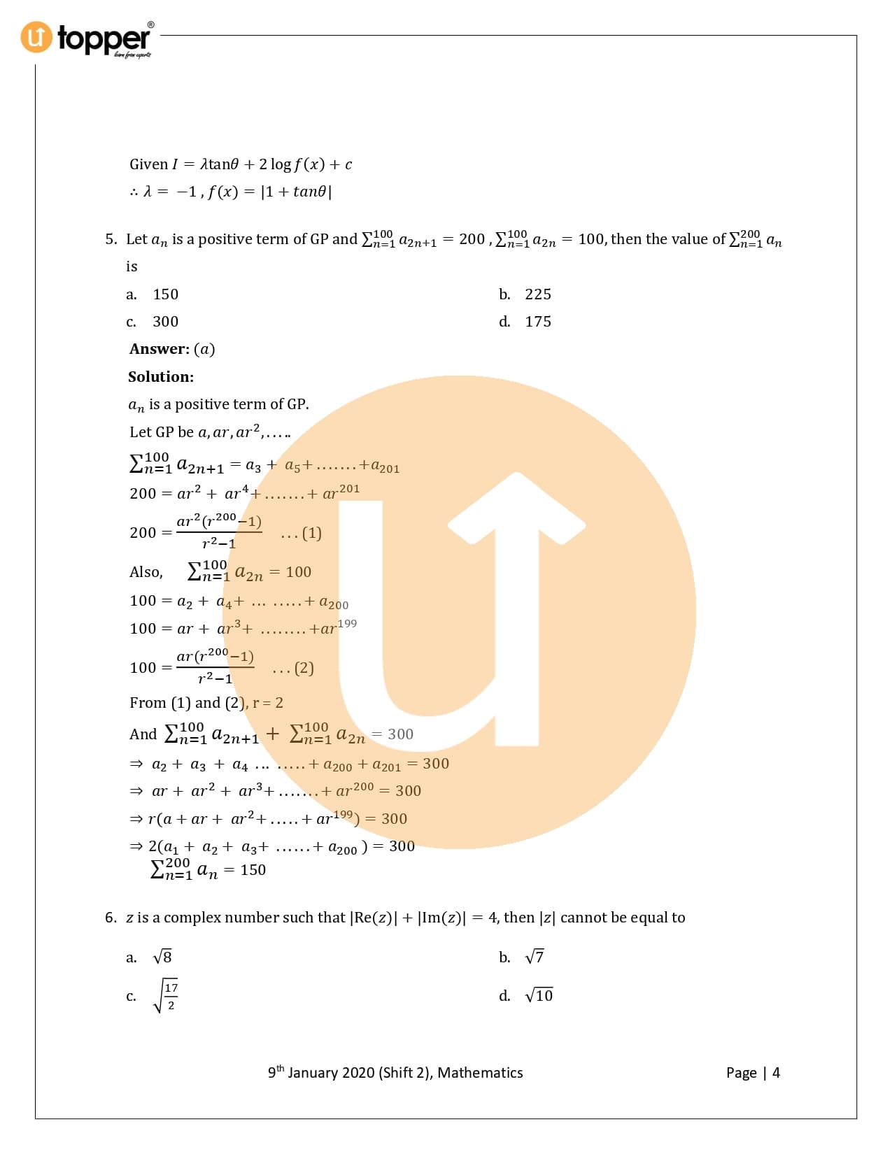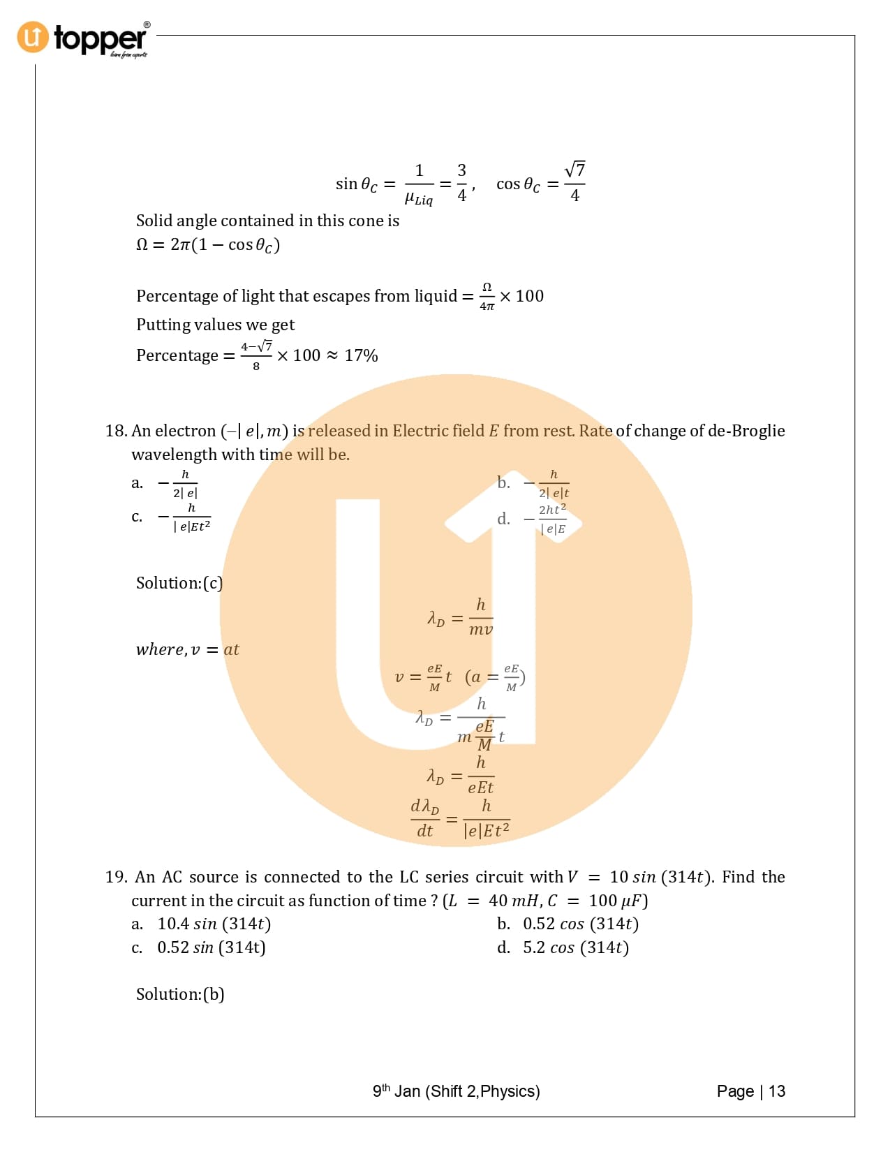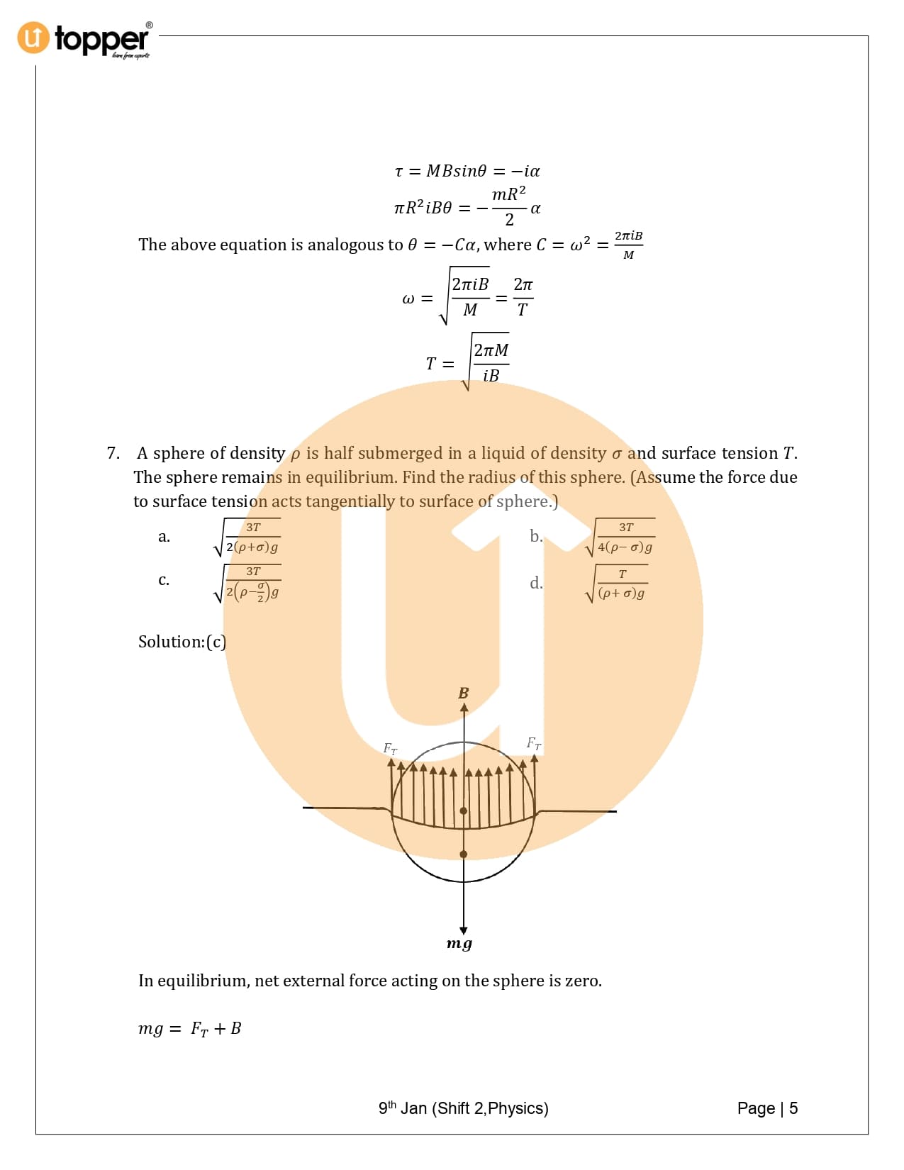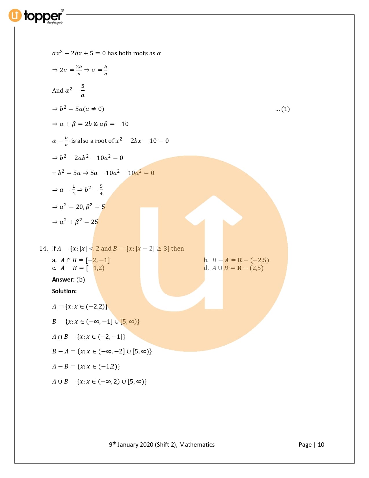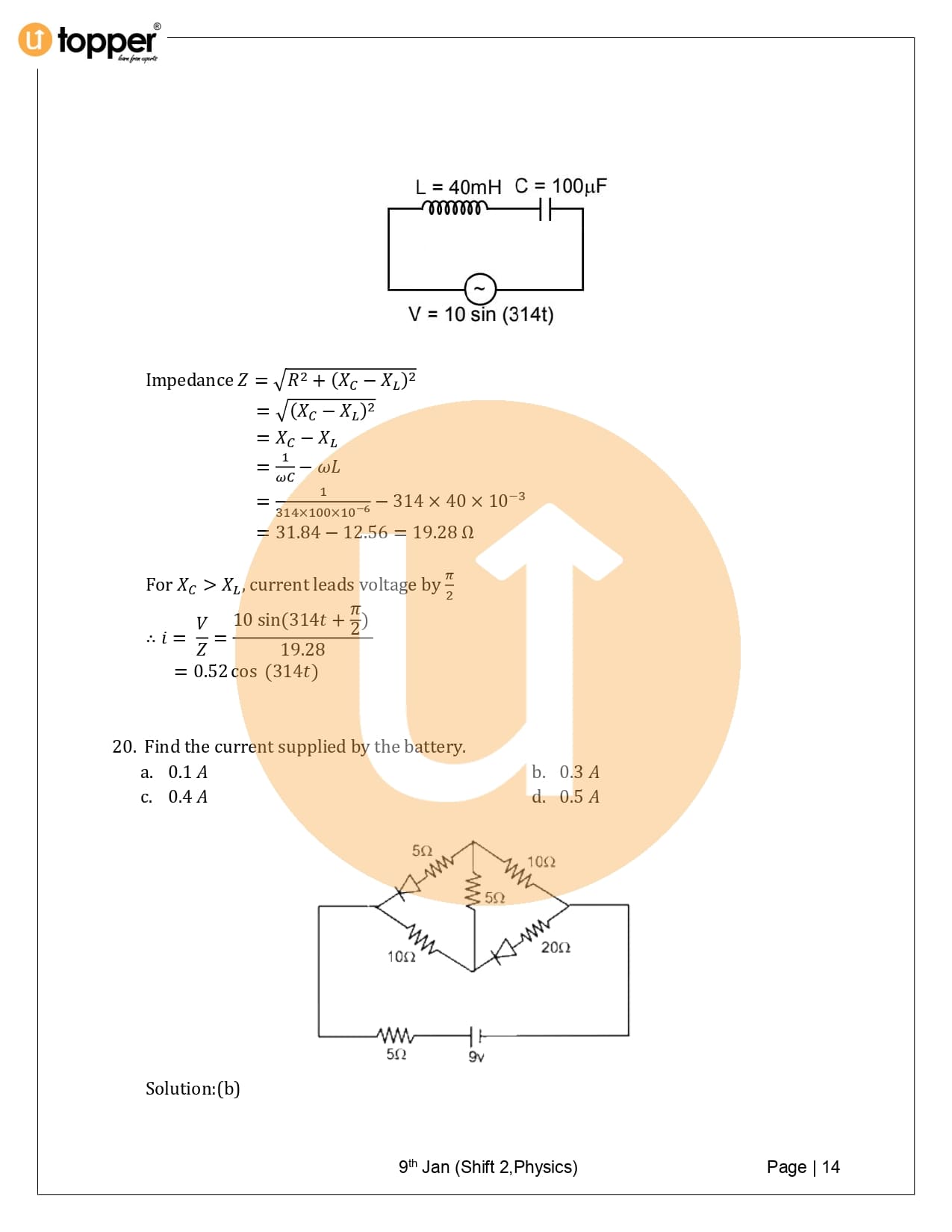 JEE Main 2020 Previous Year Question Paper with Solution 2nd Shift (9 January Evening)