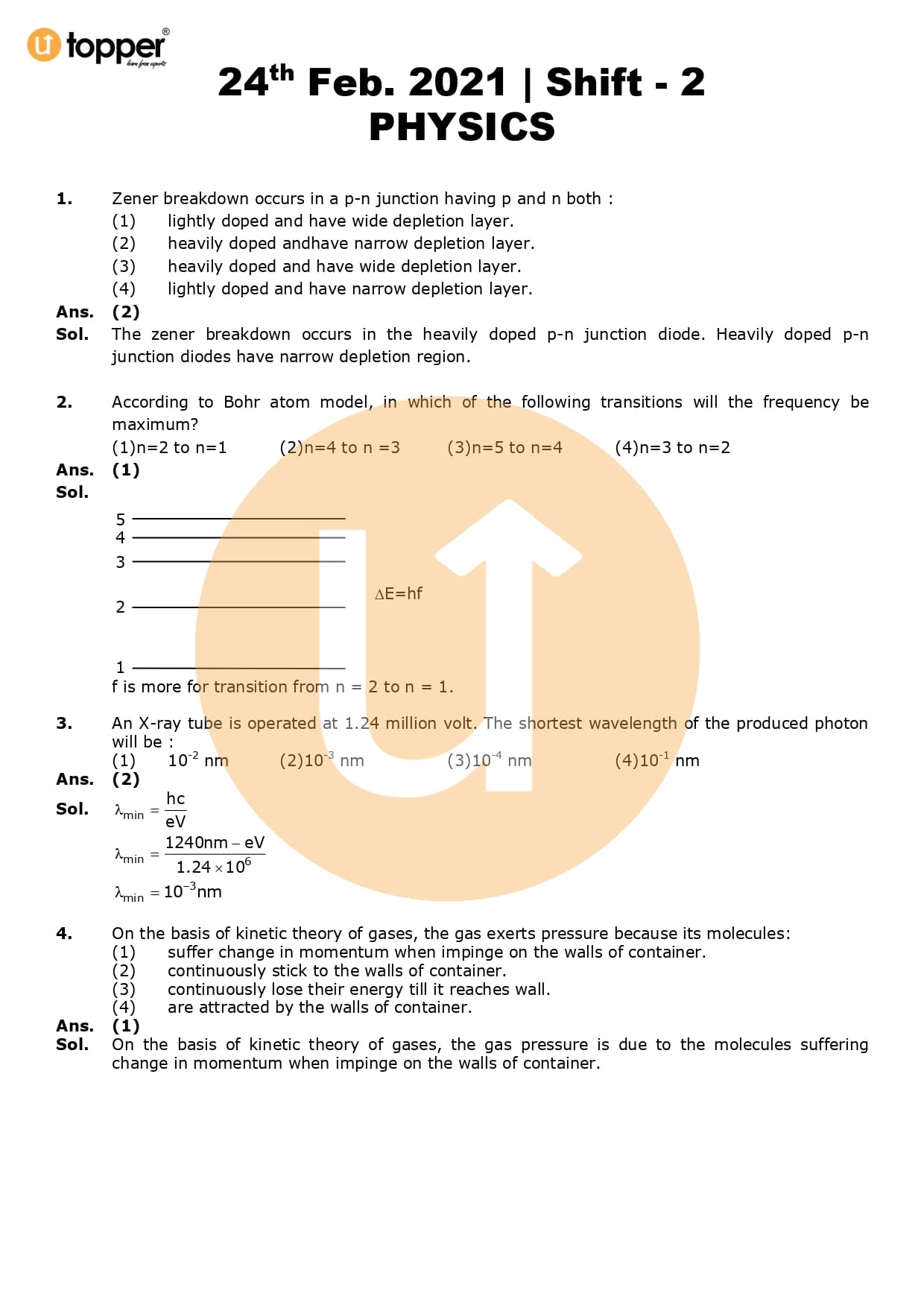 JEE Main 2021 Previous Year Question Paper with Solutions (24th February – Evening)