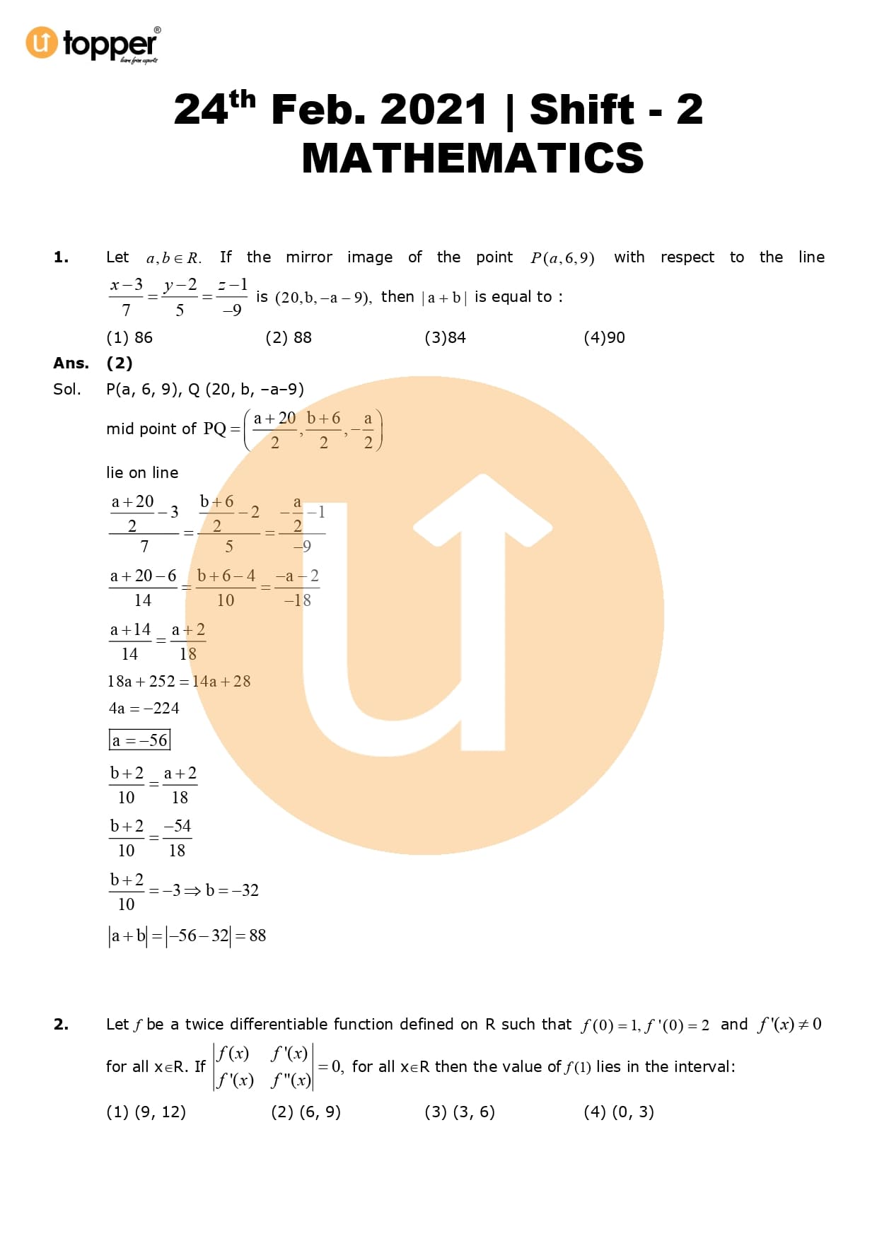 JEE Main 2021 Previous Year Question Paper with Solution 2nd Shift (24 February Evening)