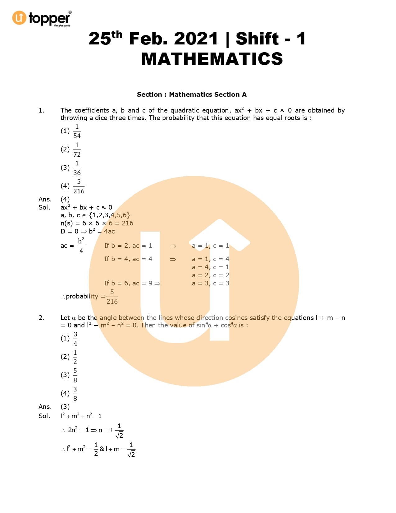 JEE Main 2021 Previous Year Question Paper with Solutions (25th February – Morning)