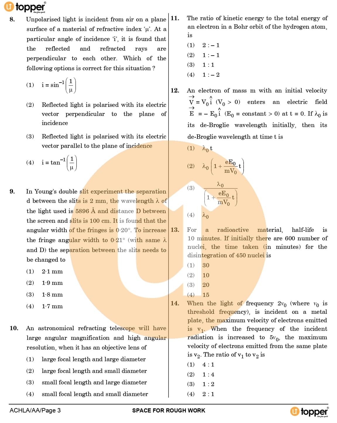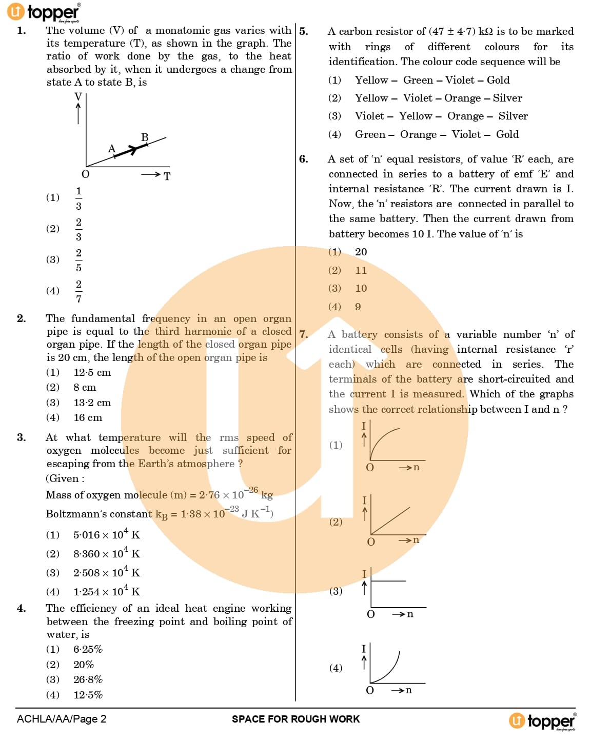 Neet 2018 Previous Year Question Paper Code – AA Pdf