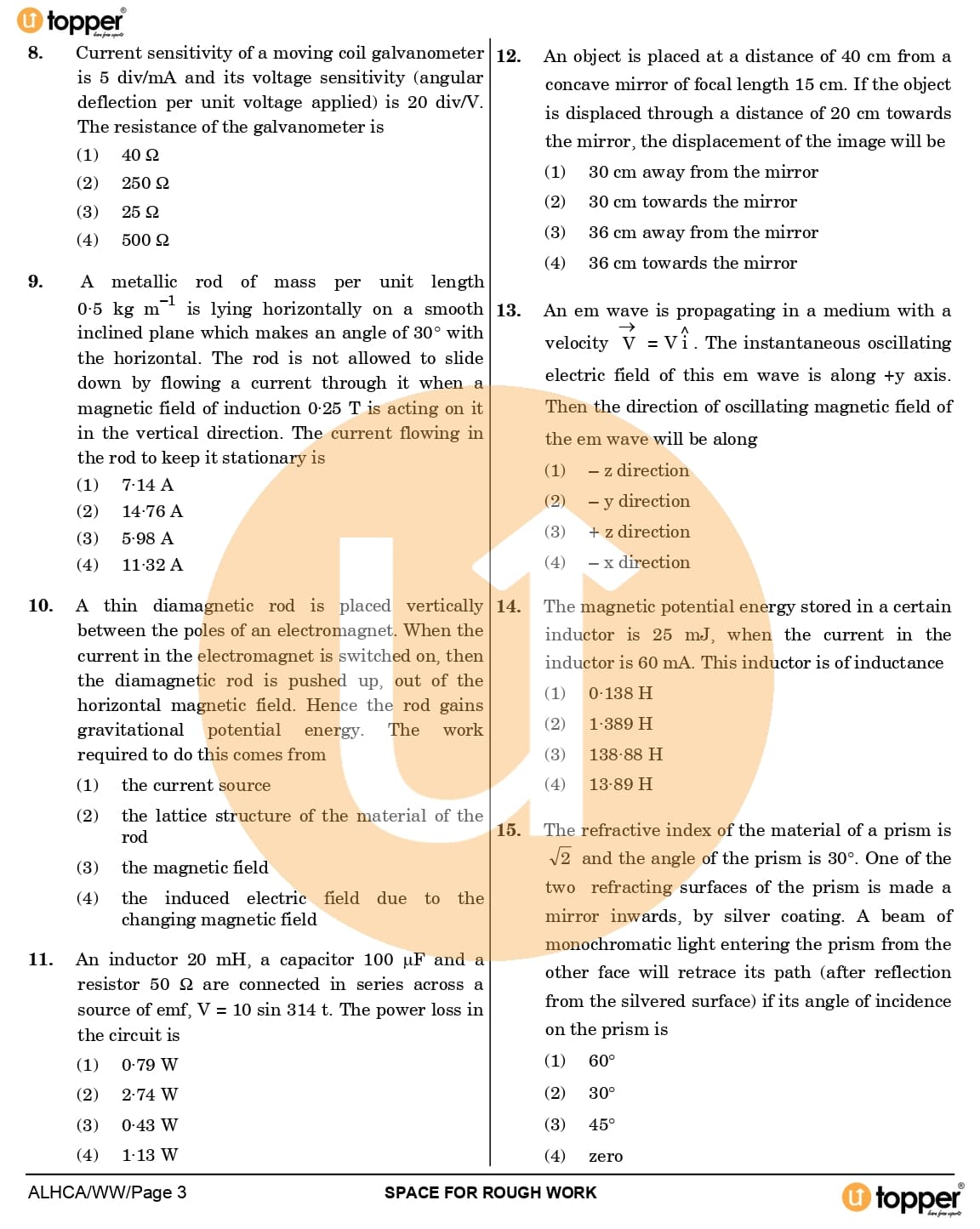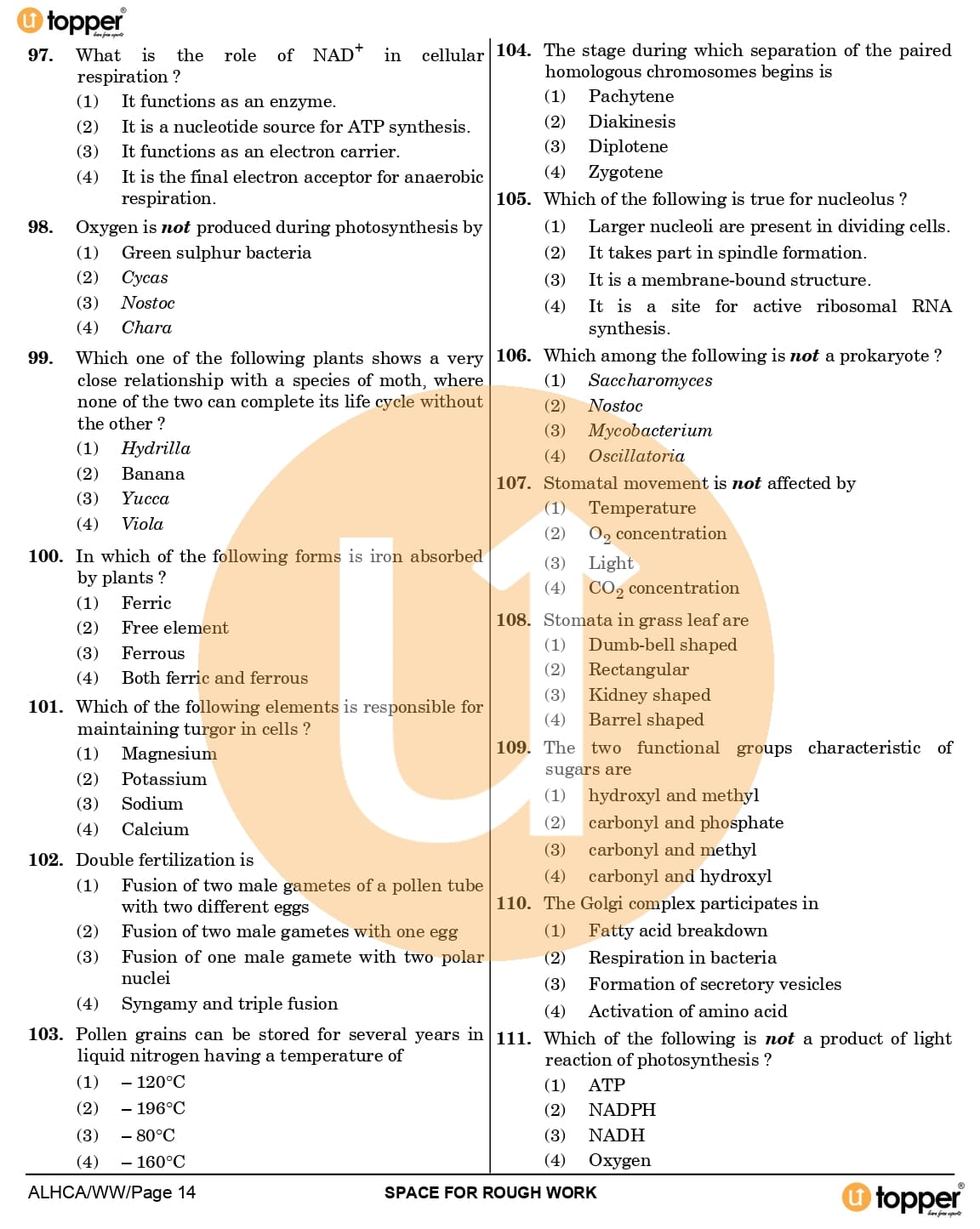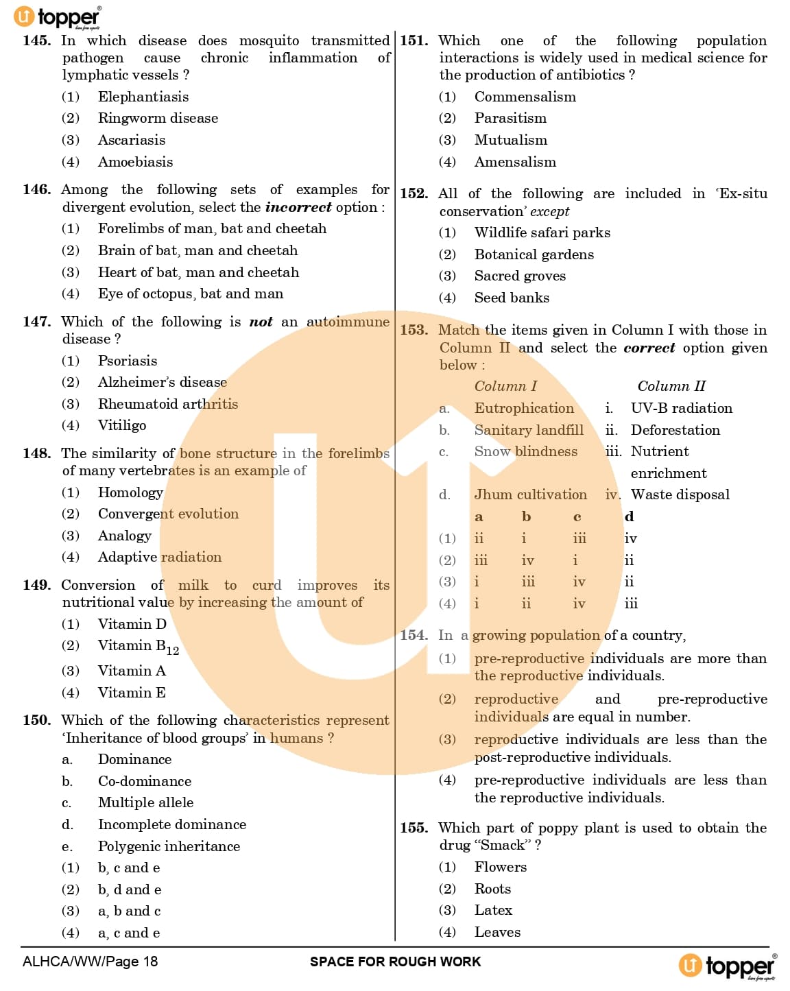 Neet 2018 Previous Year Question Paper Code – WW Pdf
