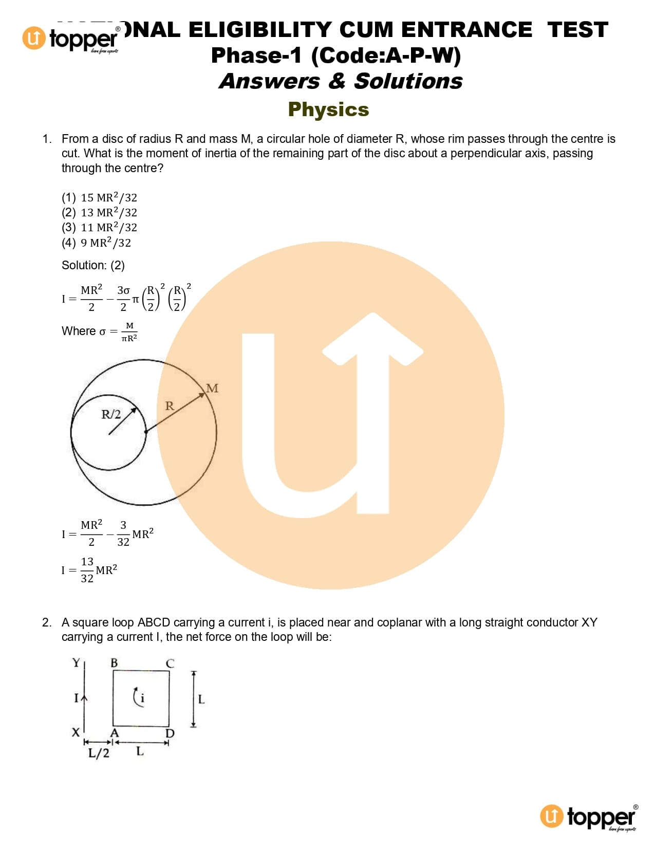 Neet 2016 Previous Year Question Paper Phase – 1 Code – A/P/W with Solutions Pdf