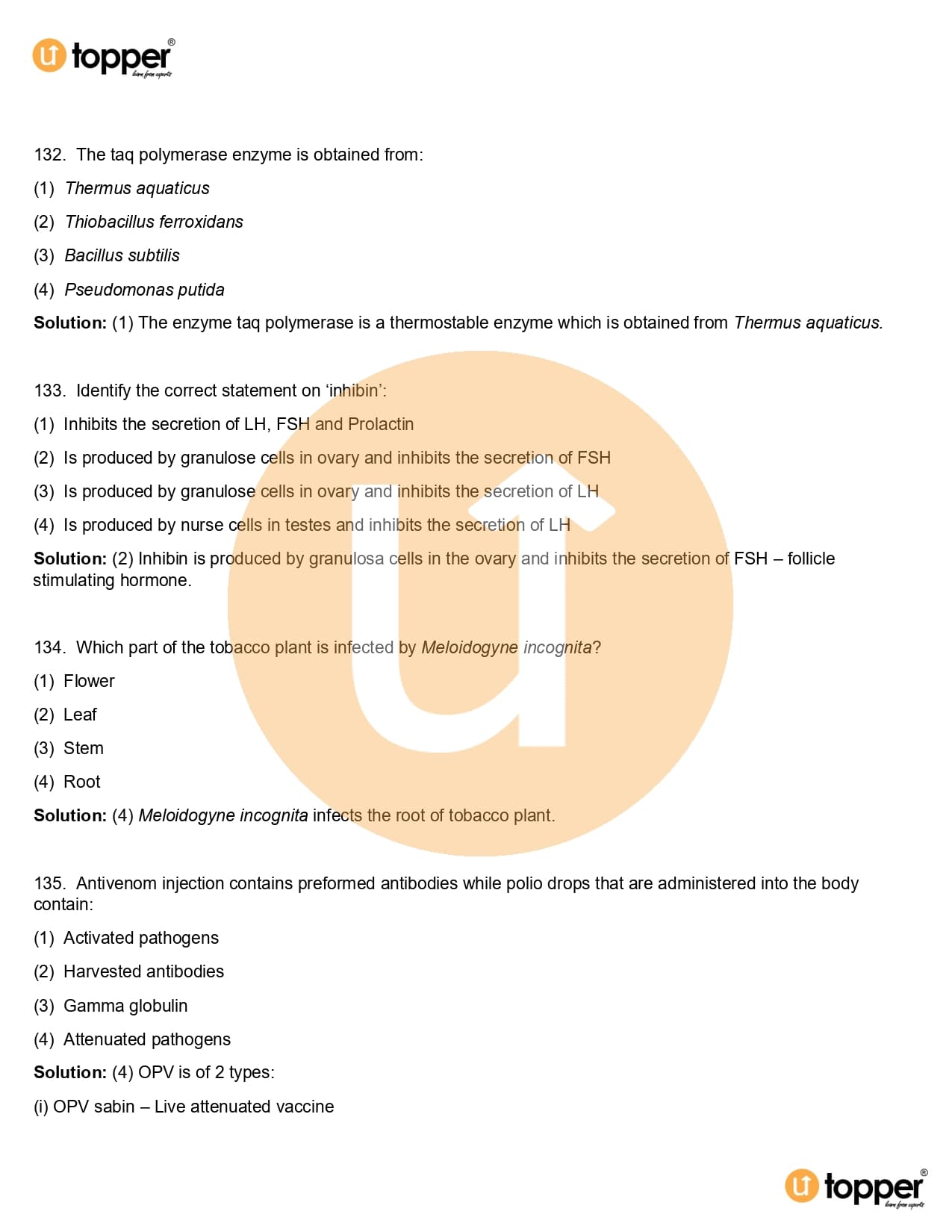 NEET Previous Year Solved Question Paper 2015 – 2020 – Free PDF Download