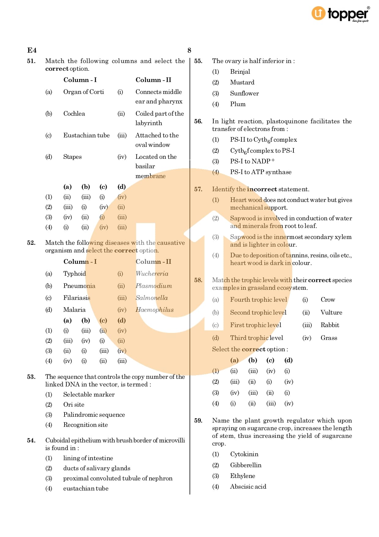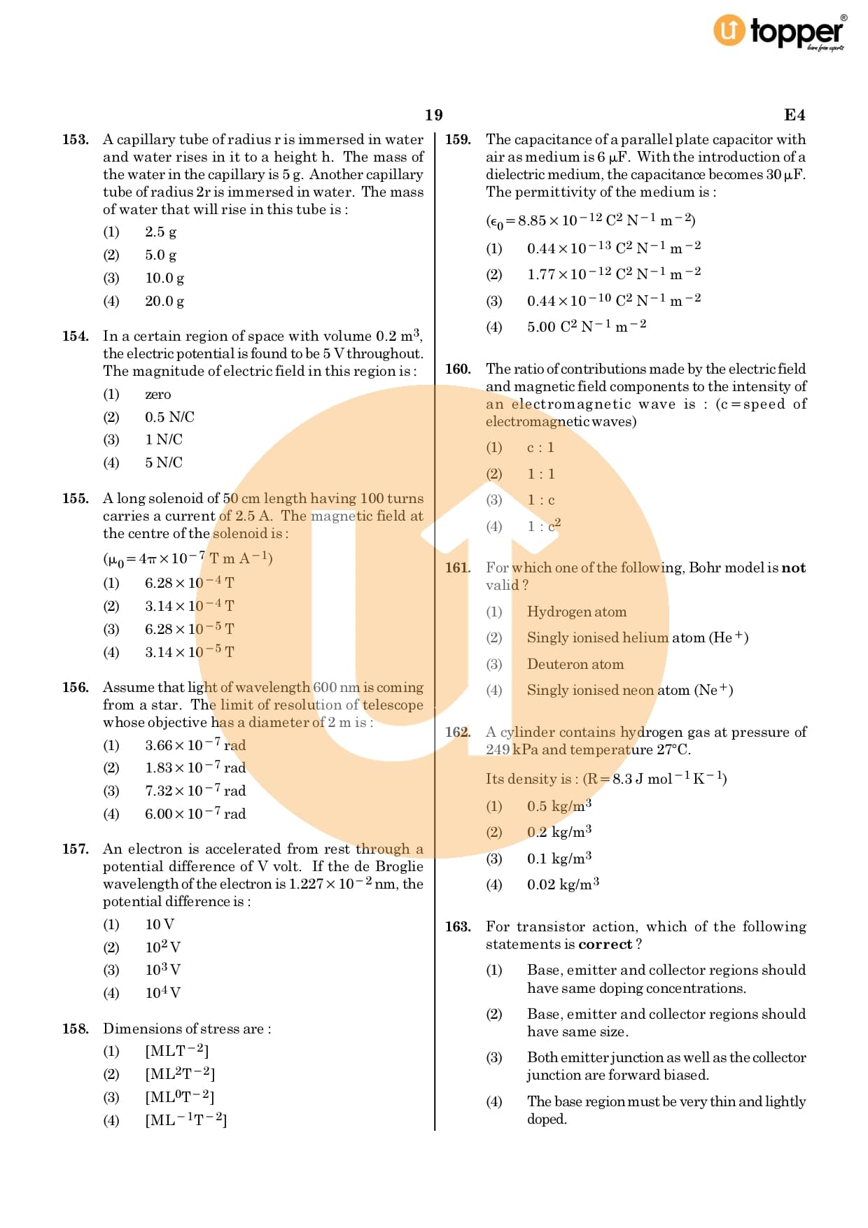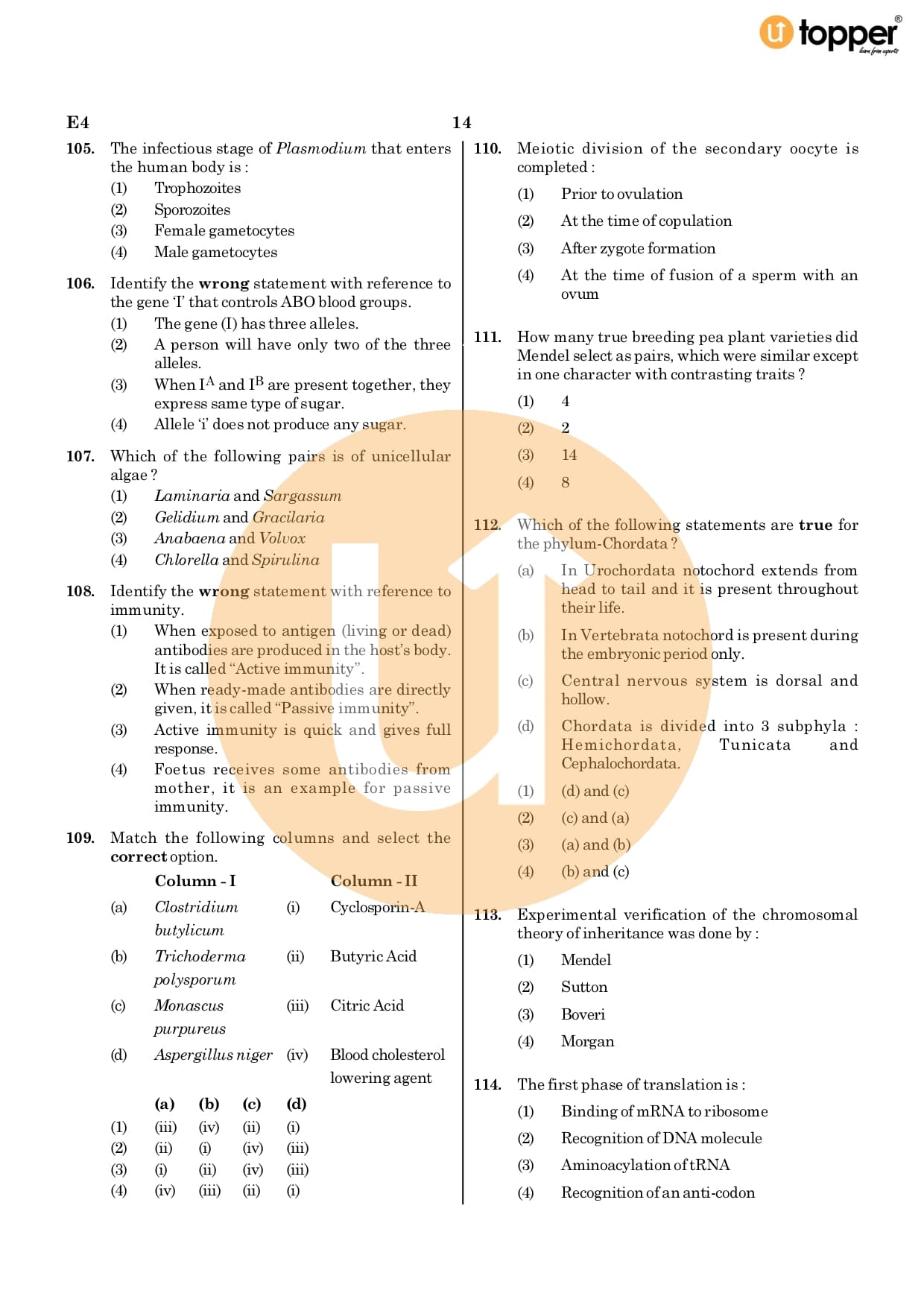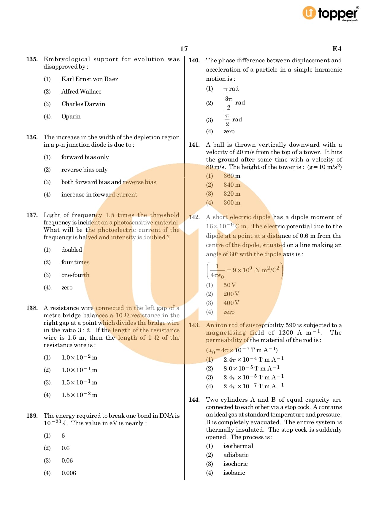 Neet 2020 Previous Year Question Paper Code – E4 Pdf
