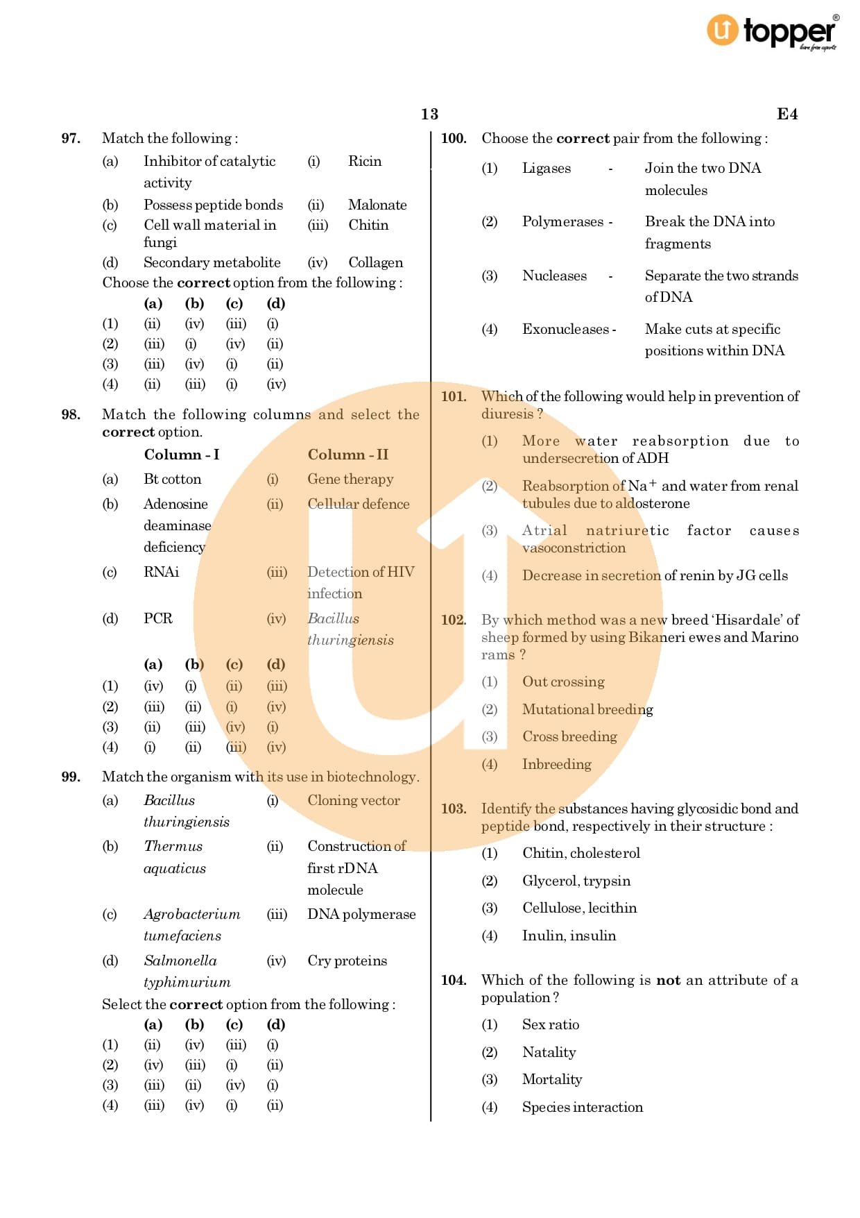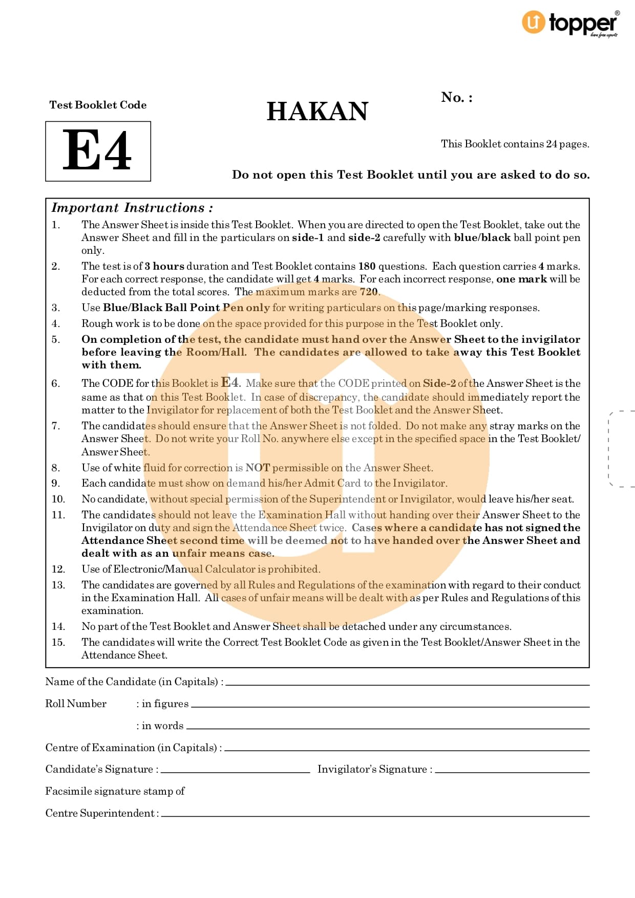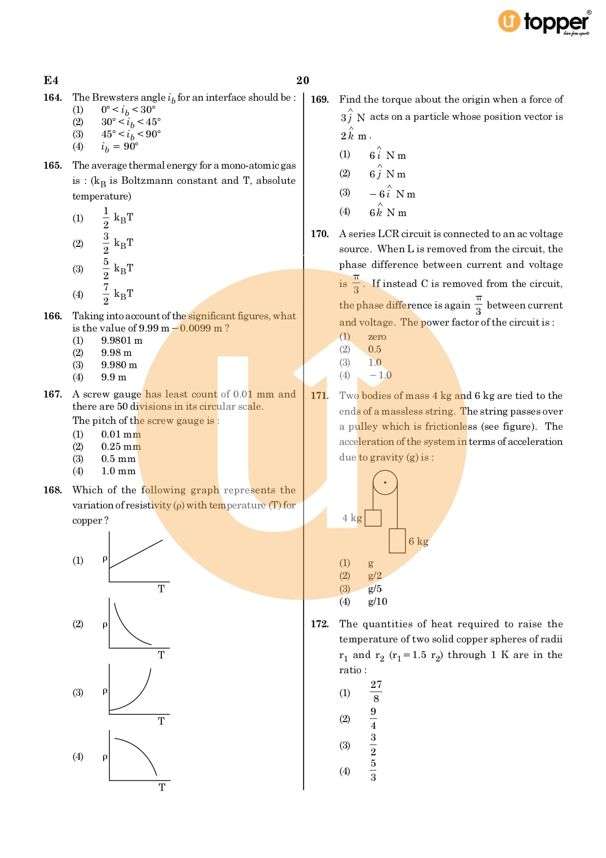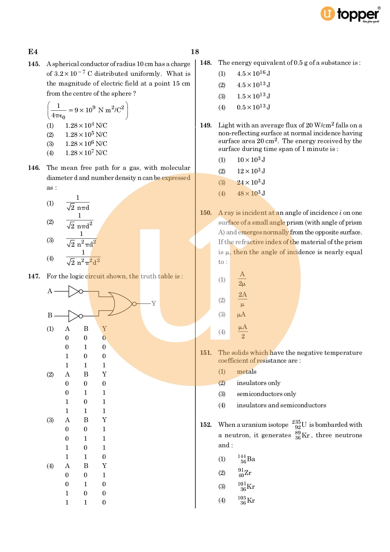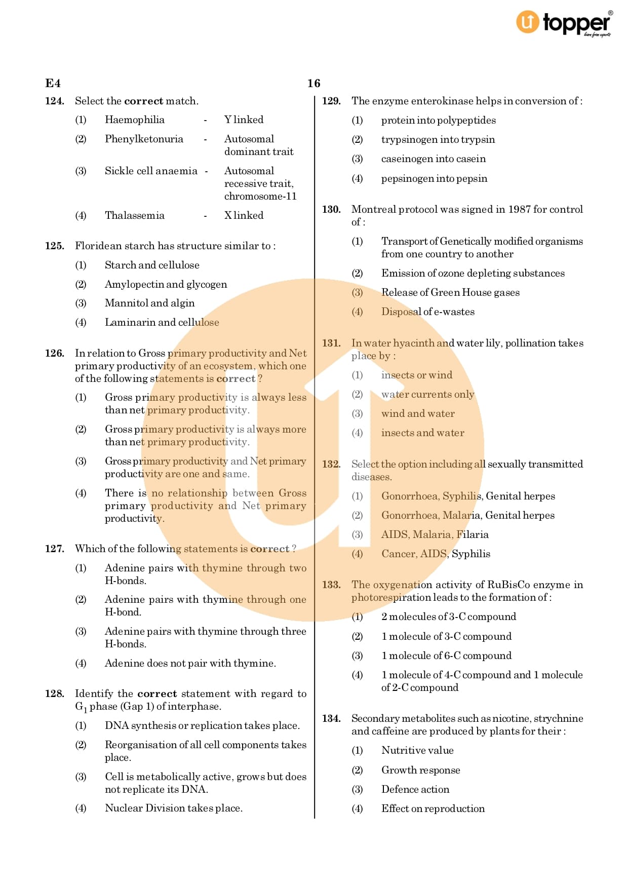 Neet 2020 Previous Year Question Paper Code – E4 Pdf