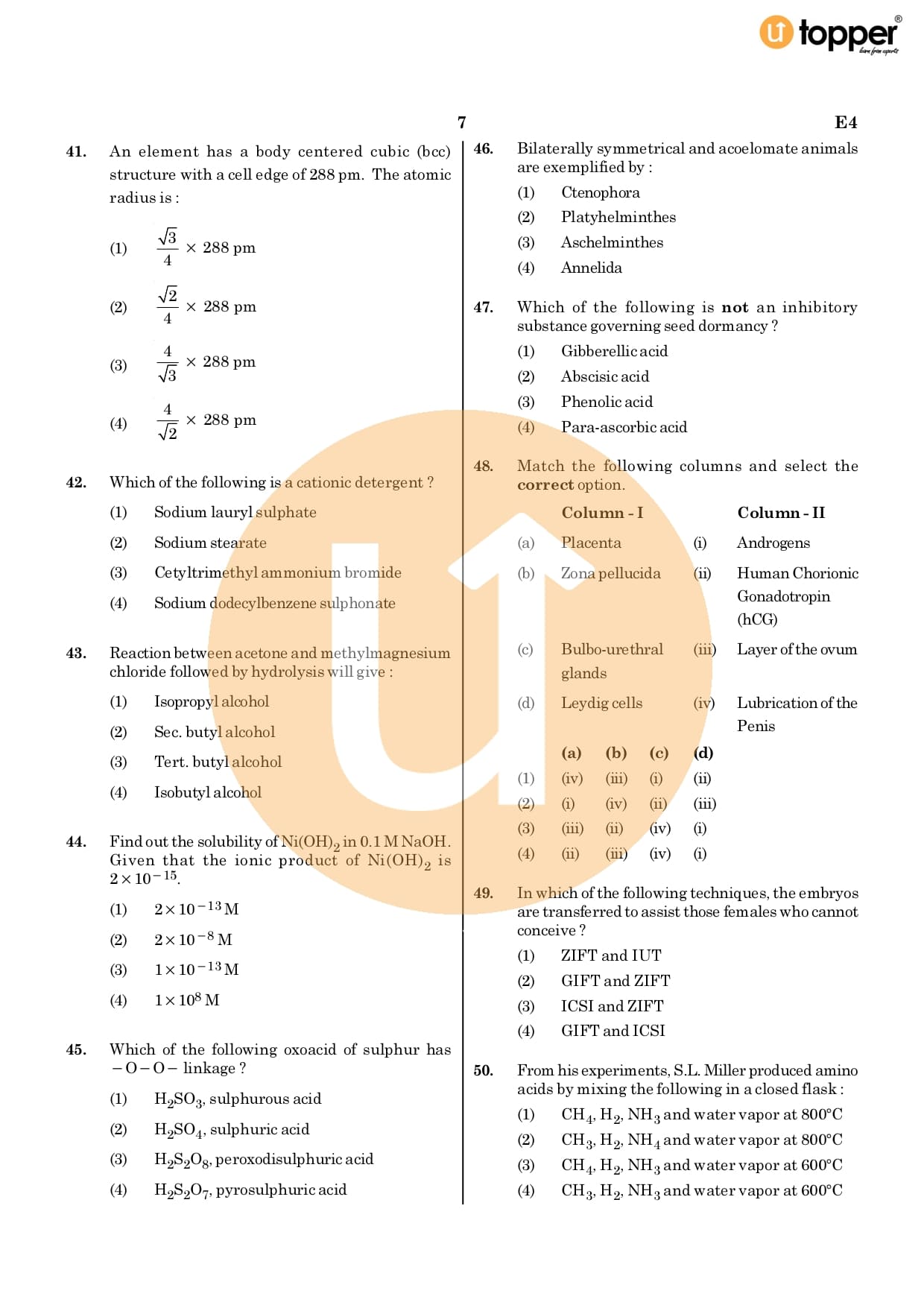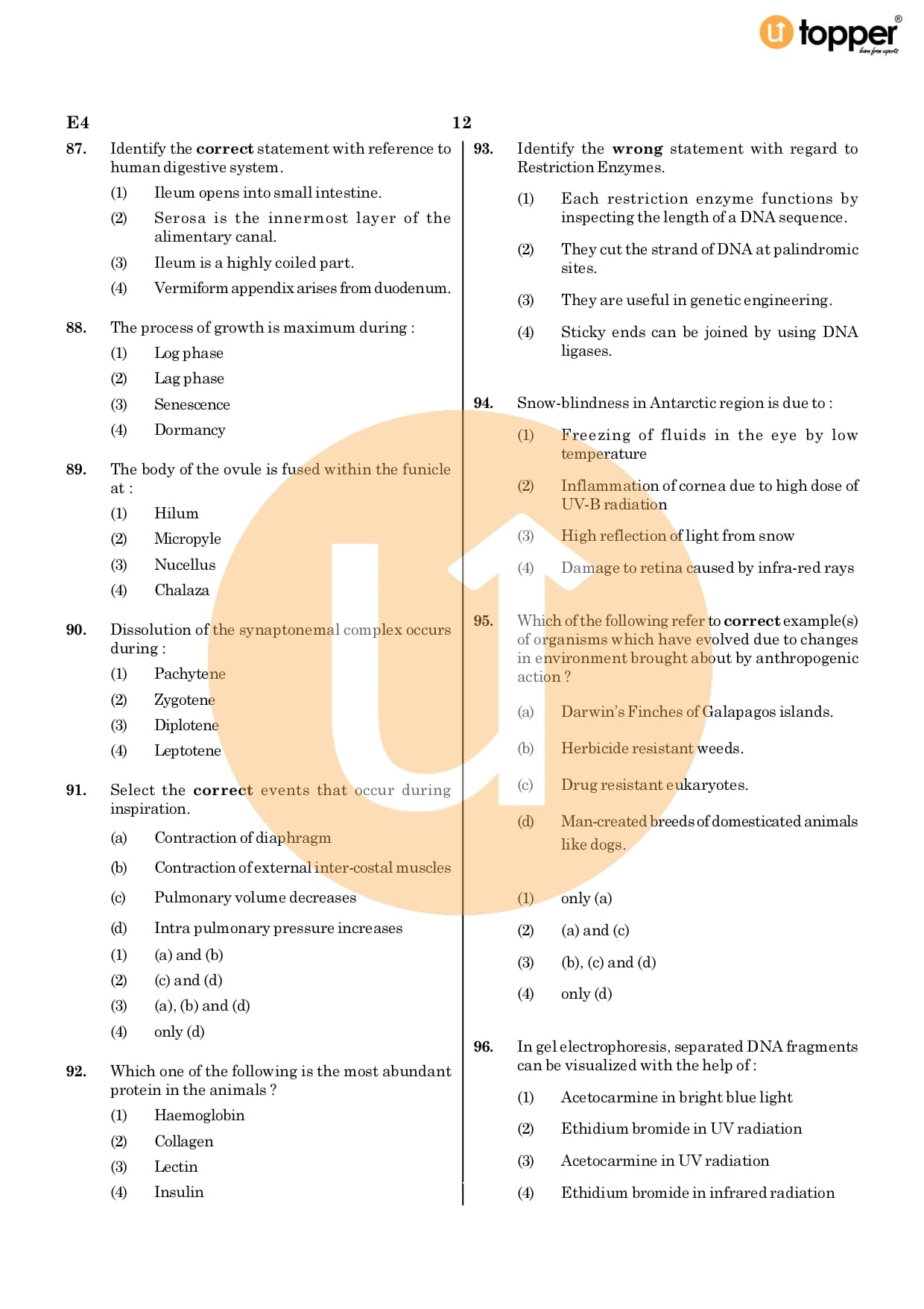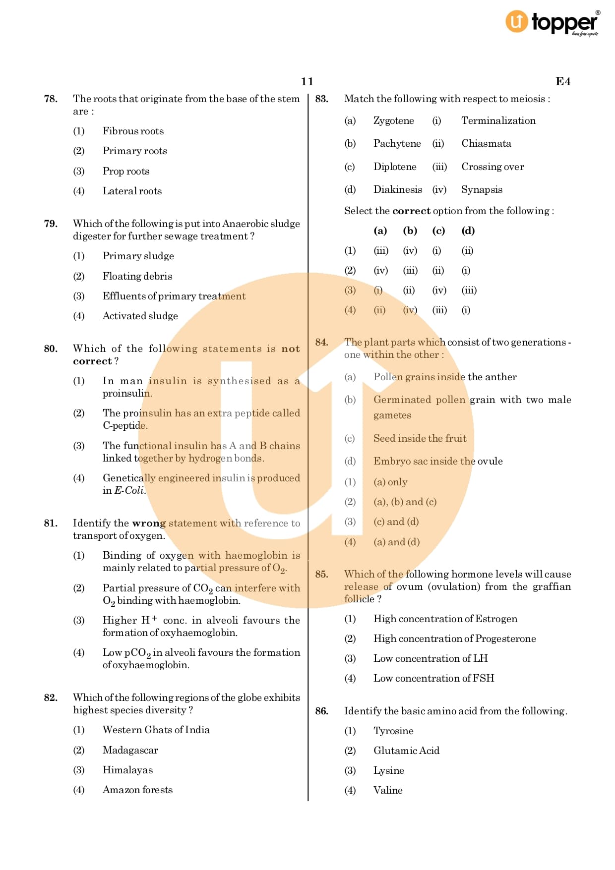 NEET Previous Year Question Paper 2020 CODE – E4