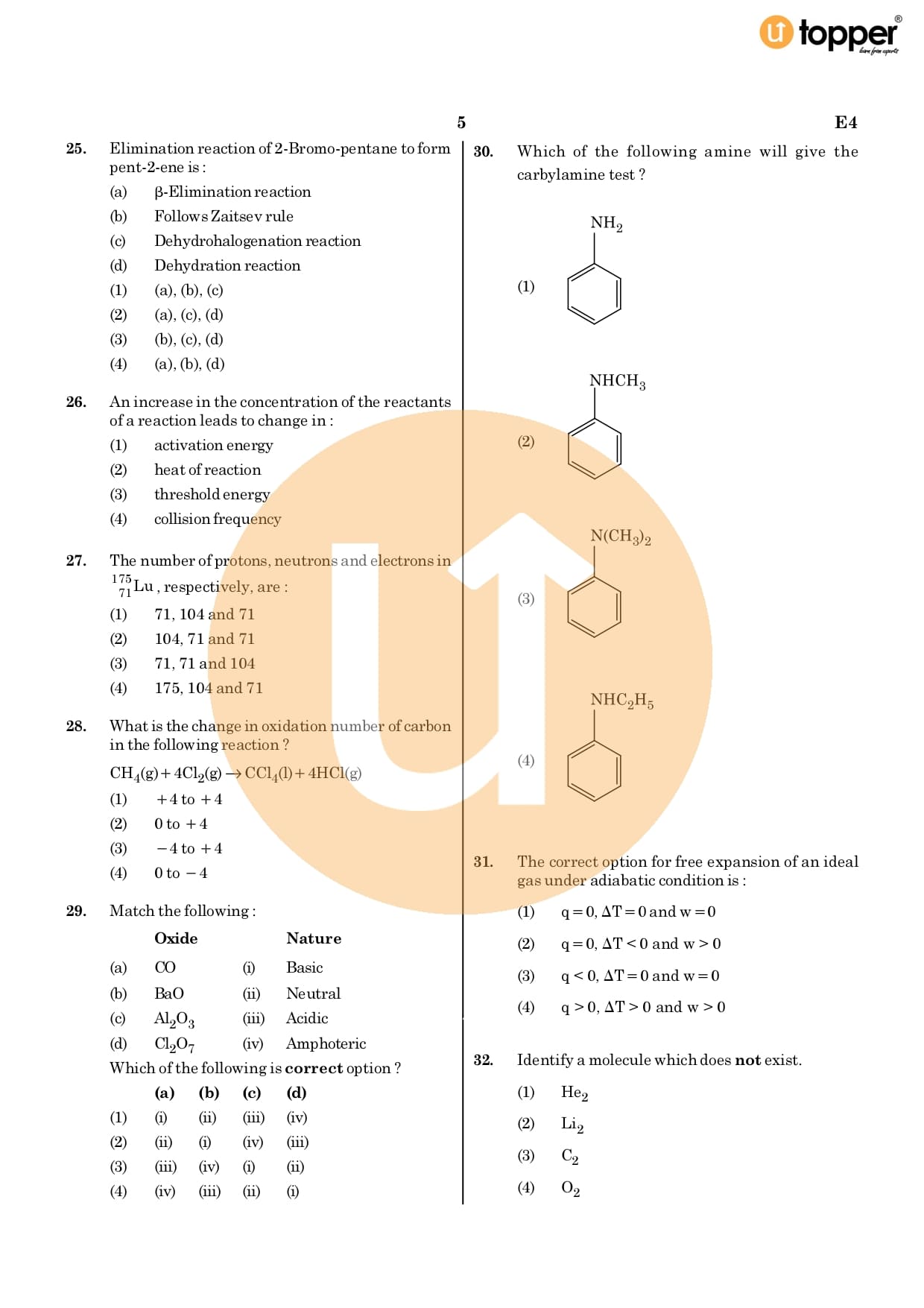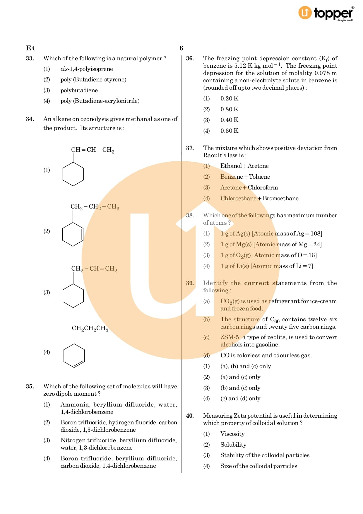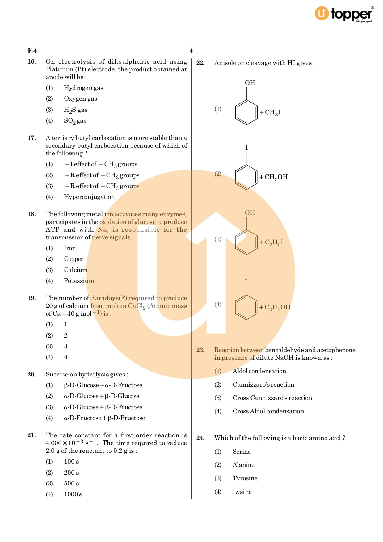 NEET Previous Year Question Paper 2020 CODE – E4