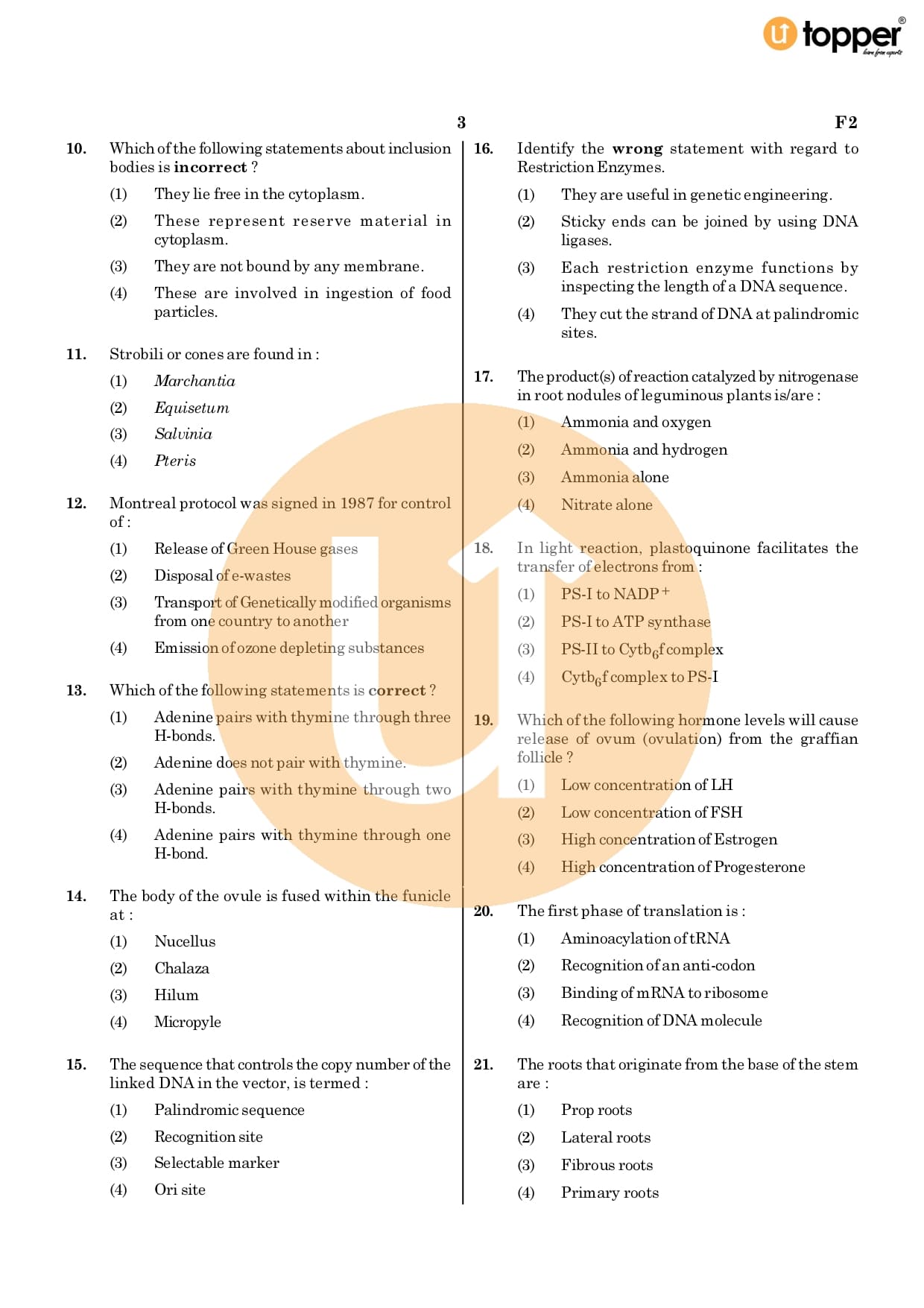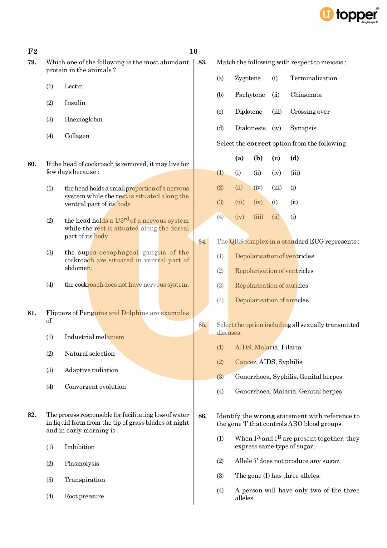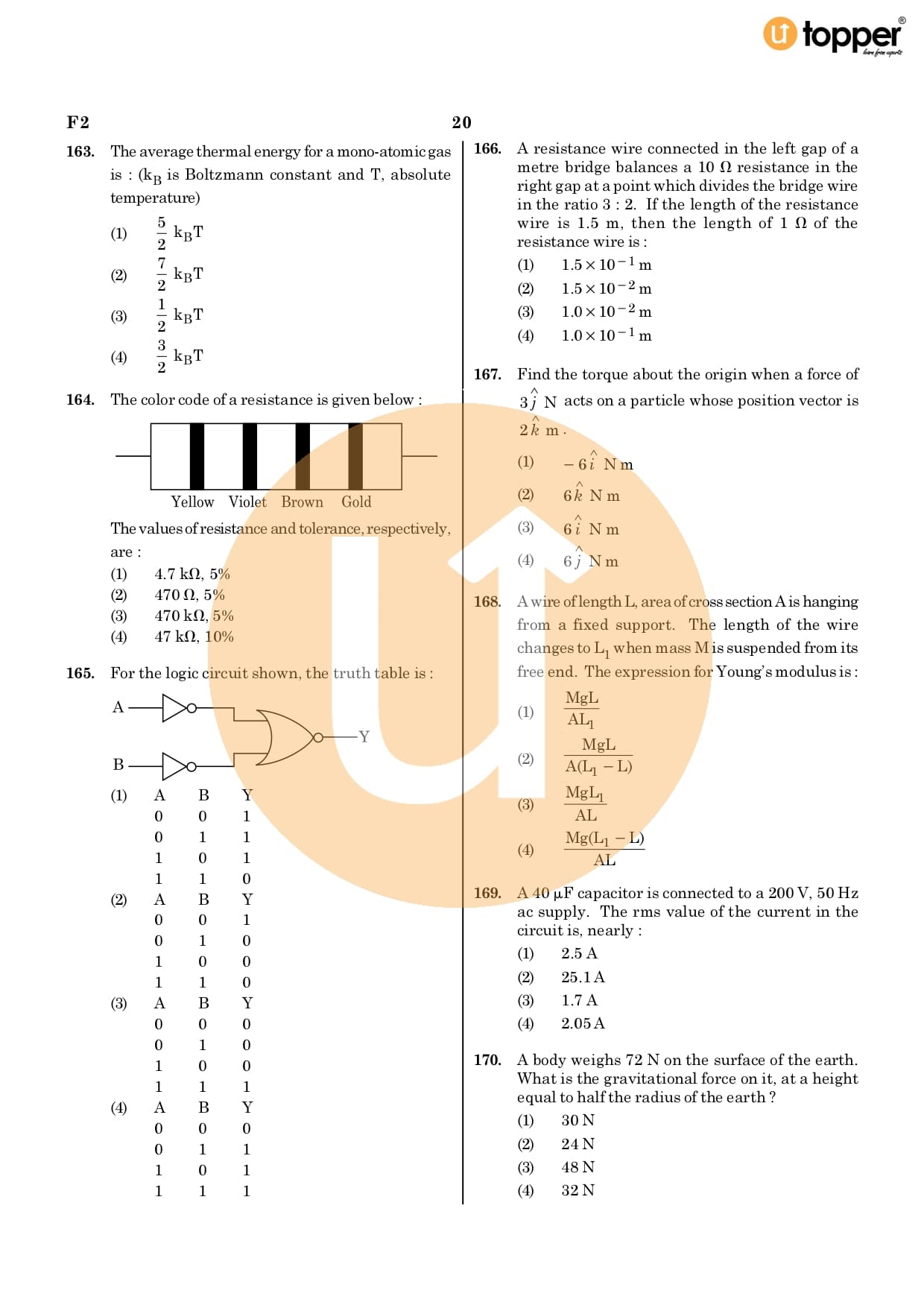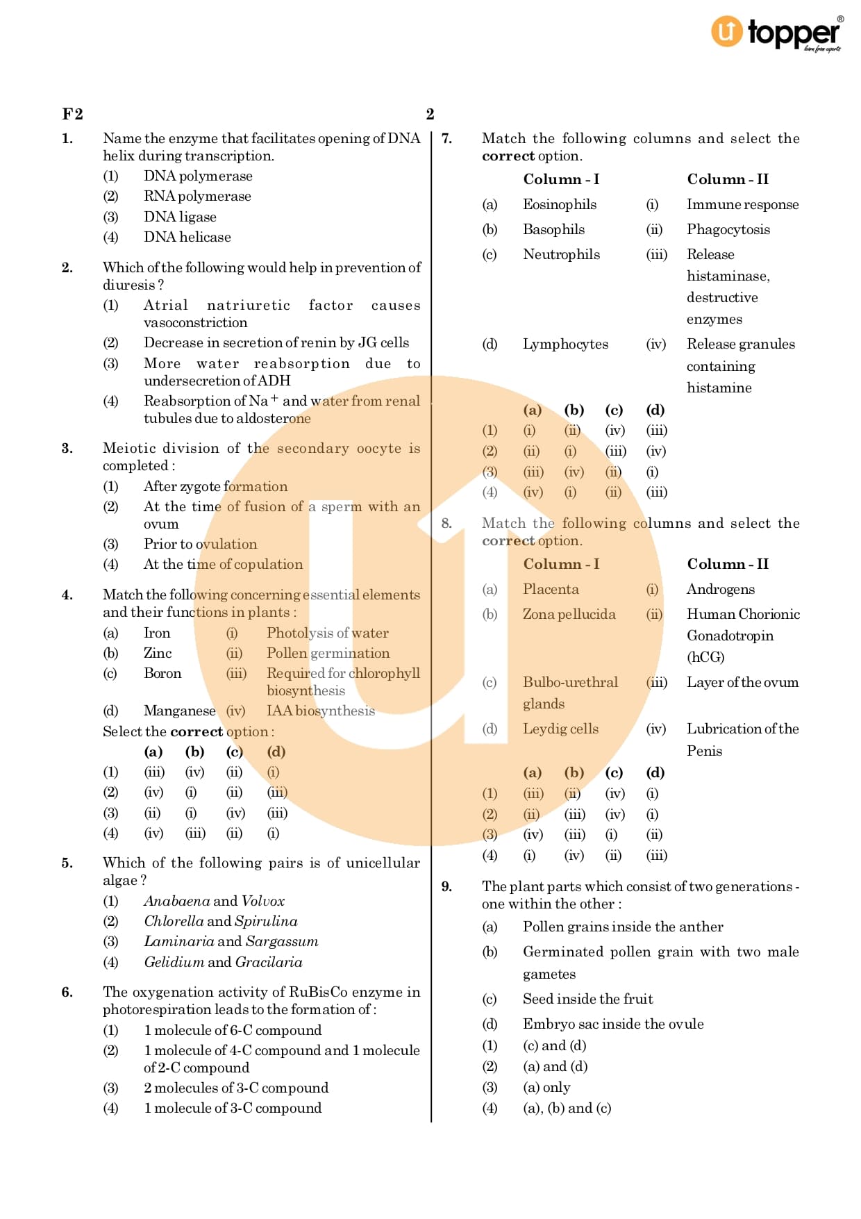 Neet 2020 Previous Year Question Paper Code – F2 Pdf