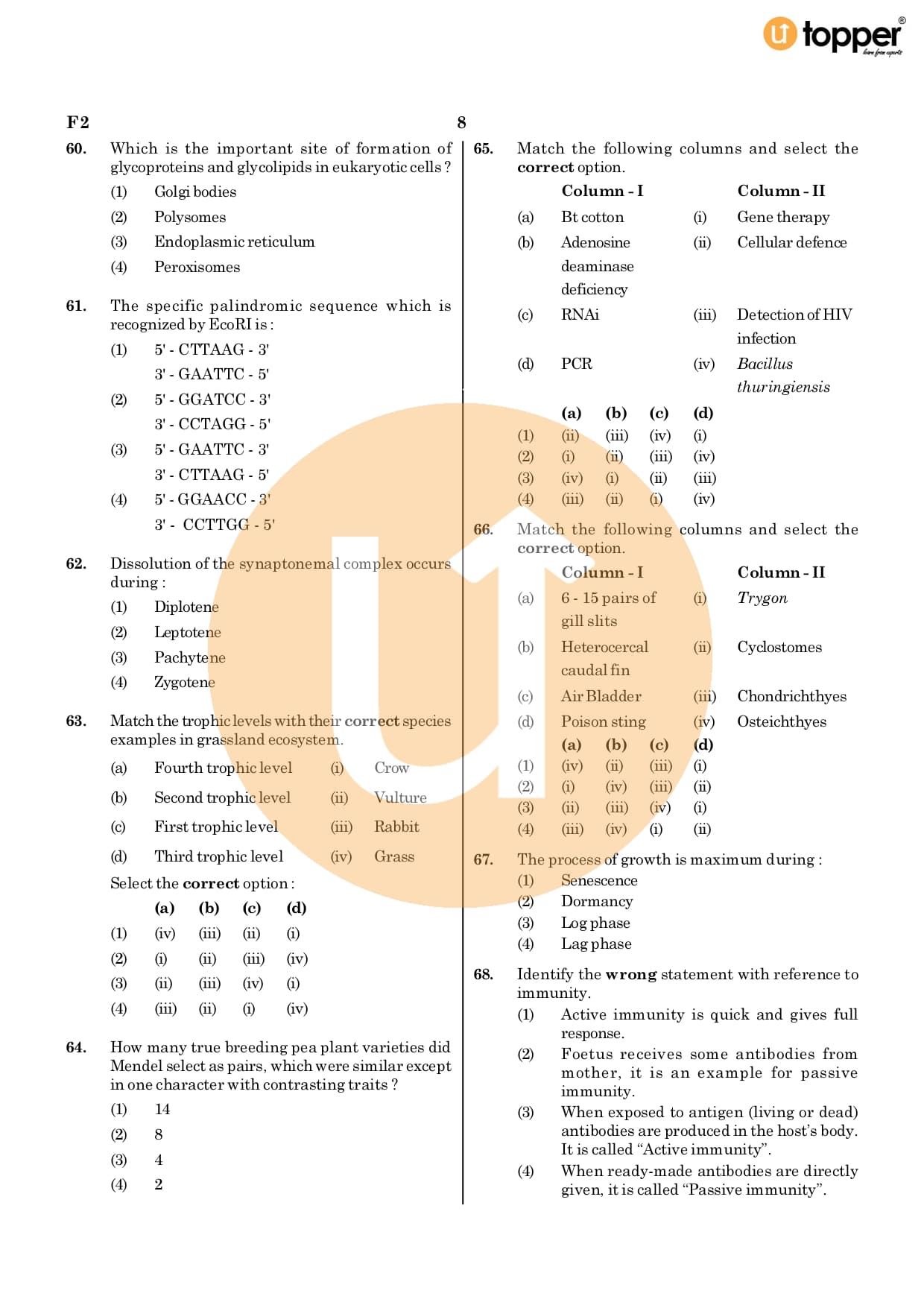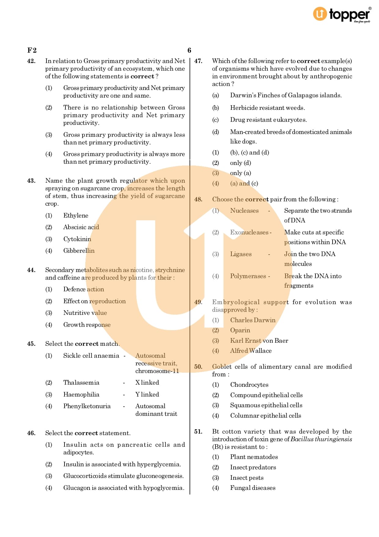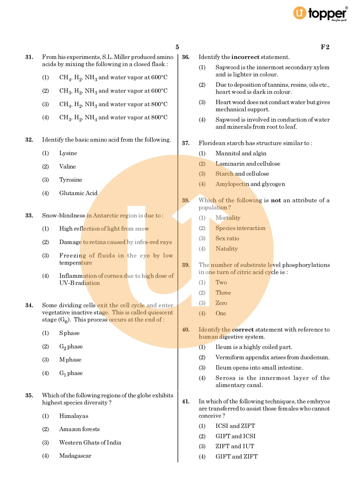 Neet 2020 Previous Year Question Paper Code – F2 Pdf