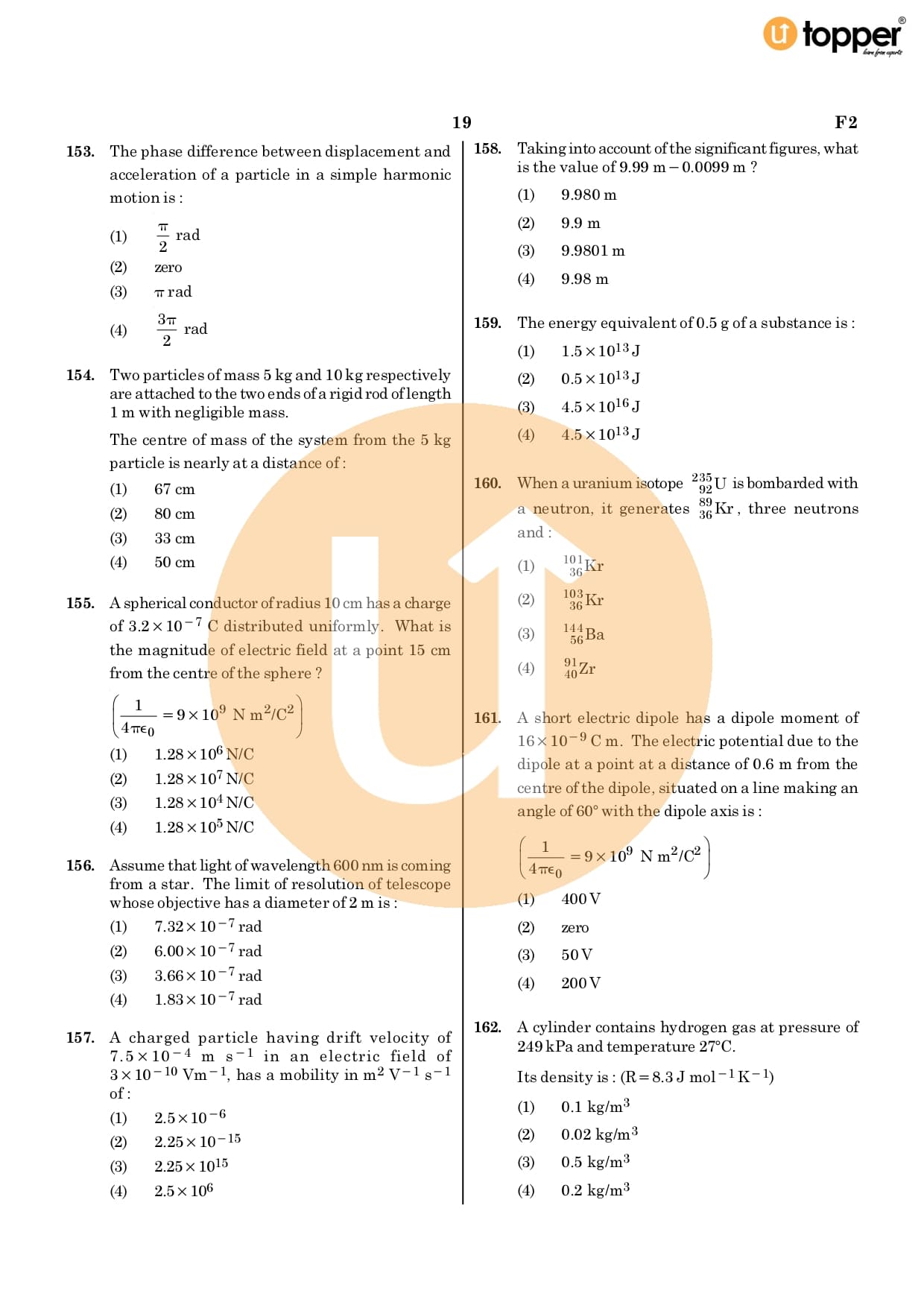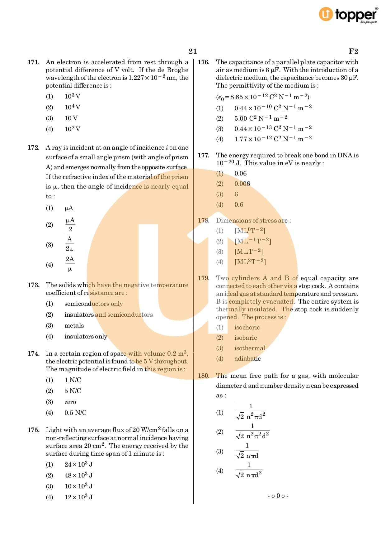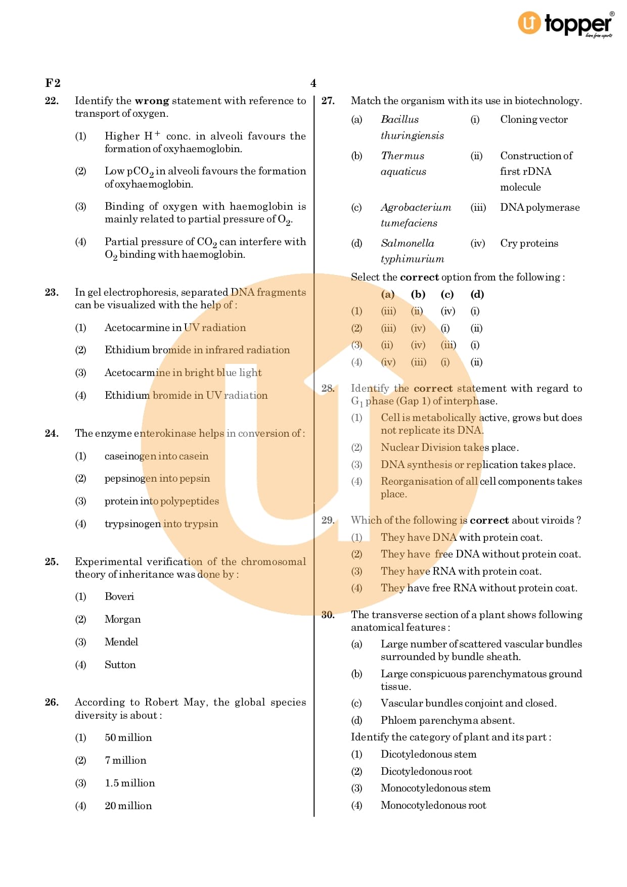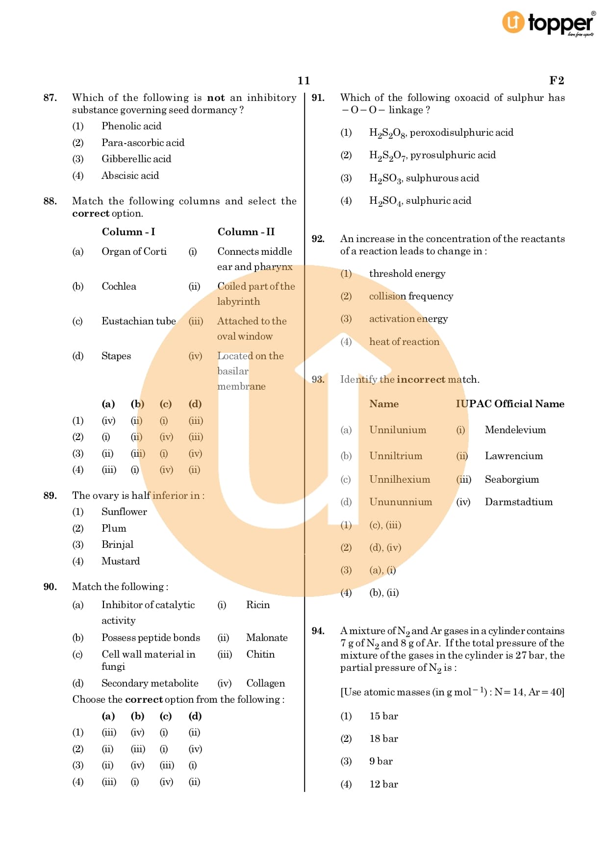 Neet 2020 Previous Year Question Paper Code – F2 Pdf