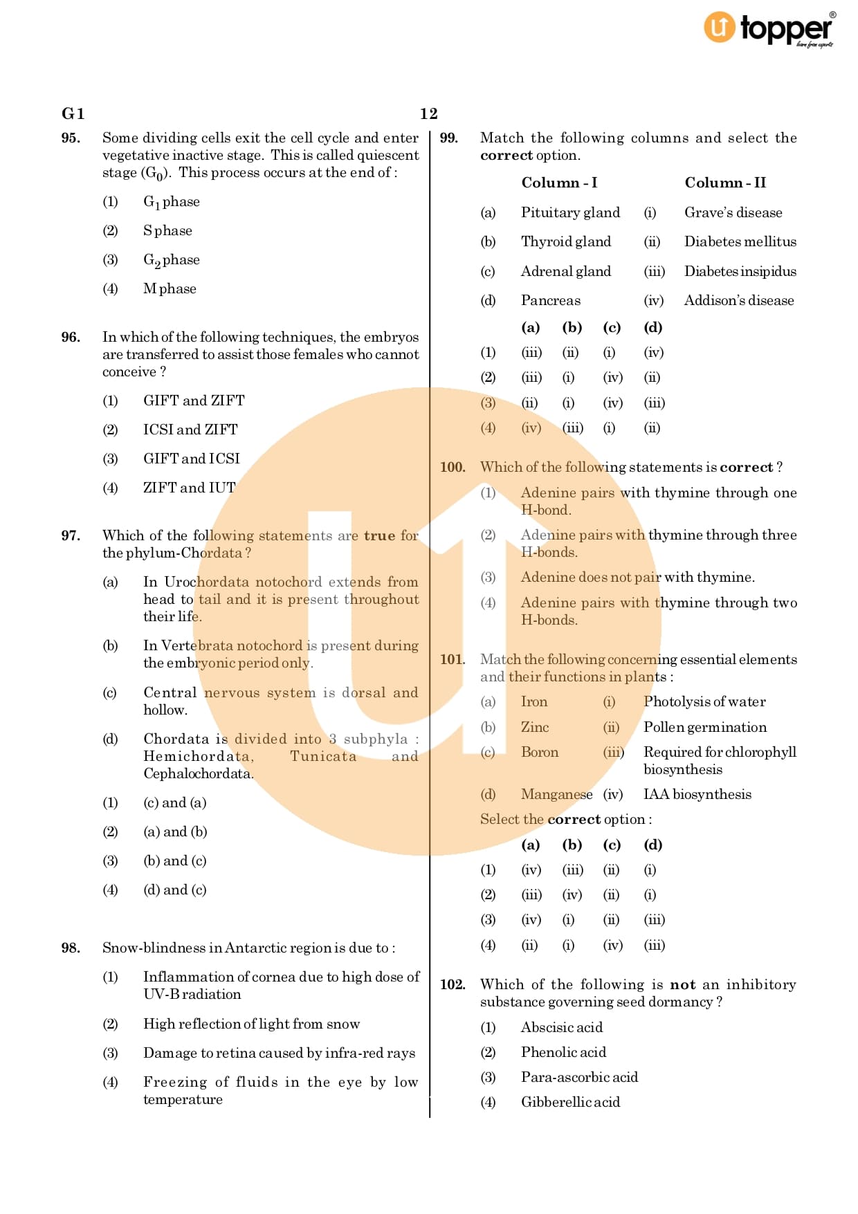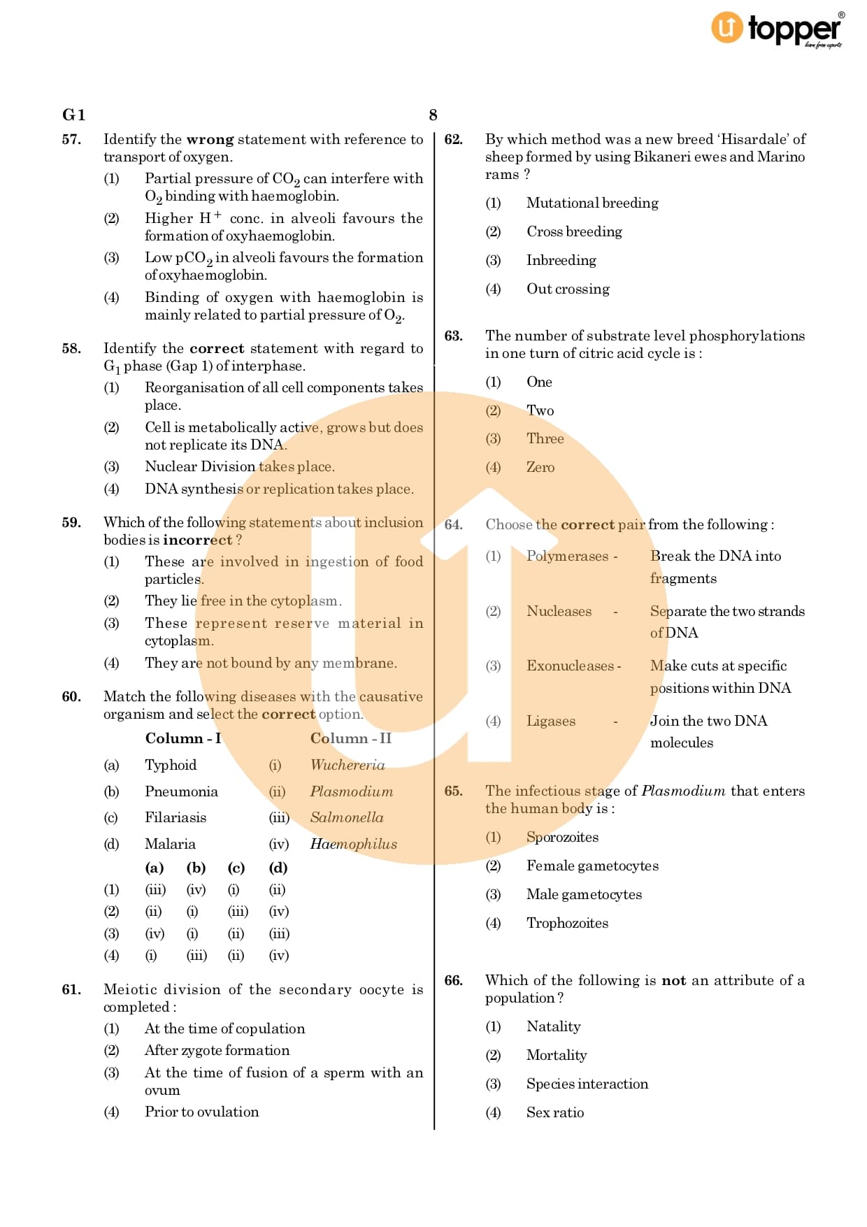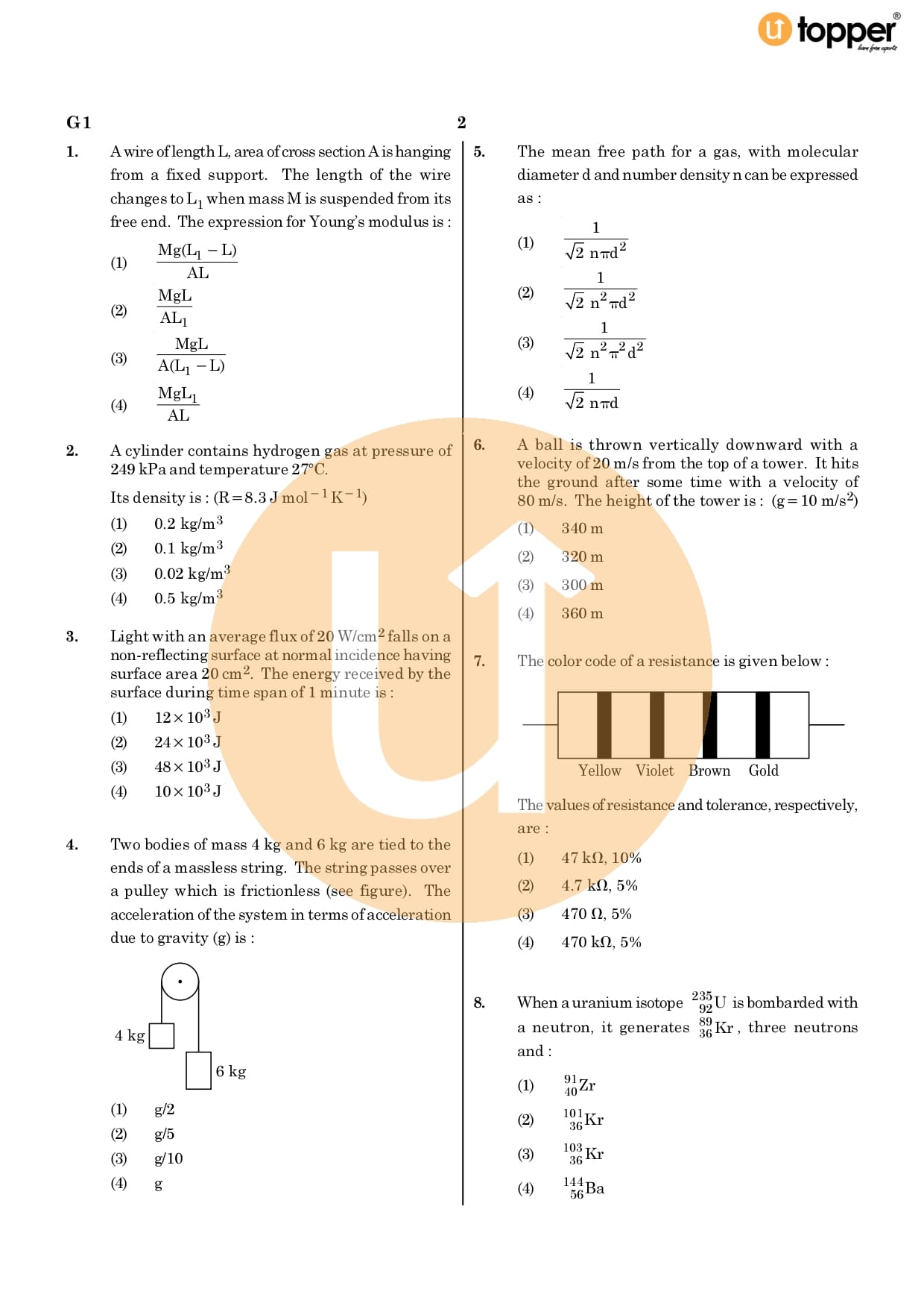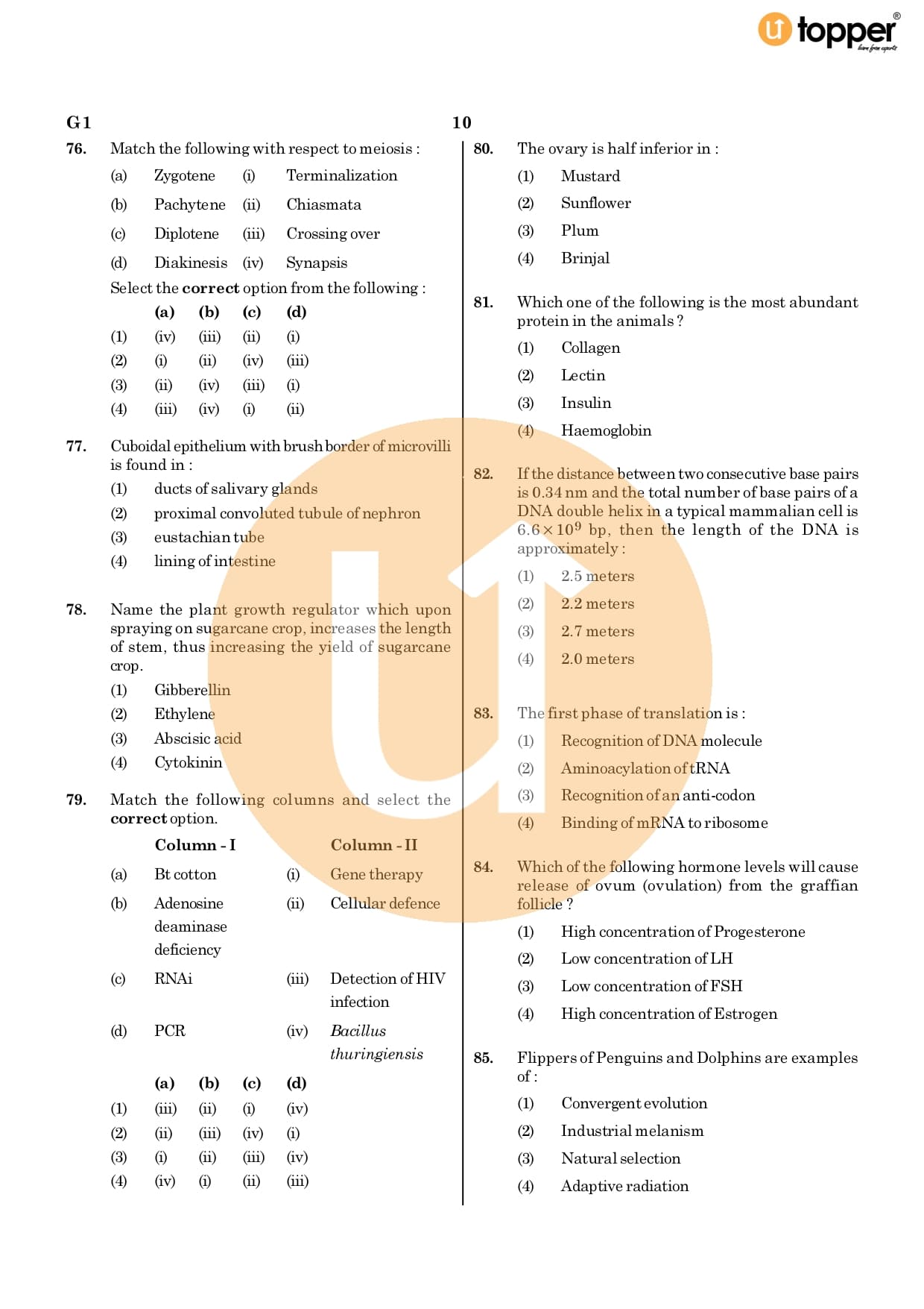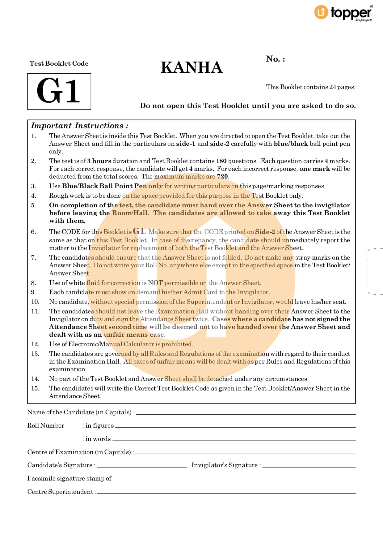 Neet 2020 Previous Year Question Paper Code – G1 Pdf