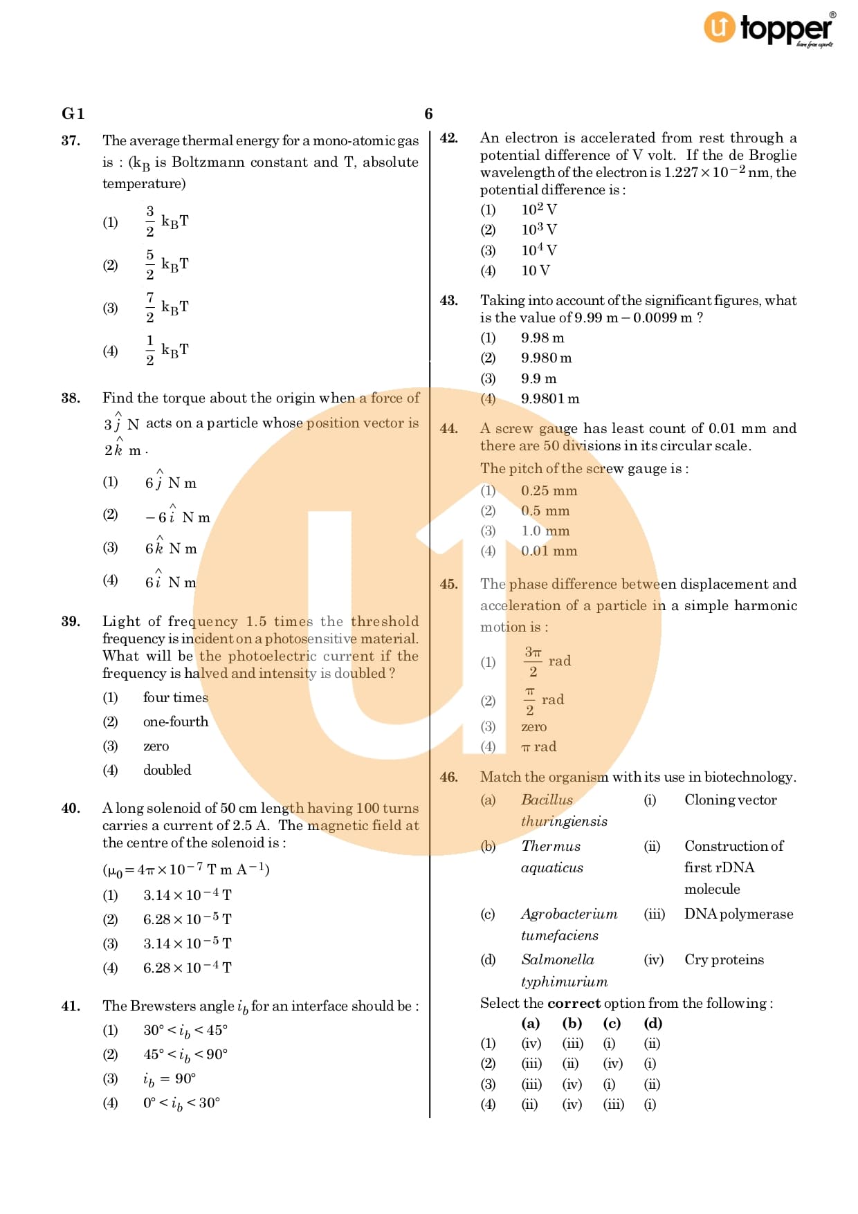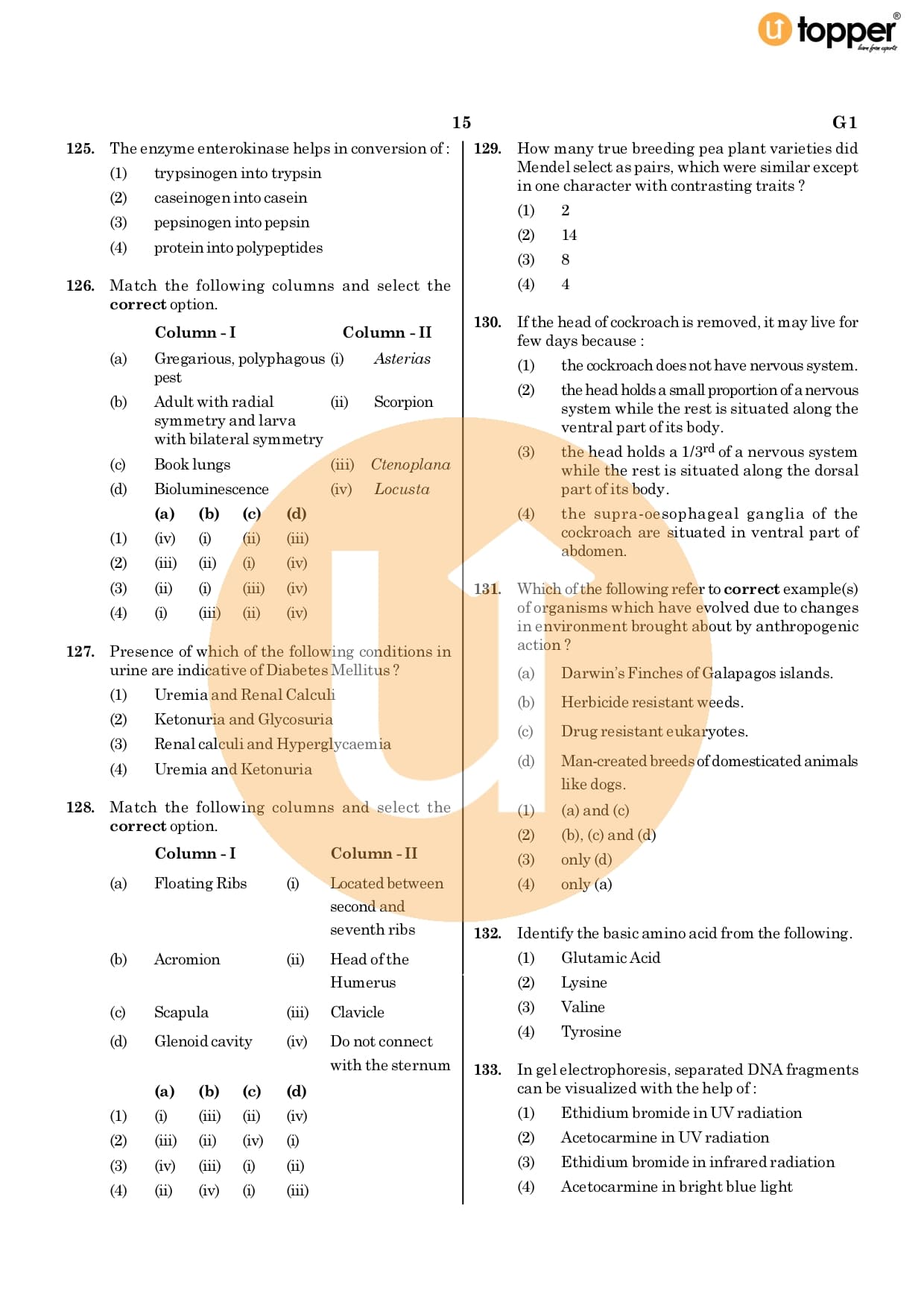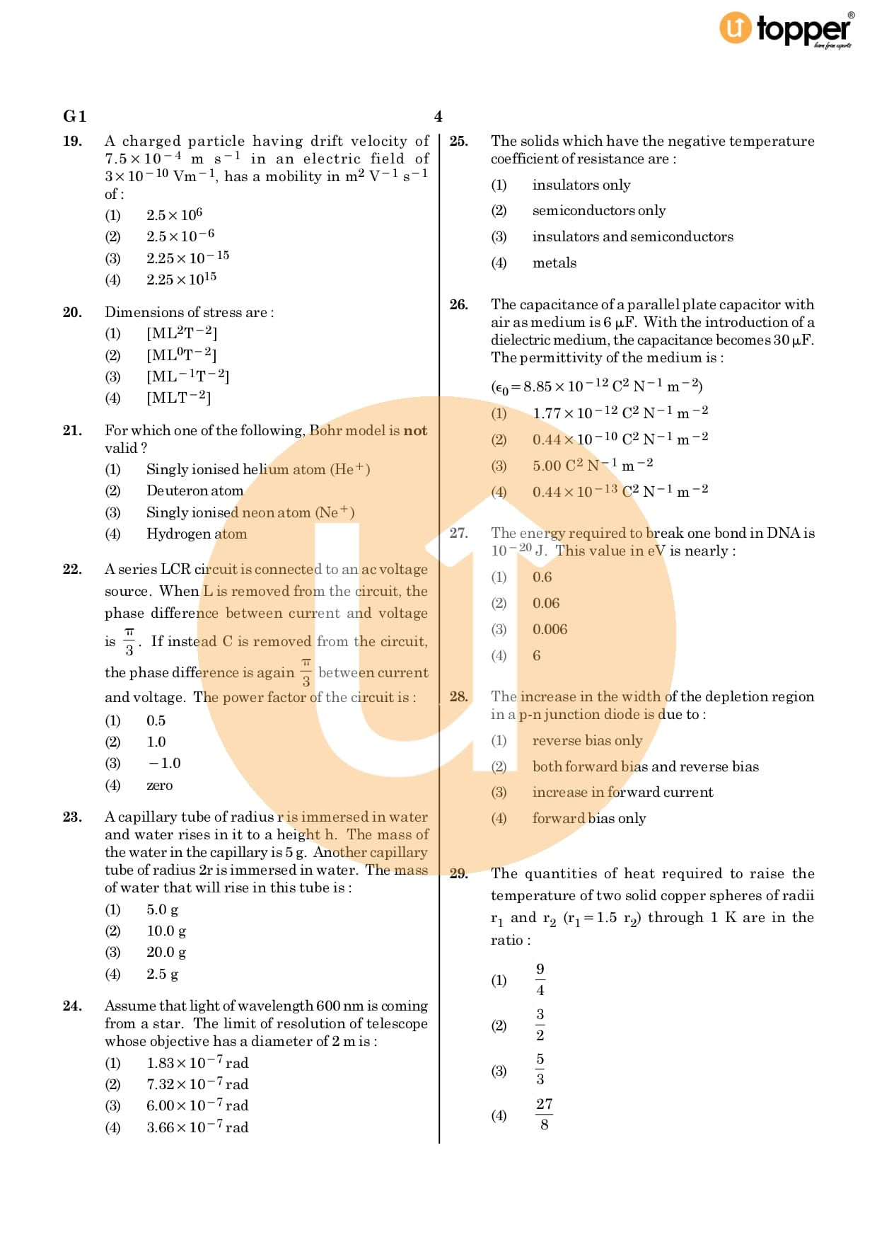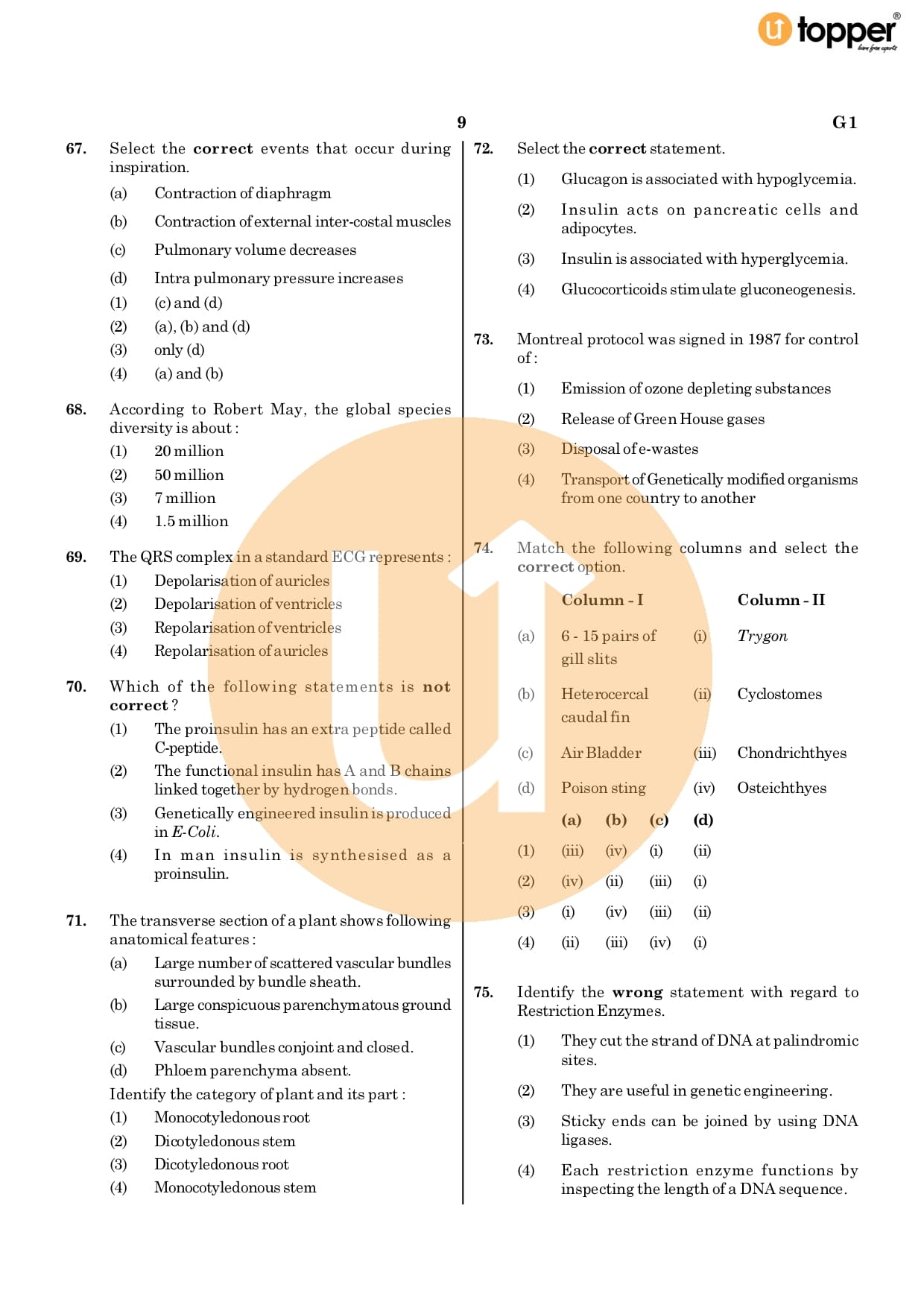 Neet 2020 Previous Year Question Paper Code – G1 Pdf