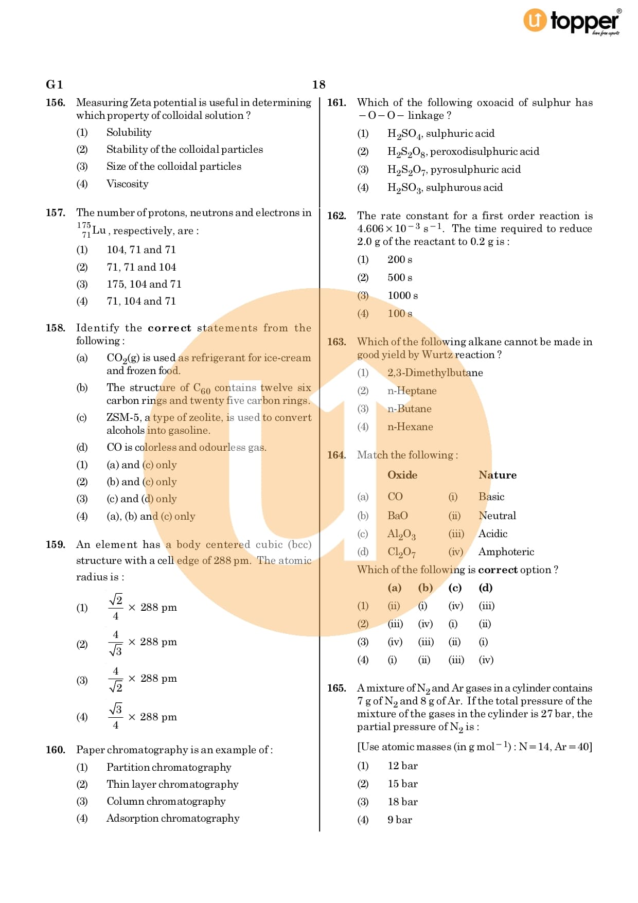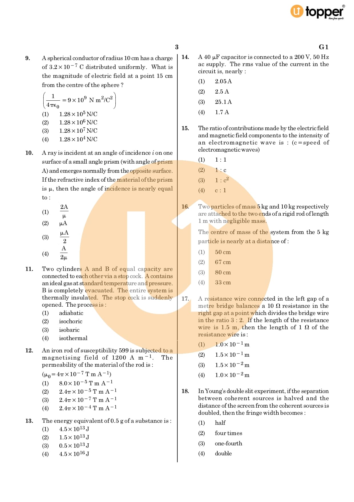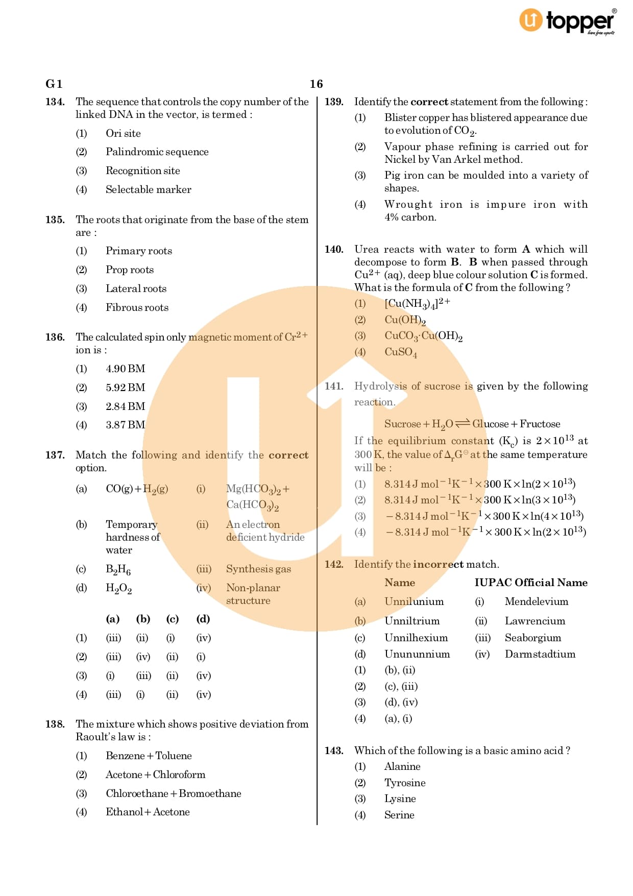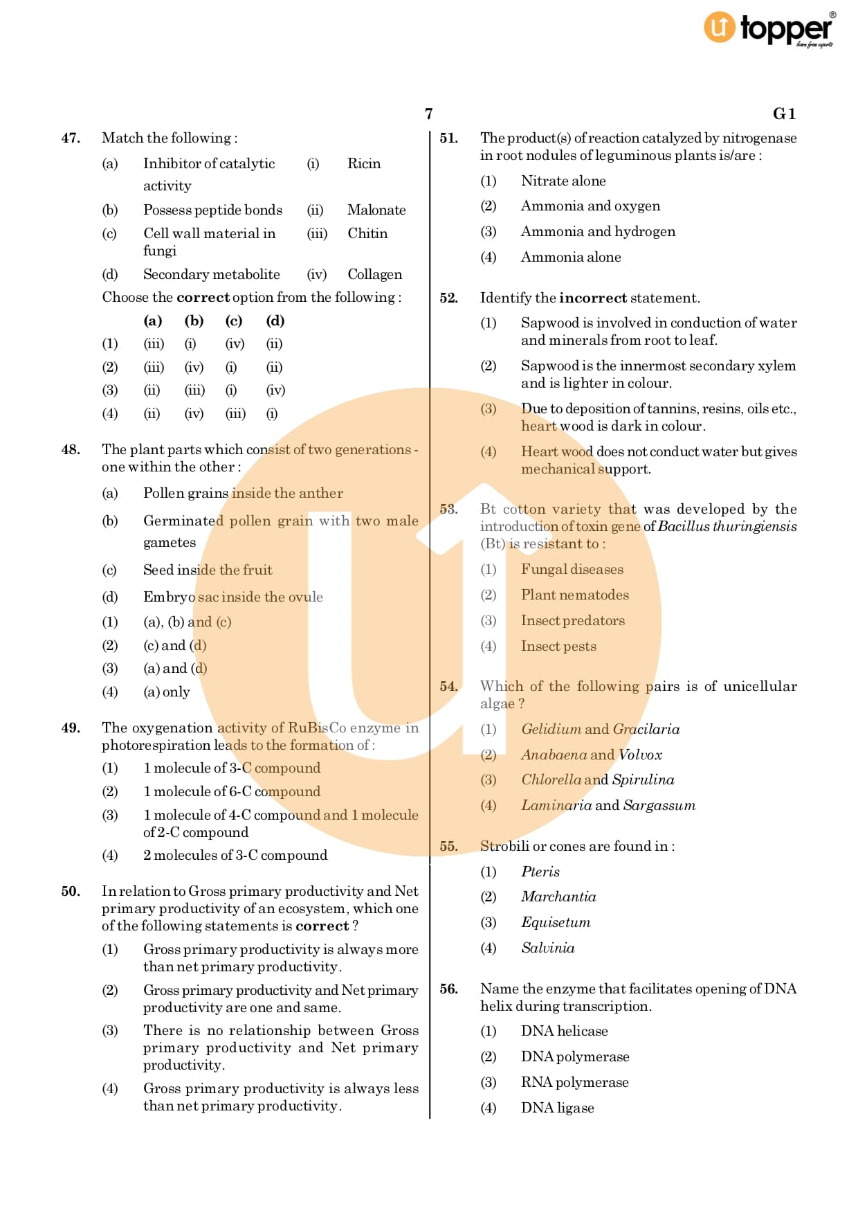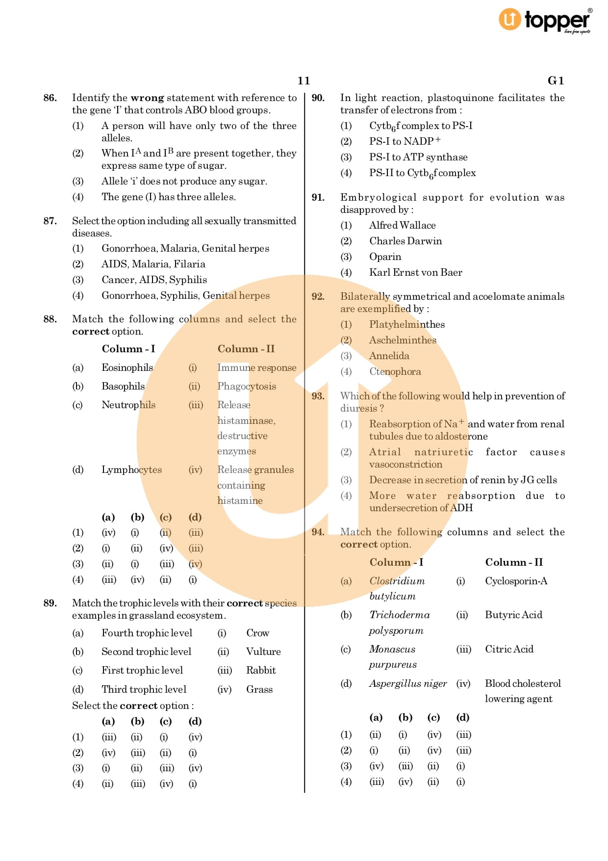 Neet 2020 Previous Year Question Paper Code – G1 Pdf