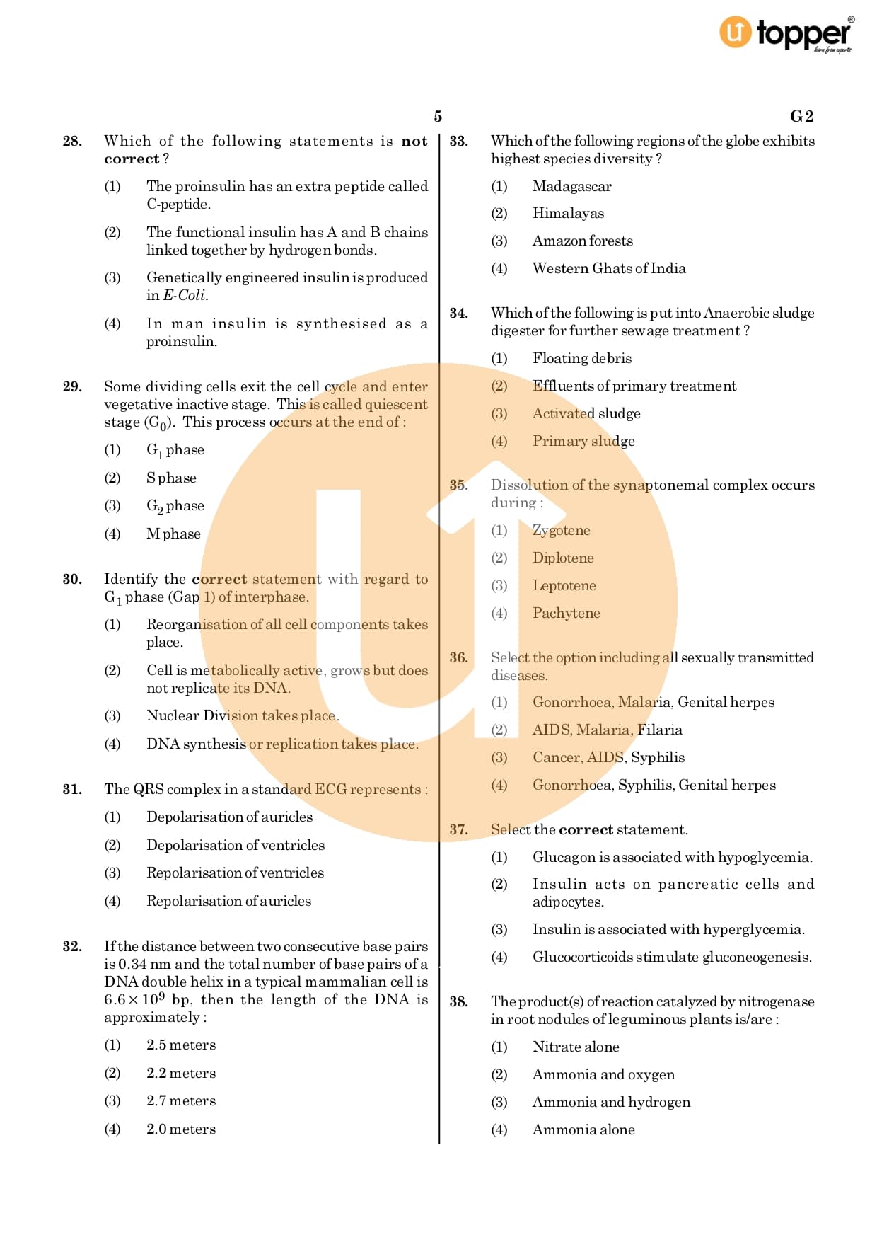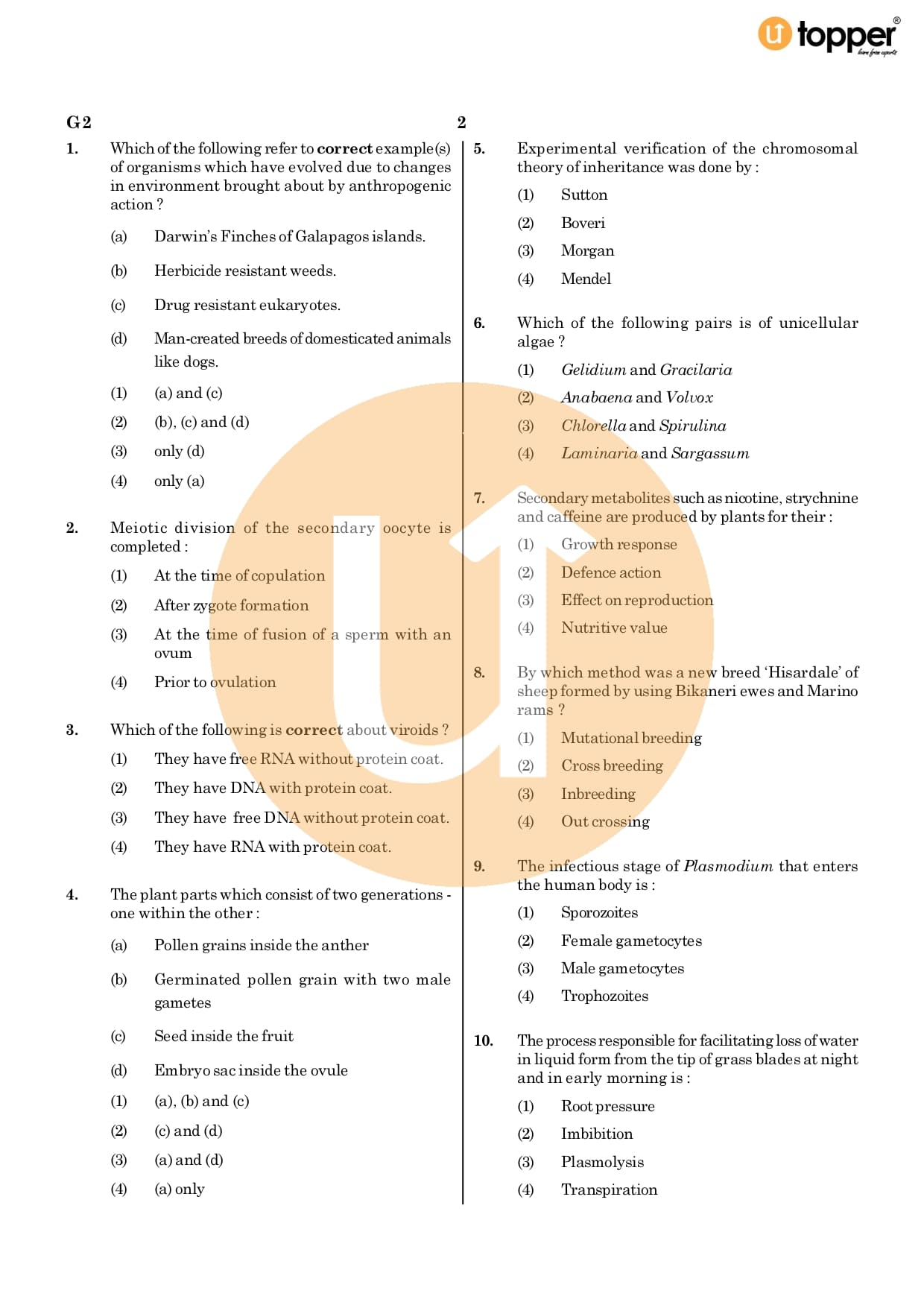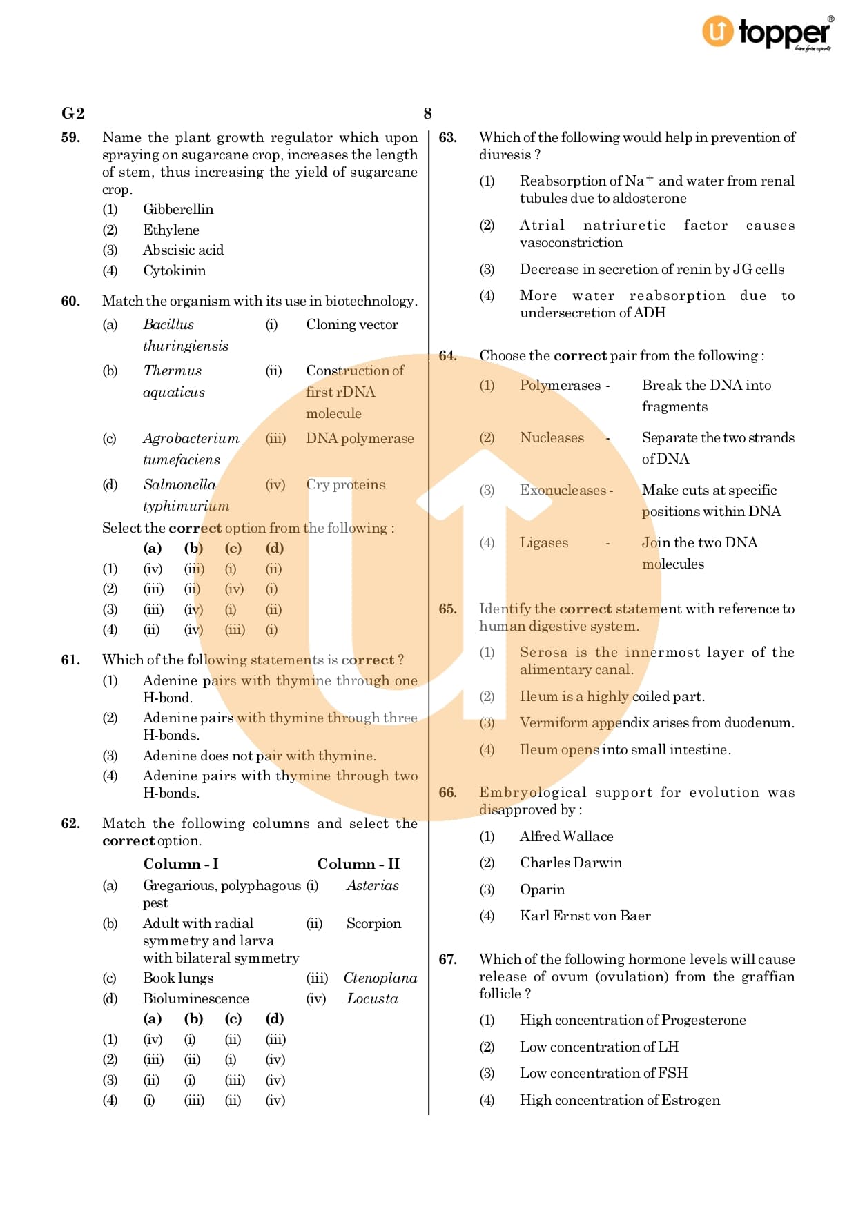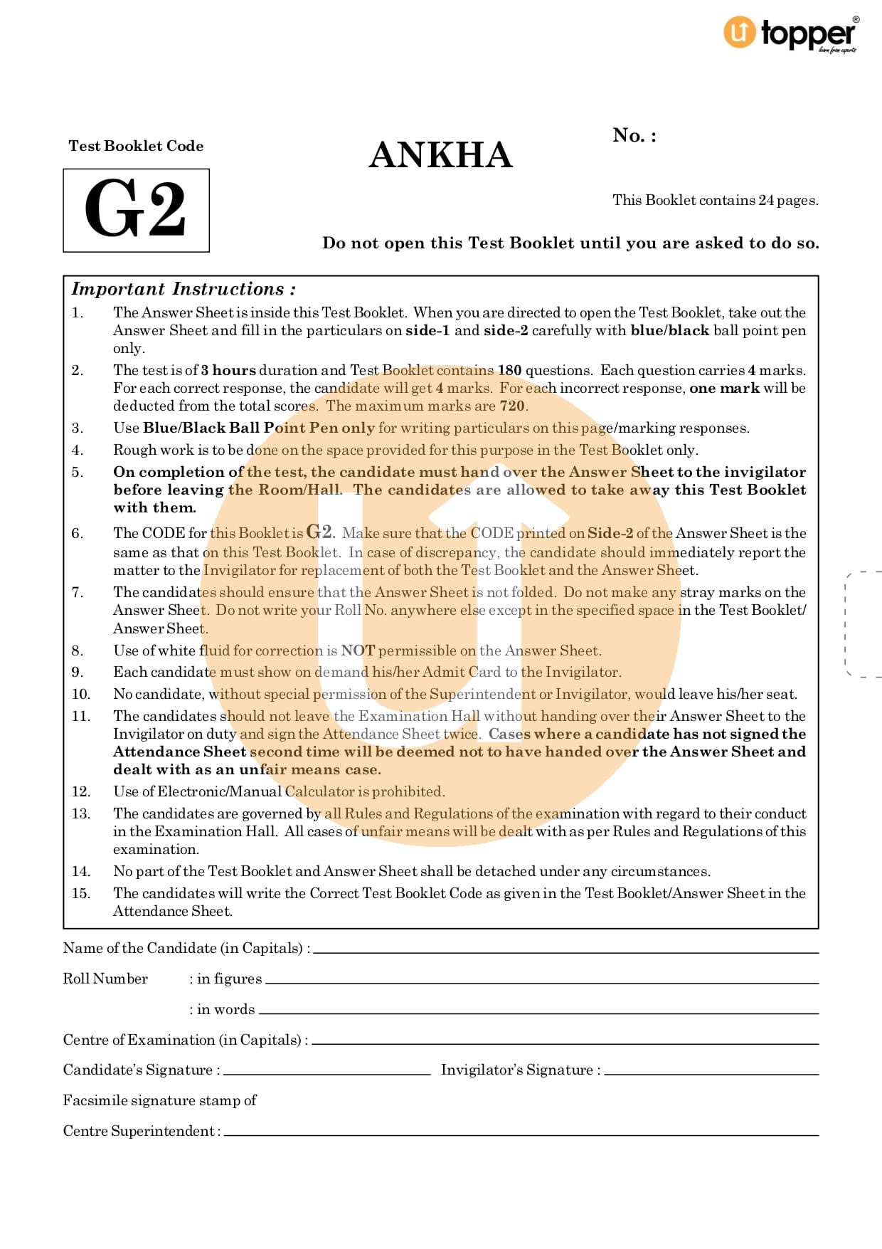 Neet 2020 Previous Year Question Paper Code – G2 Pdf