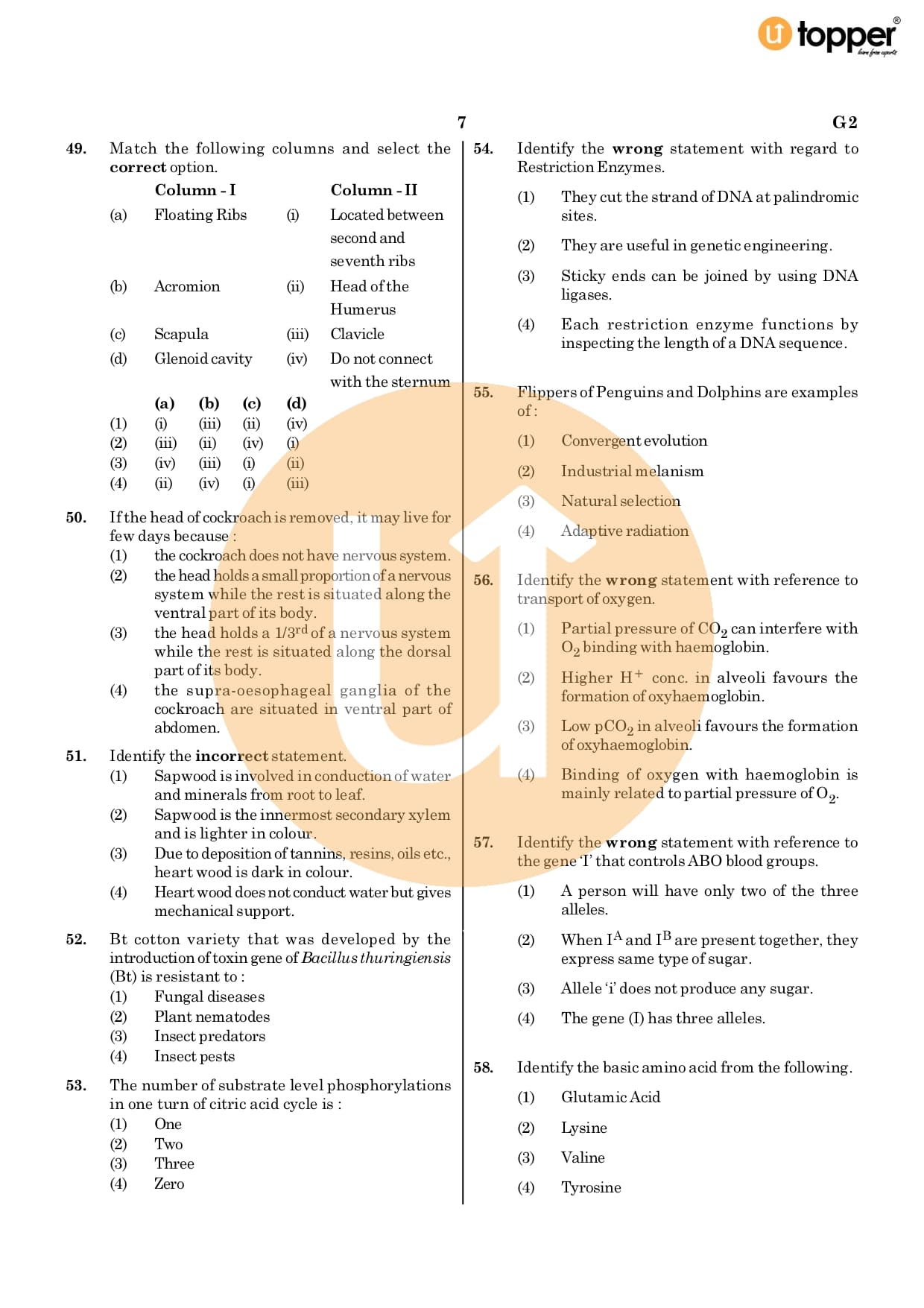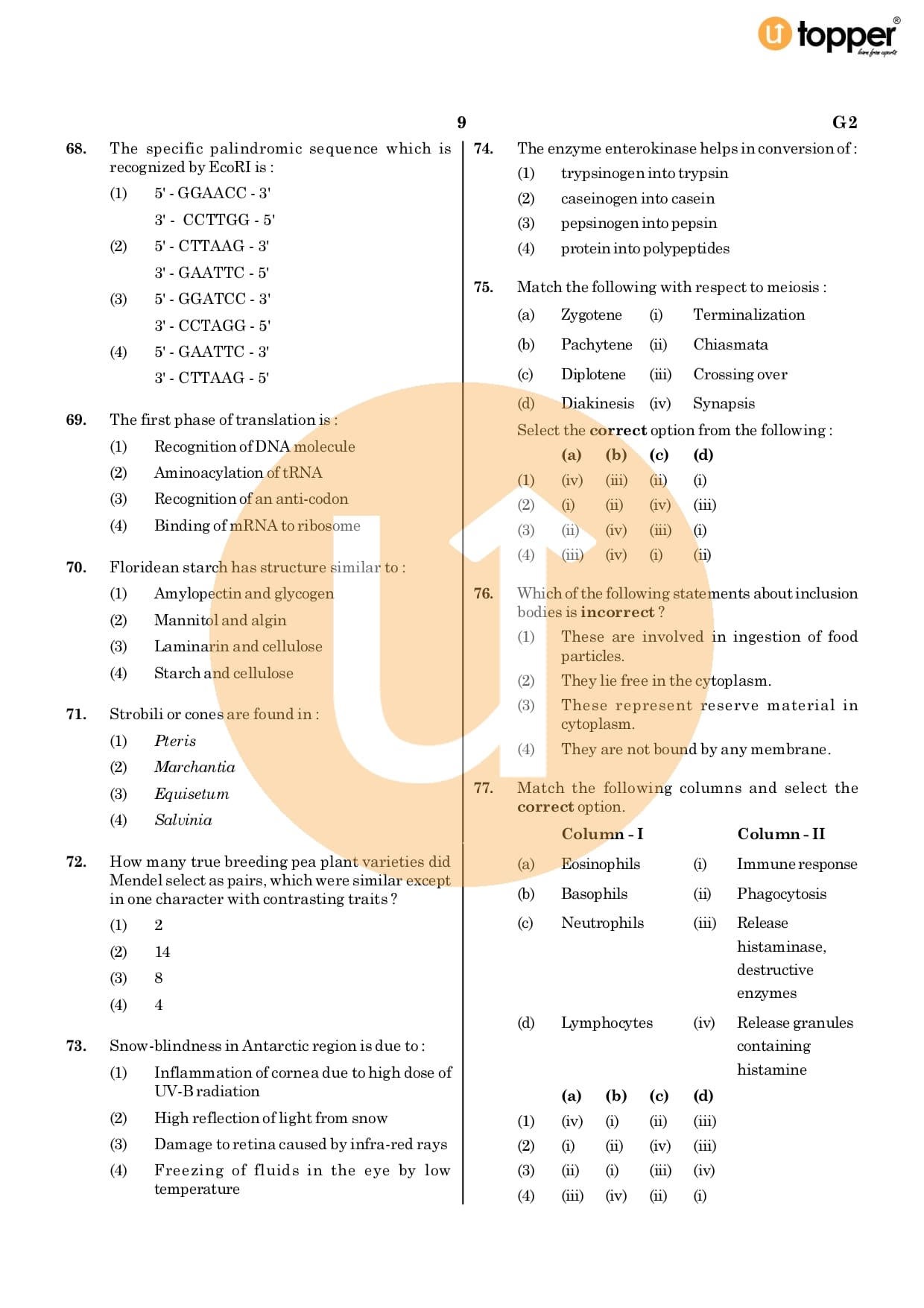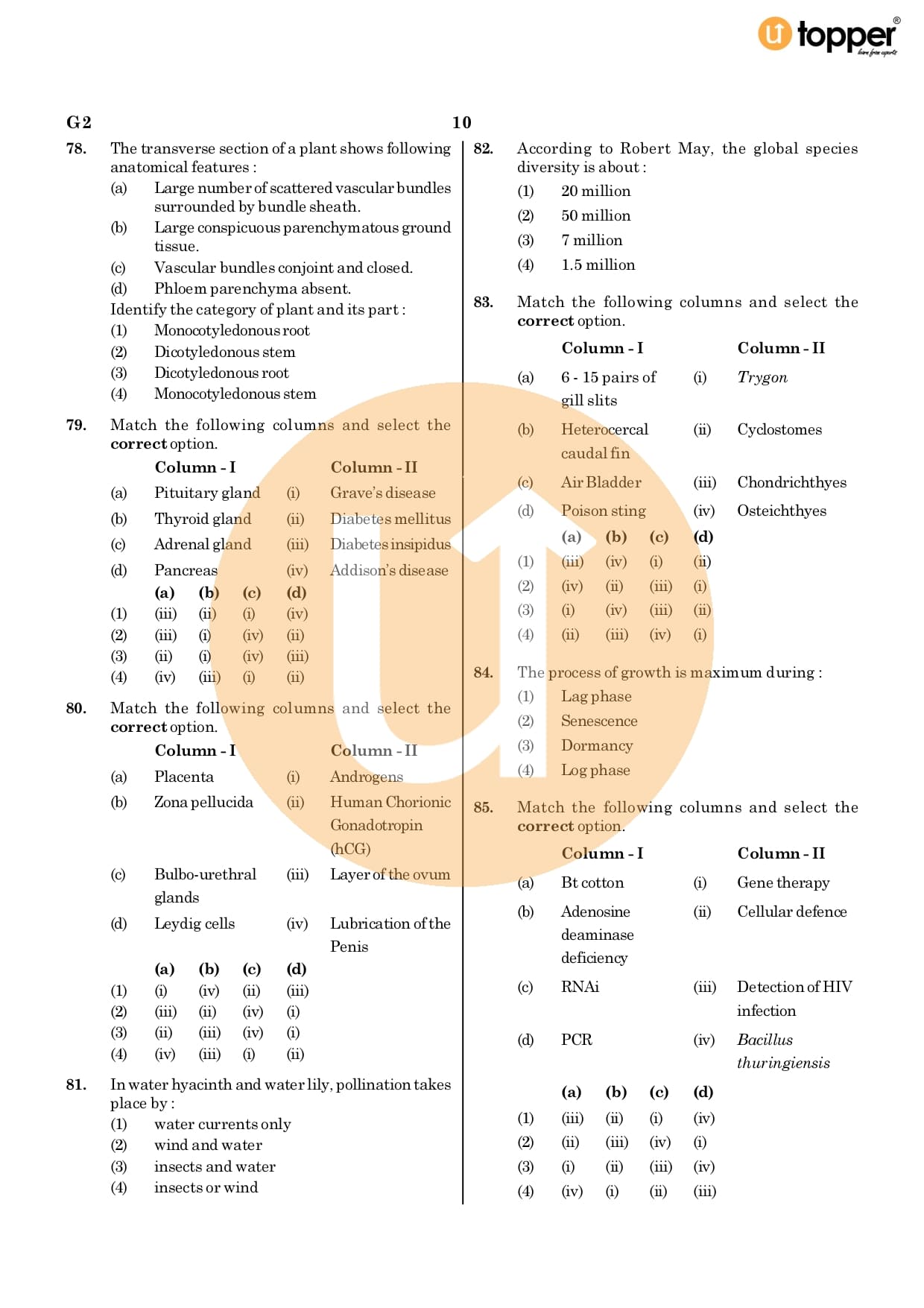 Neet 2020 Previous Year Question Paper Code – G2 Pdf