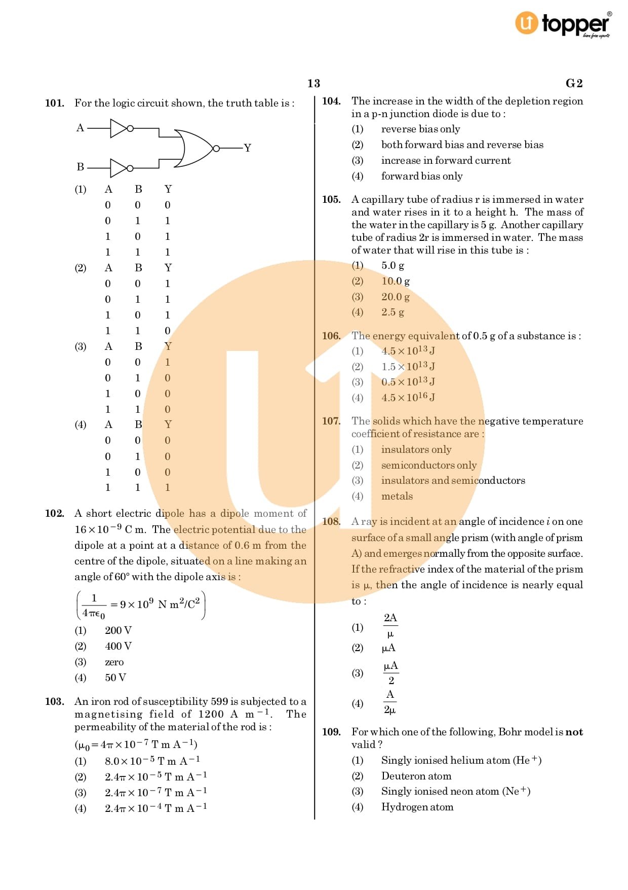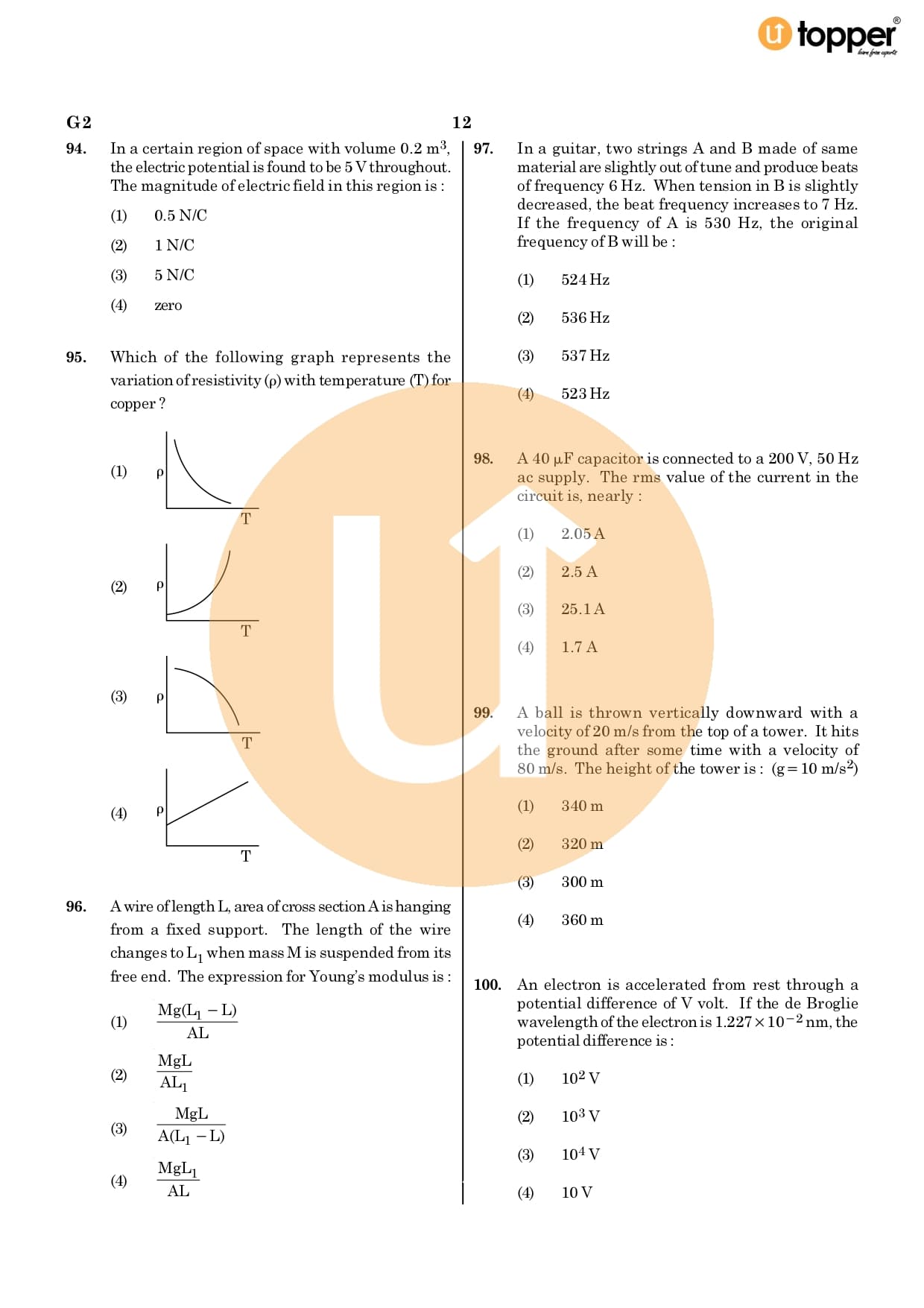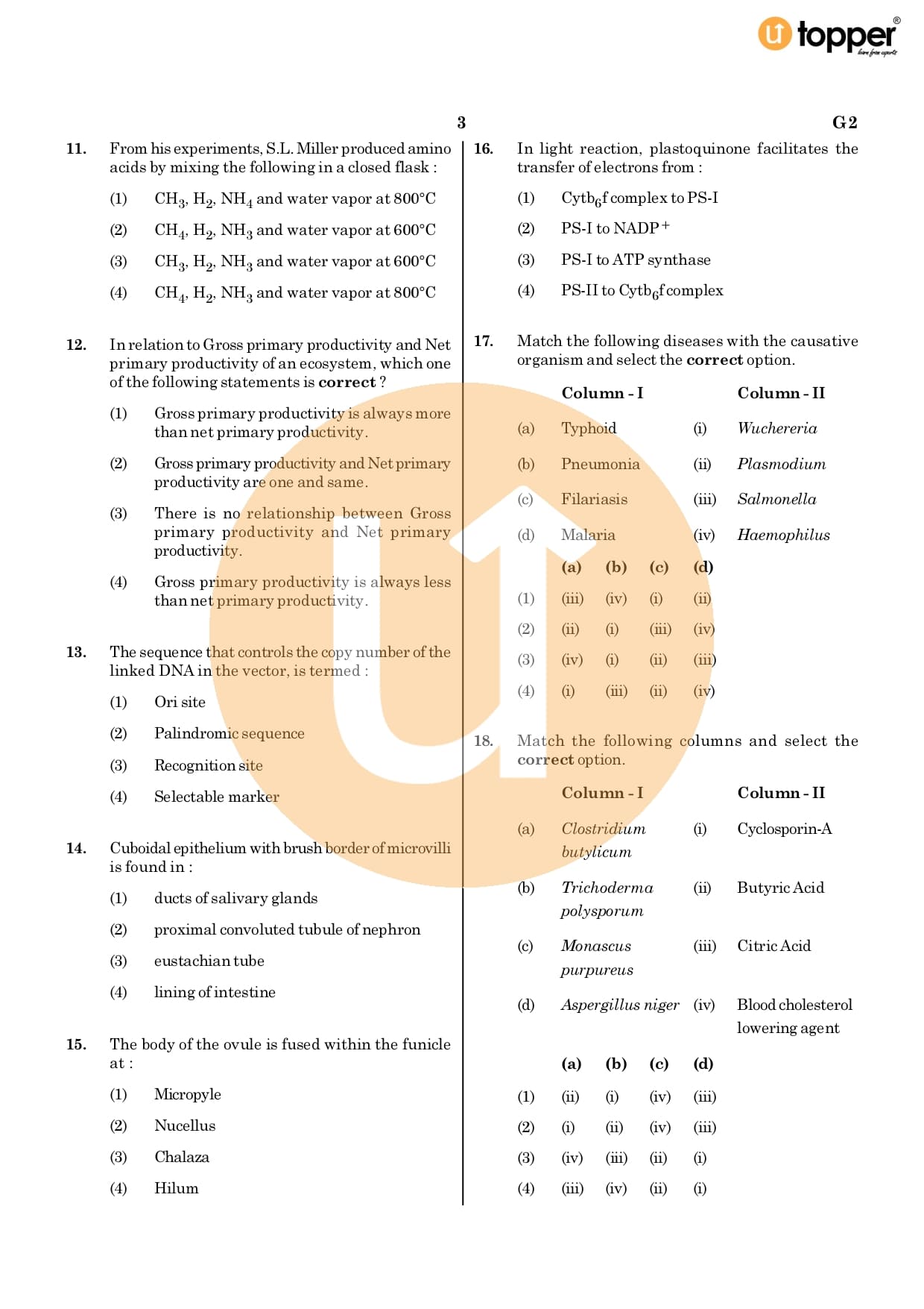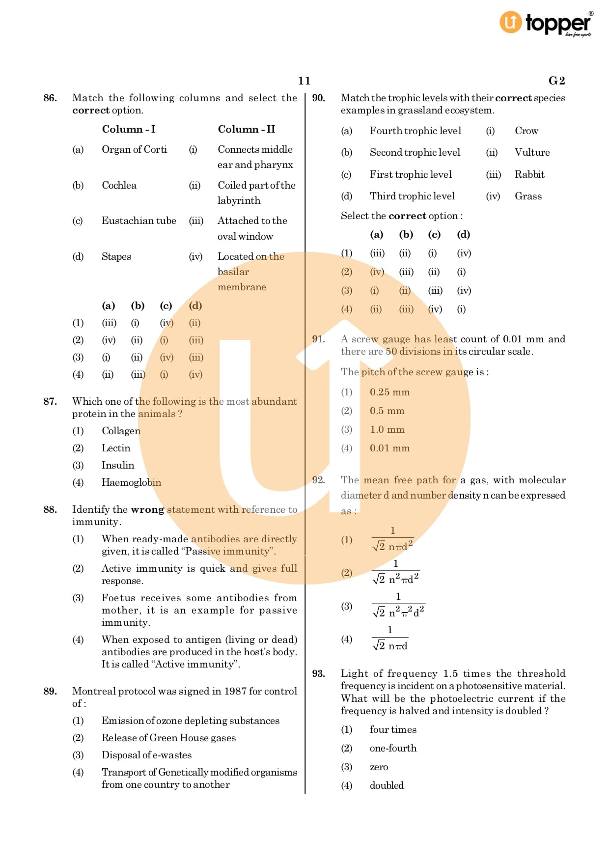 Neet 2020 Previous Year Question Paper Code – G2 Pdf