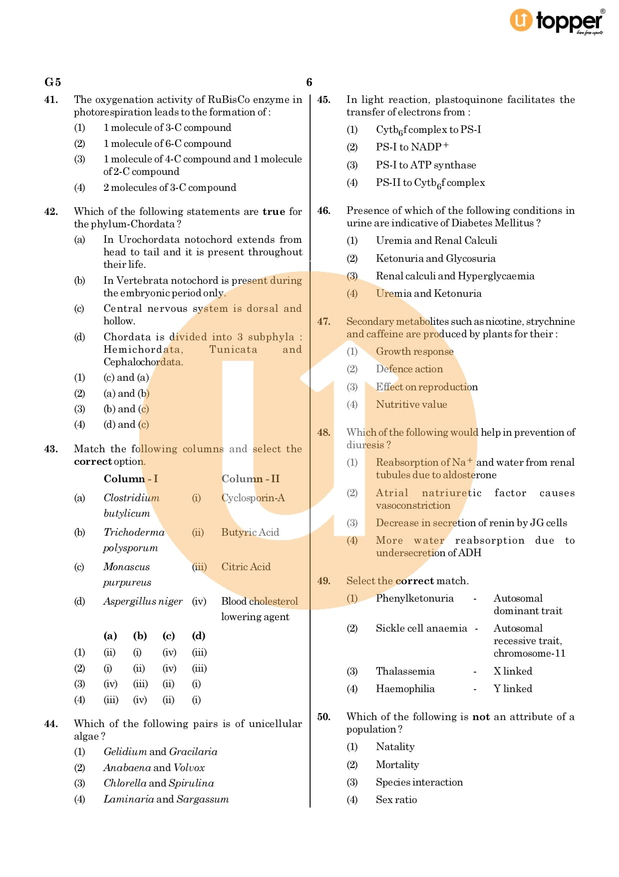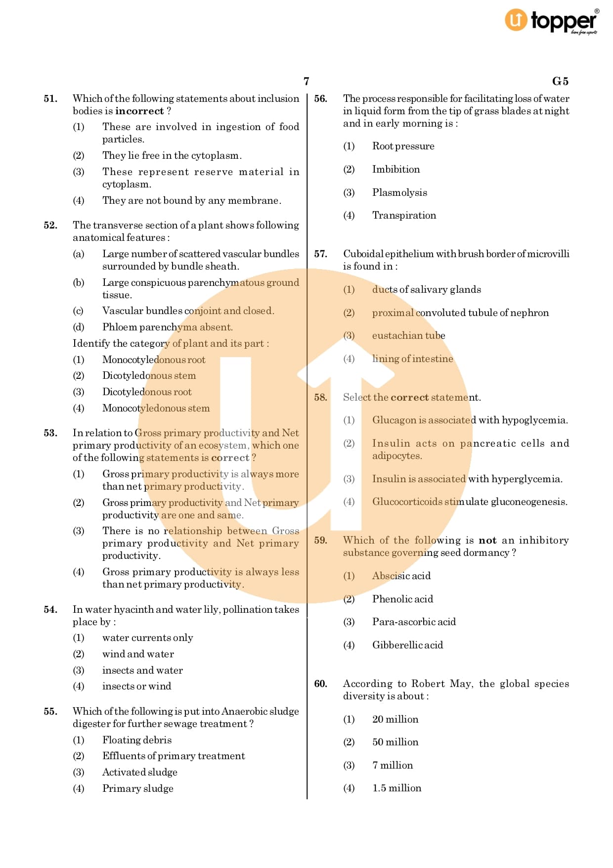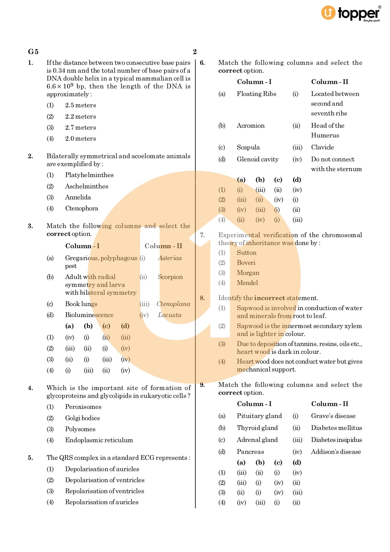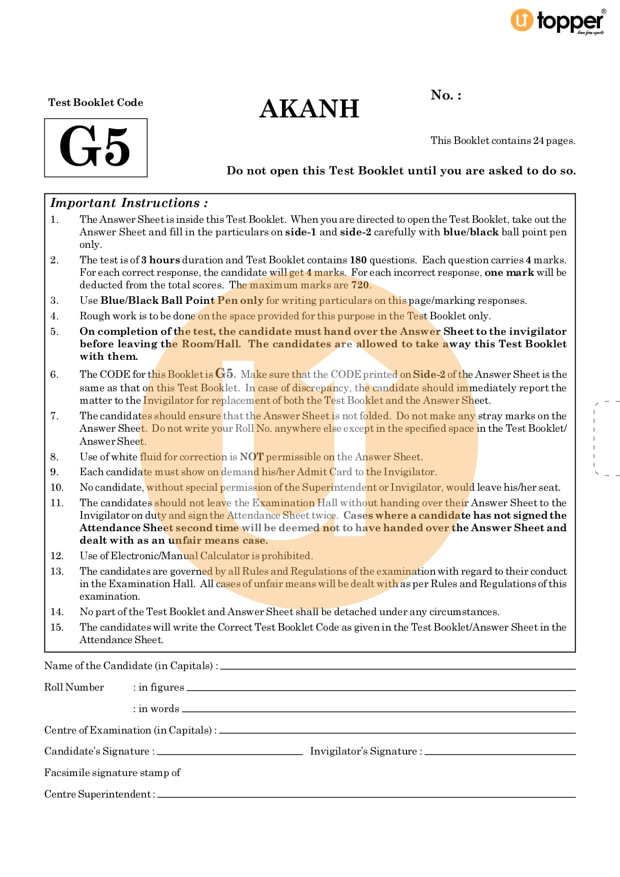 Neet 2020 Previous Year Question Paper Code – G5 Pdf