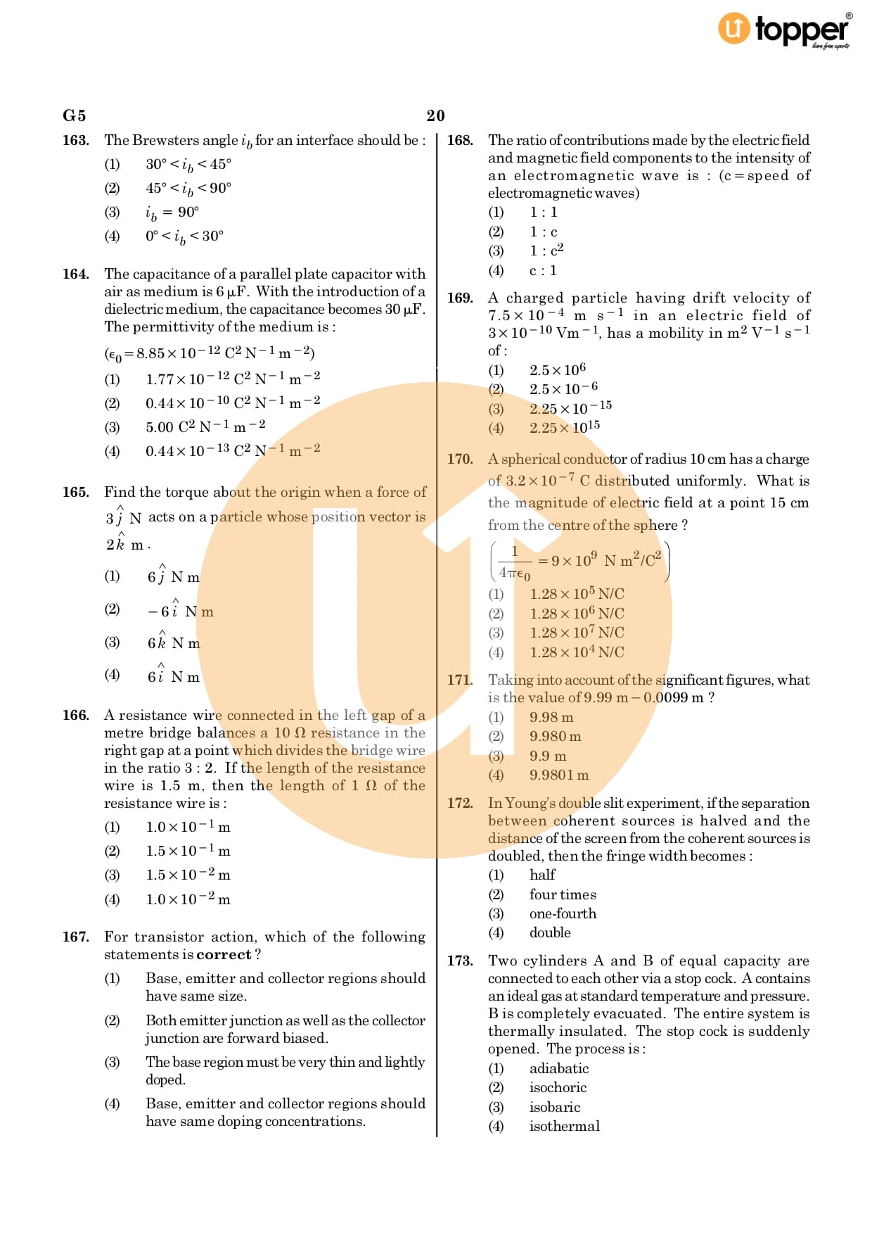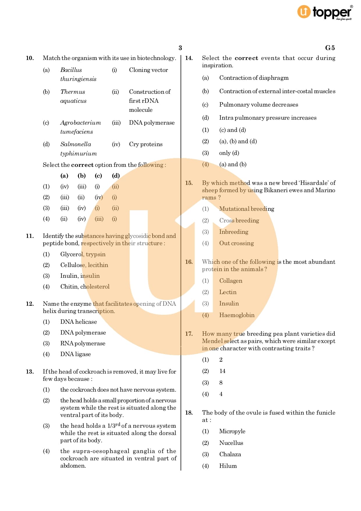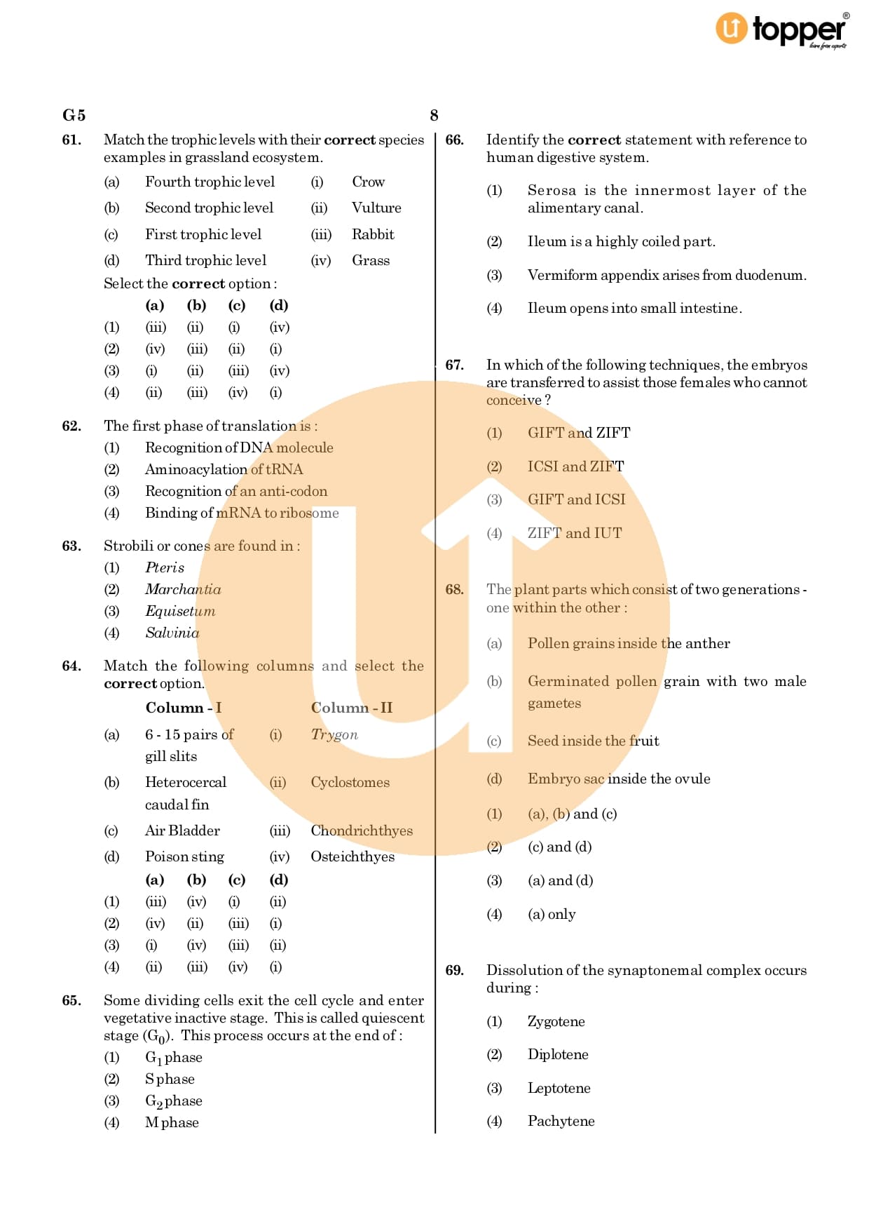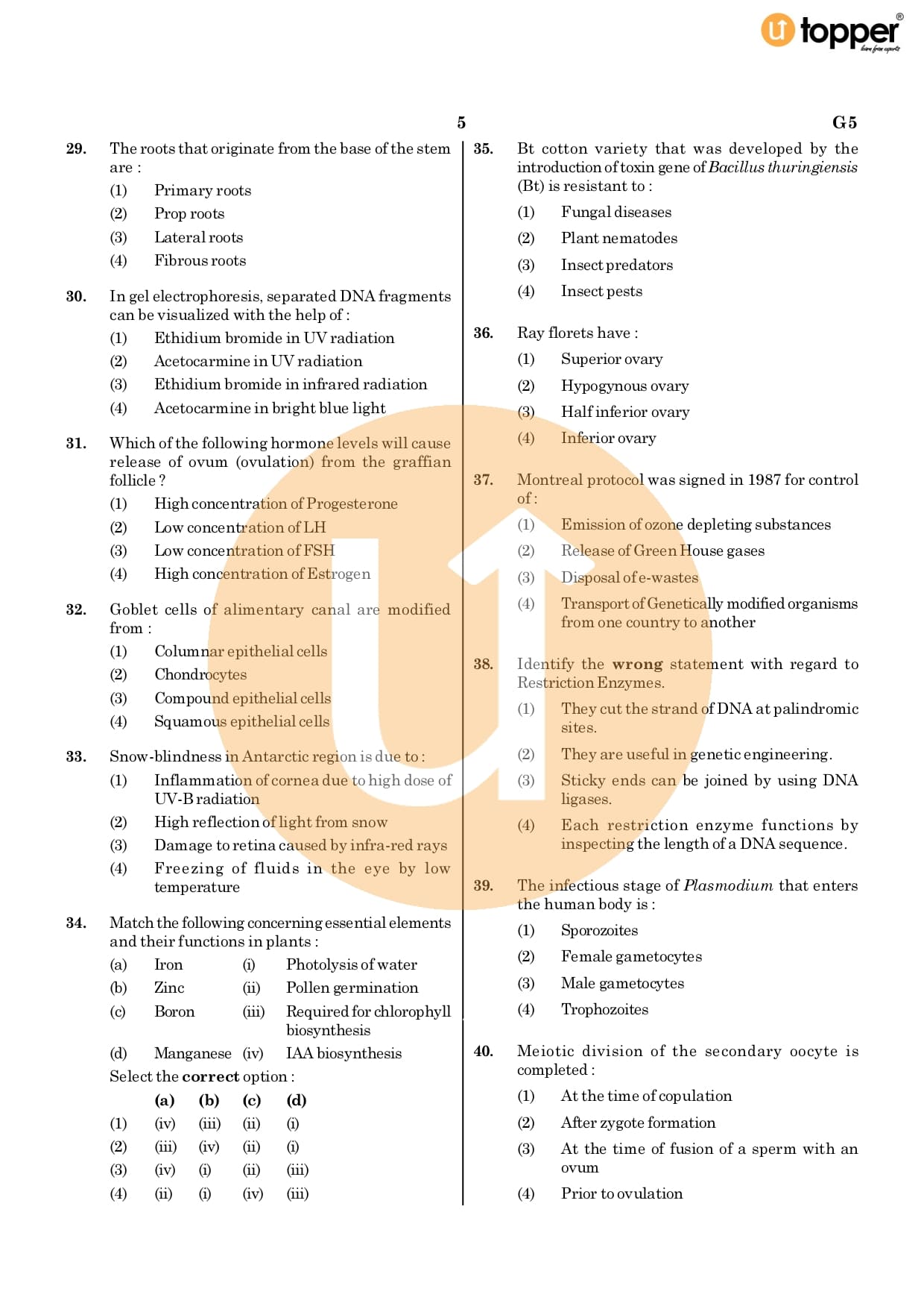 Neet 2020 Previous Year Question Paper Code – G5 Pdf