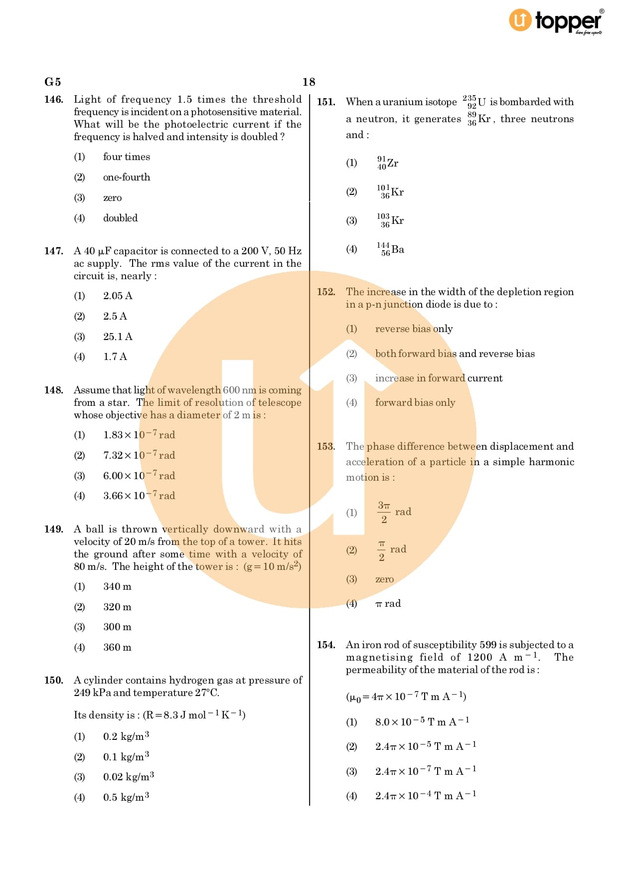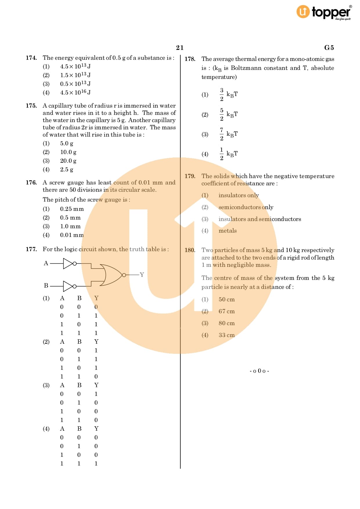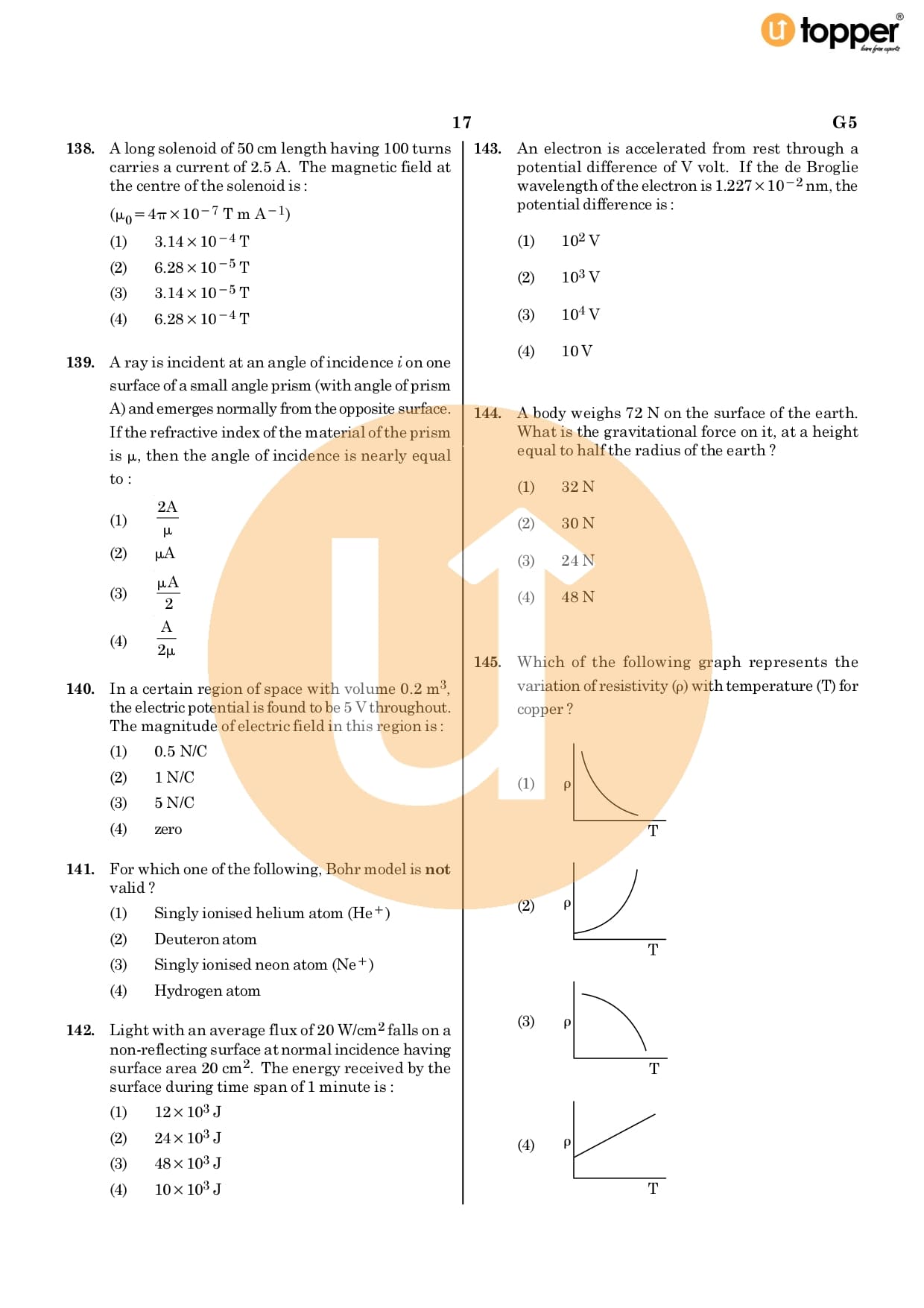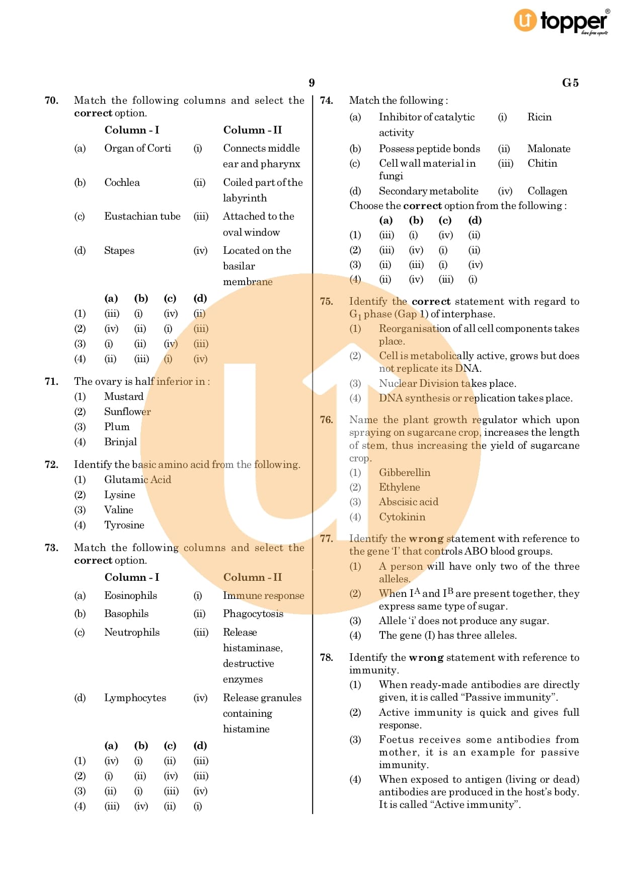 Neet 2020 Previous Year Question Paper Code – G5 Pdf