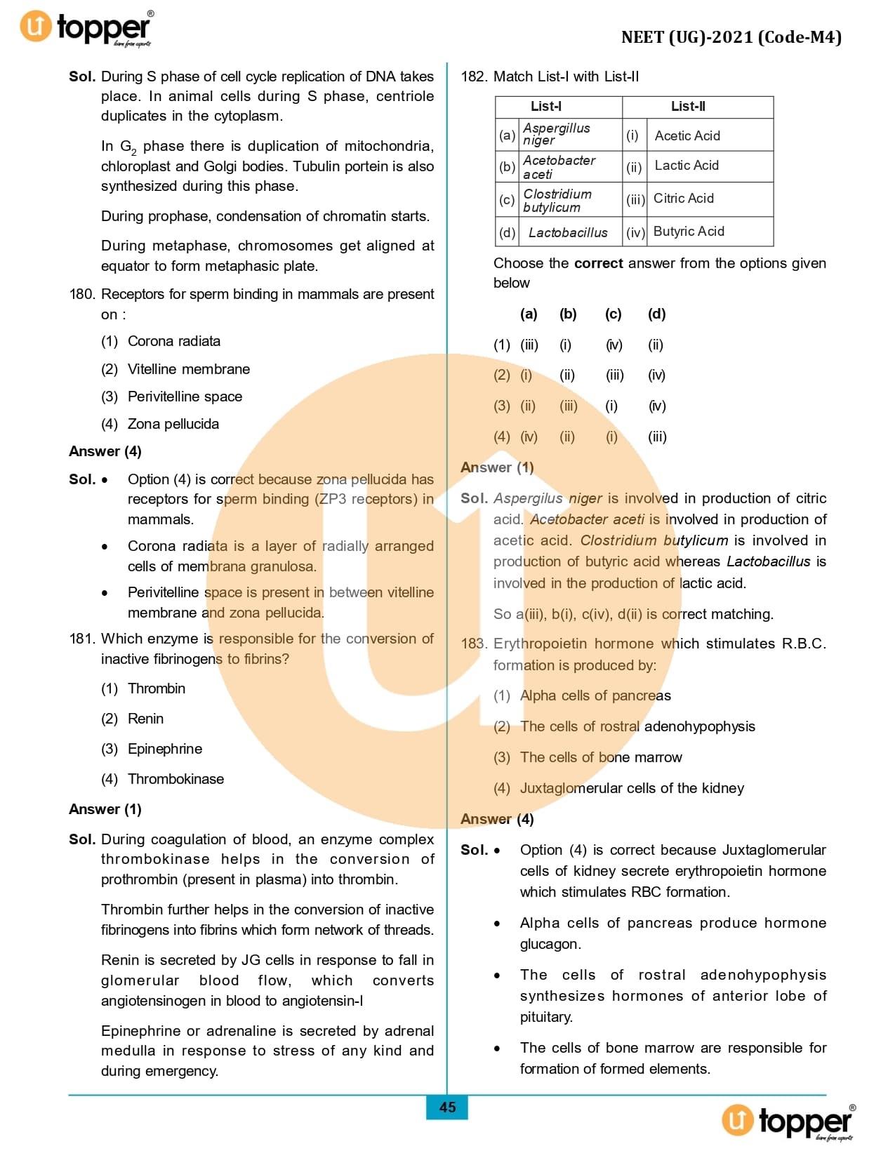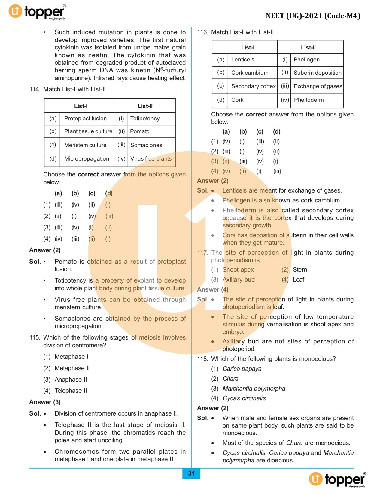 NEET Previous Year Question Paper 2021 CODE – M4 Solution