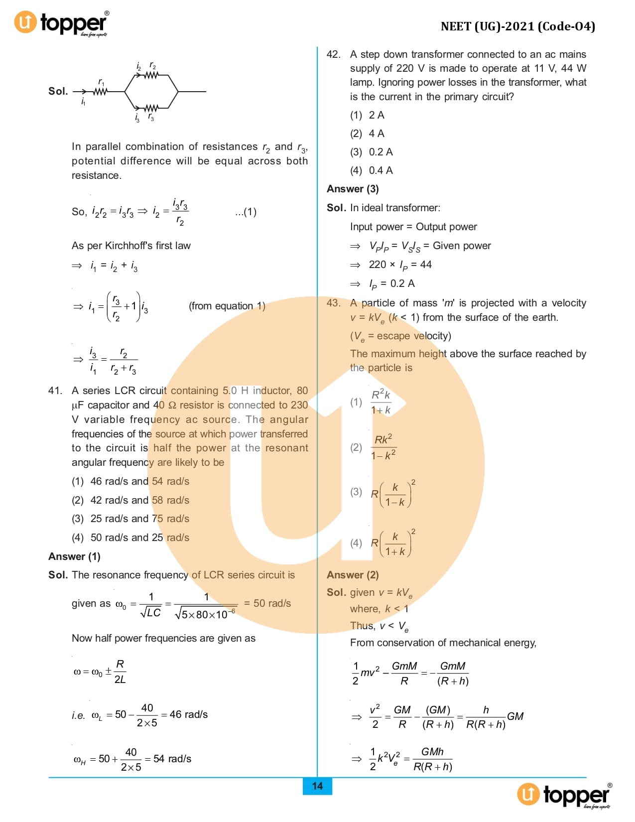Neet 2021 Previous Year Question Paper Code – O4 Solution Pdf