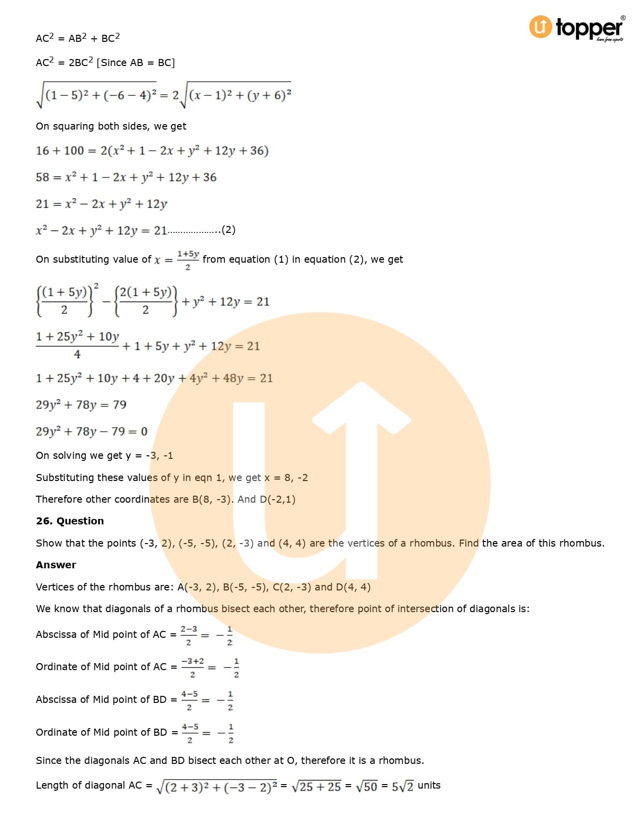 Download the latest version of RD Sharma Solutions for Class 10 Maths Chapter 14 Coordinate Geometry PDF at Utopper. It provides step by step Solution PDF. You can download RD Sharma Maths Solutions with a free PDF download option, which includes chapter wise solutions. All the questions in RD Sharma Solutions have been solved and explained by expert mathematics teachers as per the CBSE Board guidelines. By studying these Maths Solutions, you can easily get good marks in the CBSE board exams.