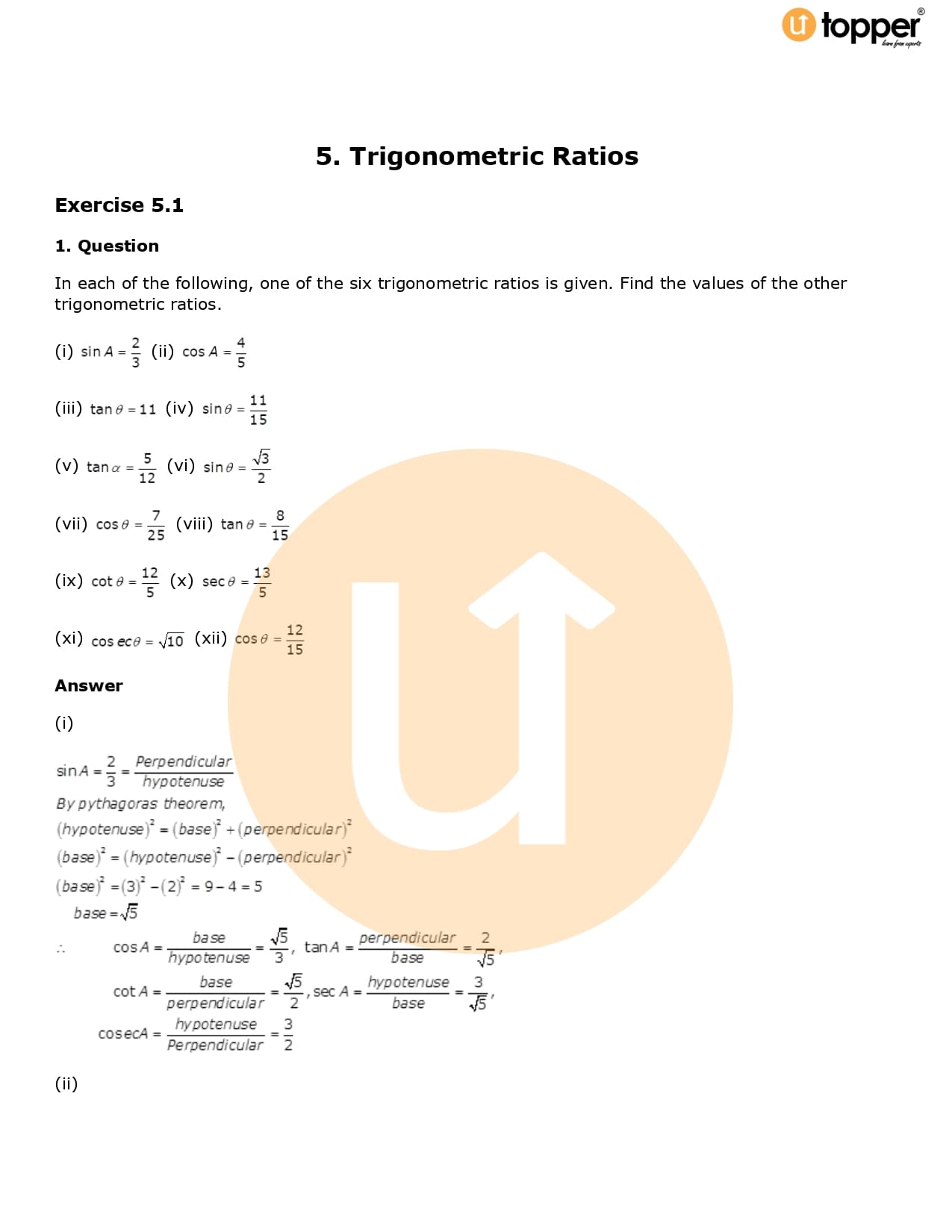 - Chapter 5 – Trigonometric Ratios