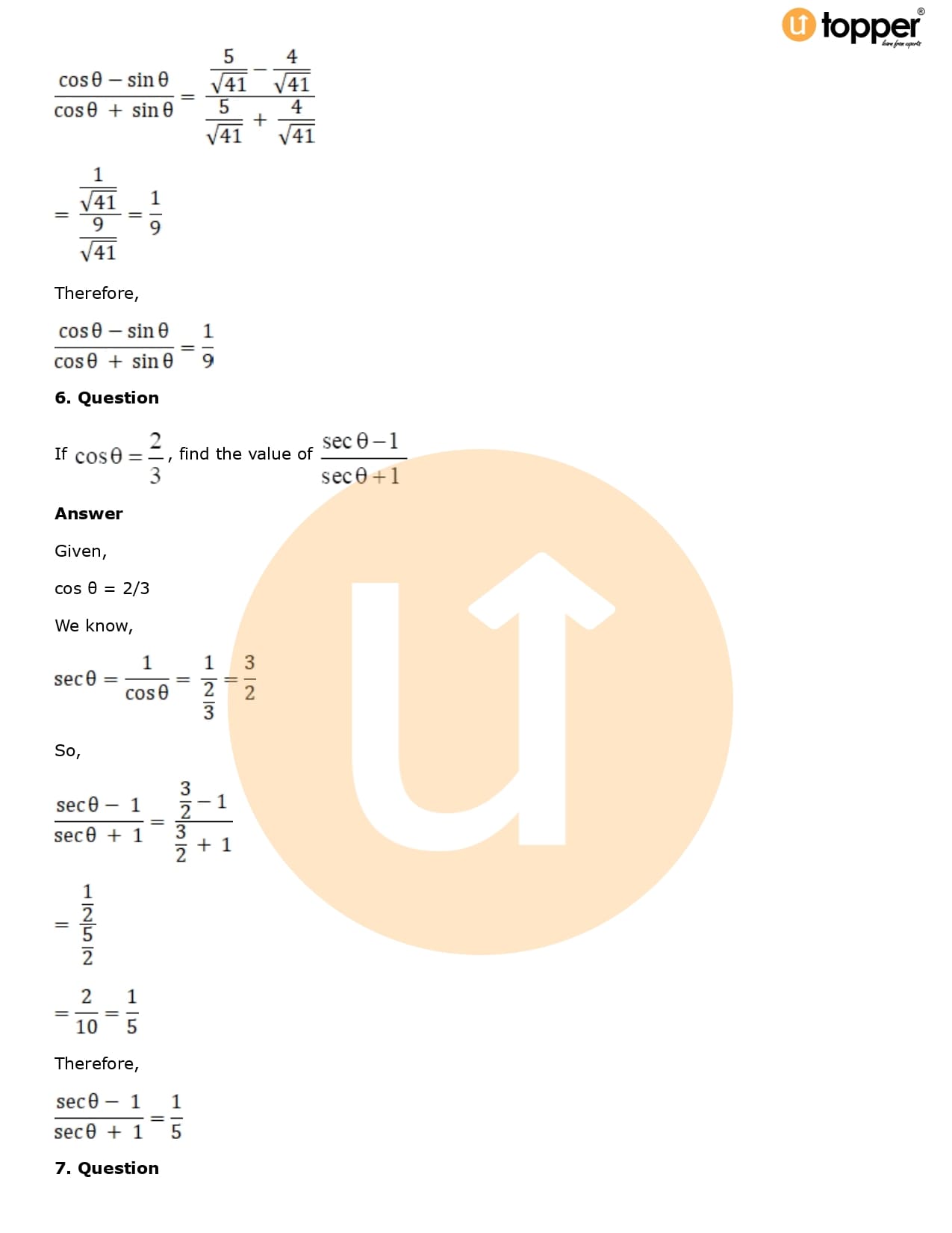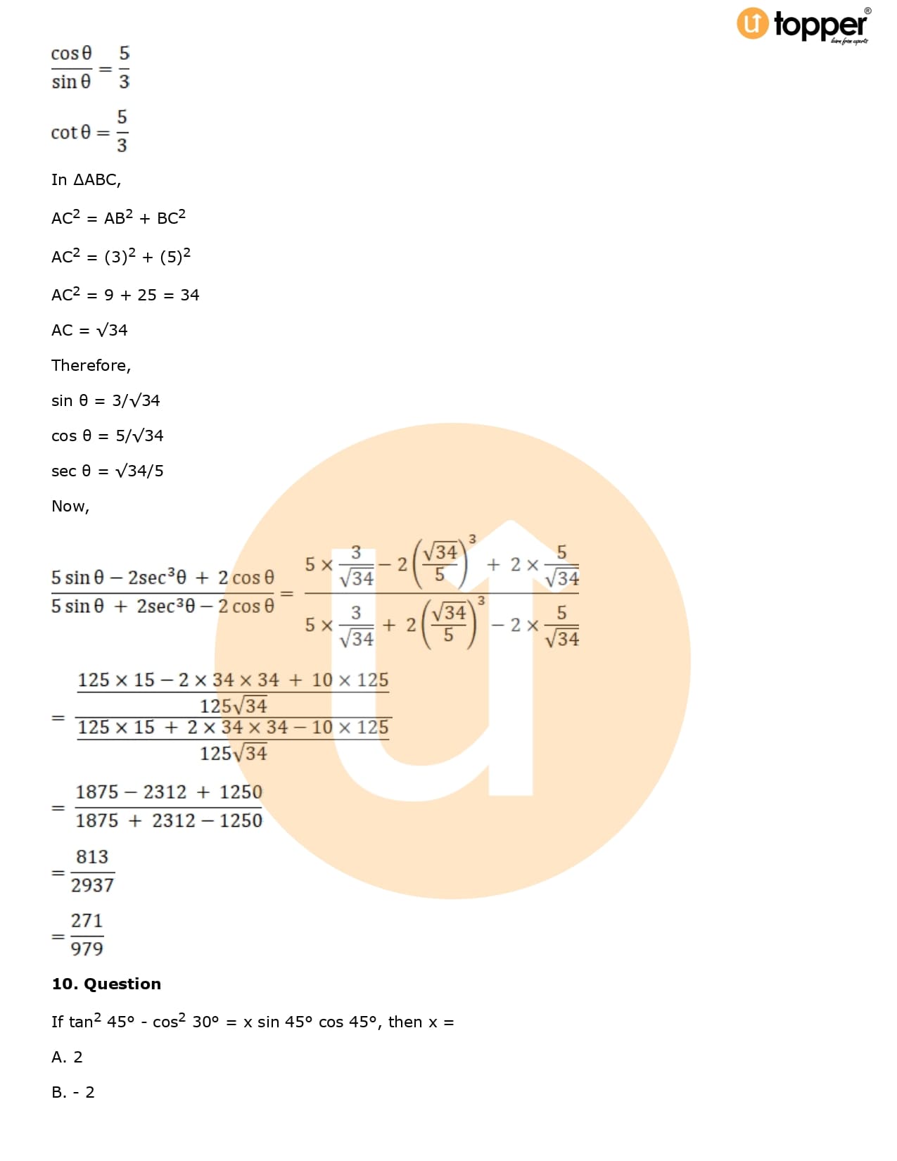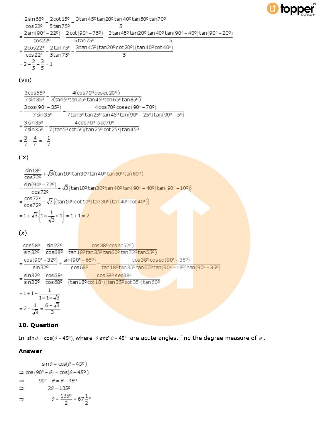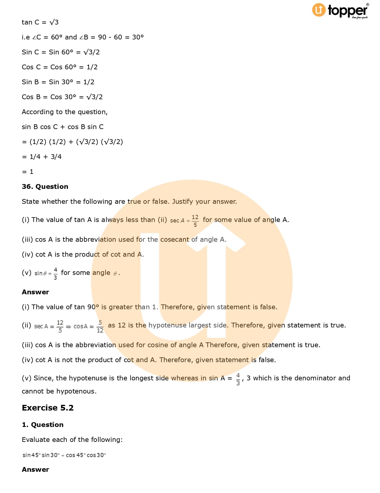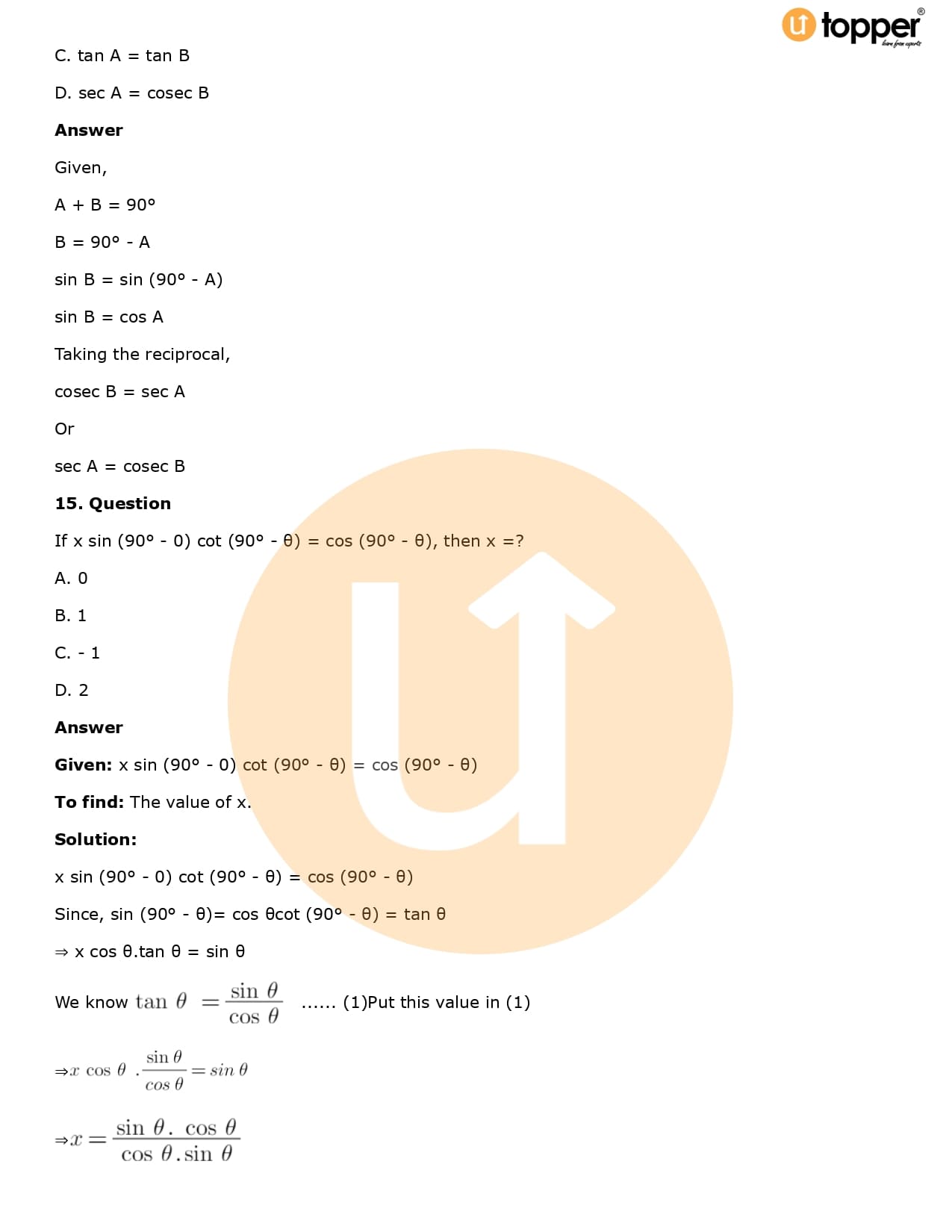 Download the latest version of RD Sharma Solutions for Class 10 Maths Chapter 5 Trigonometric Ratios PDF at Utopper. It provides step by step Solution PDF. You can download RD Sharma Maths Solutions with a free PDF download option, which includes chapter wise solutions. All the questions in RD Sharma Solutions have been solved and explained by expert mathematics teachers as per the CBSE Board guidelines. By studying these Maths Solutions, you can easily get good marks in the CBSE board exams.
