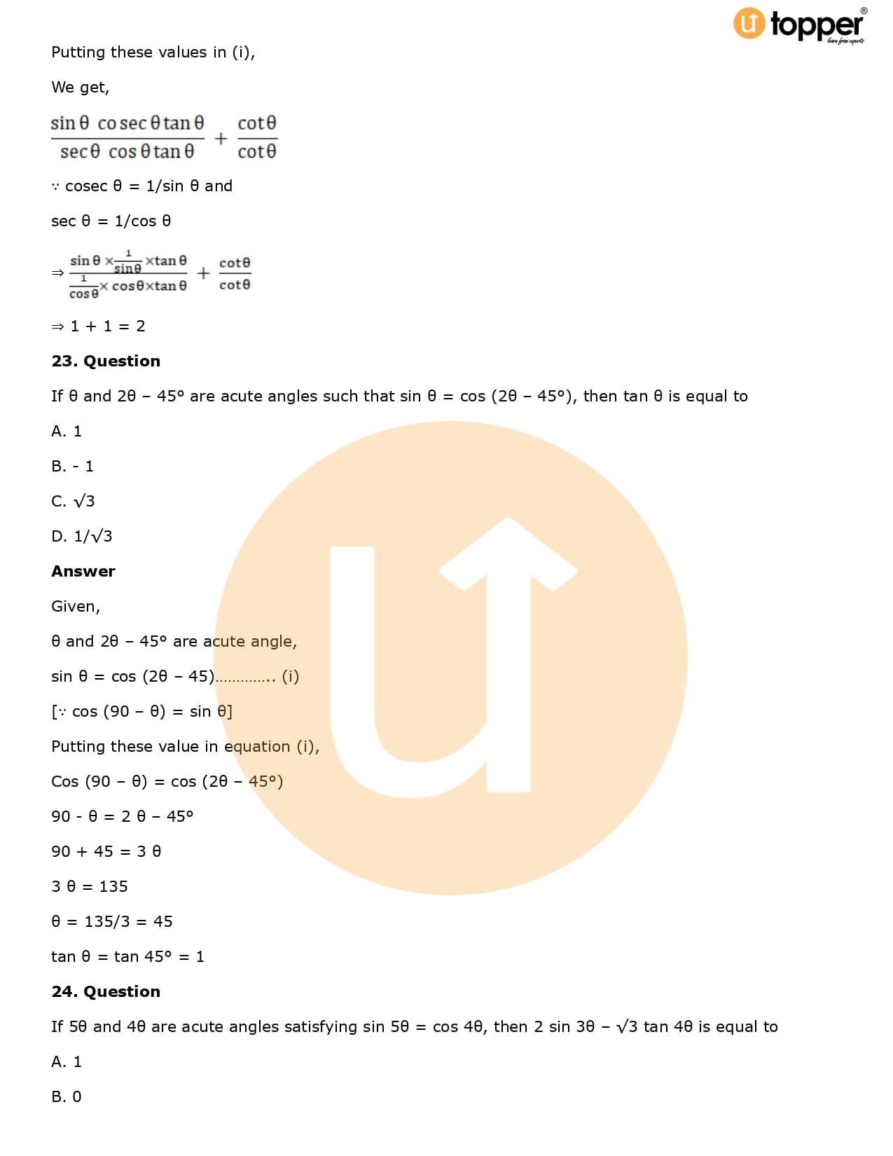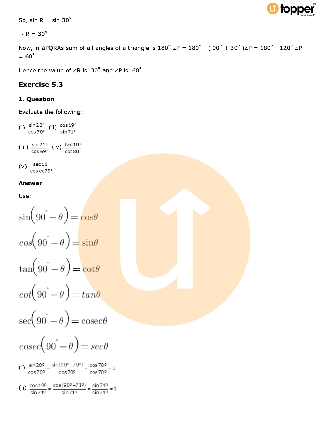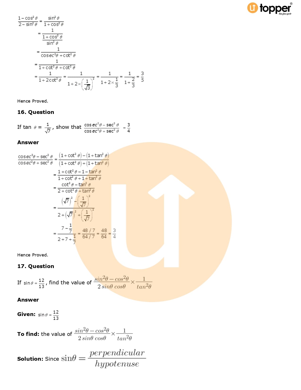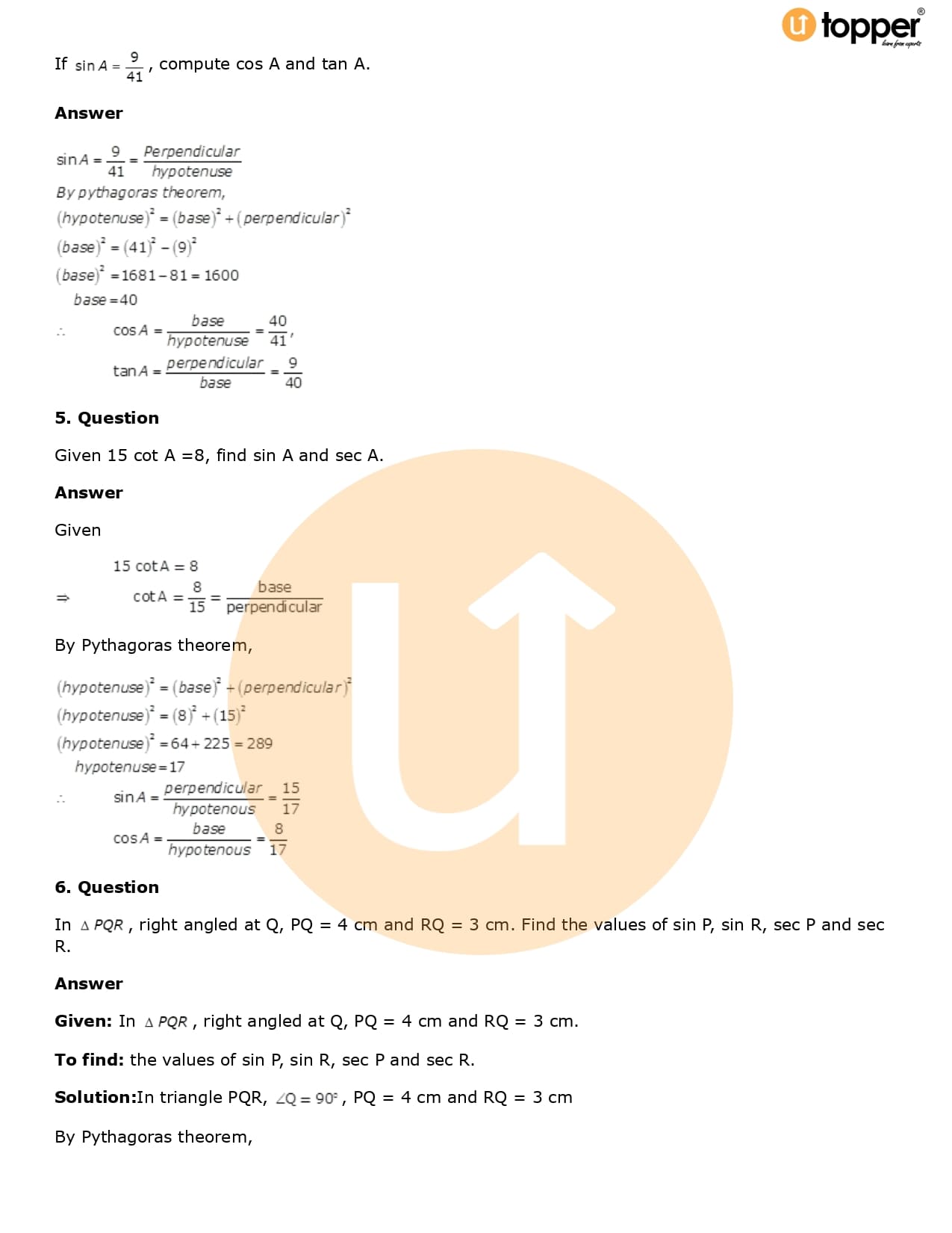 Download the latest version of RD Sharma Solutions for Class 10 Maths Chapter 5 Trigonometric Ratios PDF at Utopper. It provides step by step Solution PDF. You can download RD Sharma Maths Solutions with a free PDF download option, which includes chapter wise solutions. All the questions in RD Sharma Solutions have been solved and explained by expert mathematics teachers as per the CBSE Board guidelines. By studying these Maths Solutions, you can easily get good marks in the CBSE board exams.