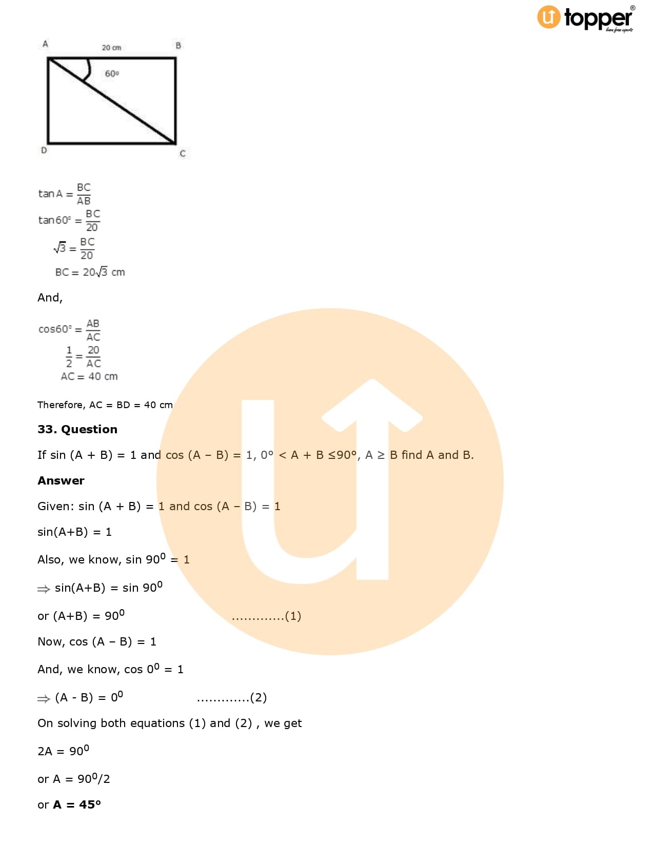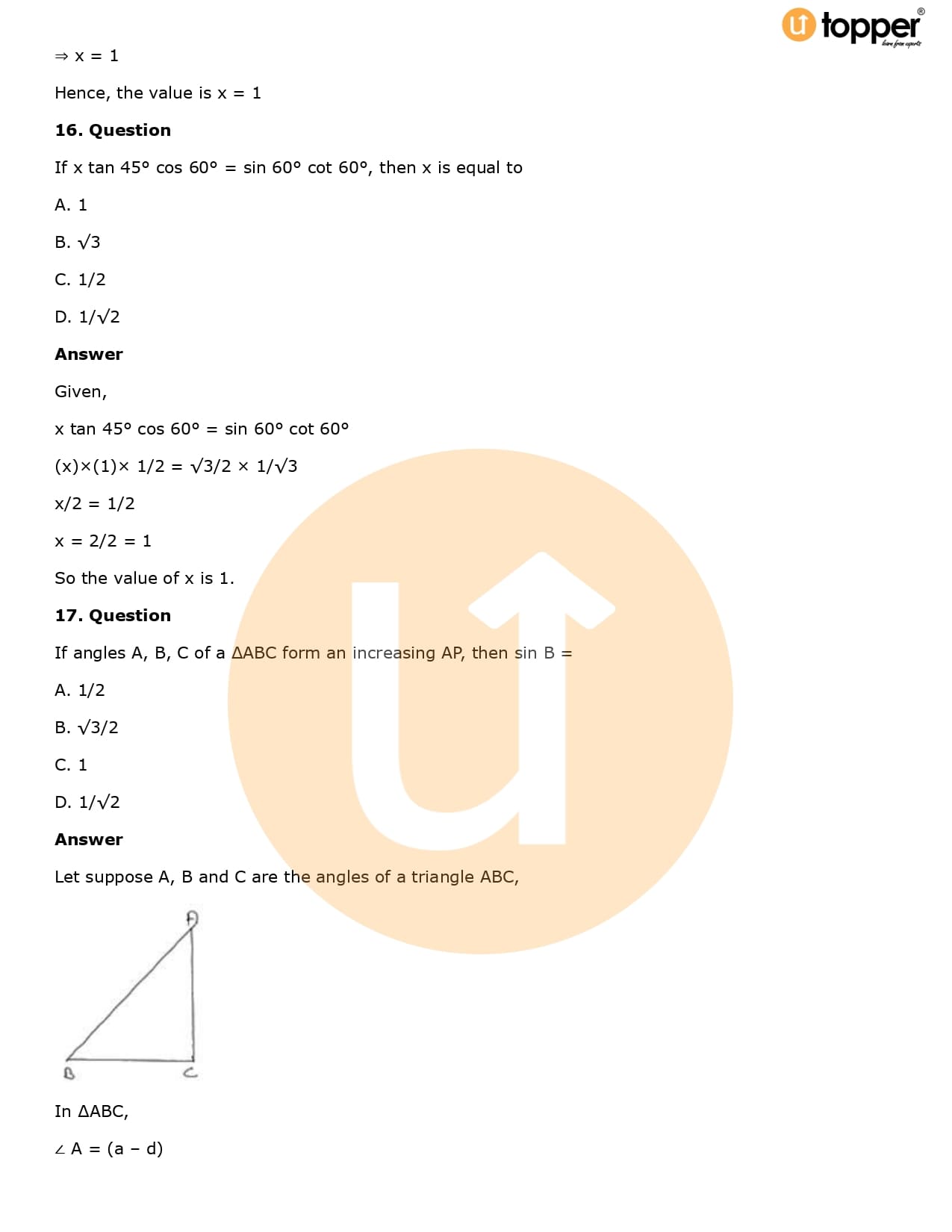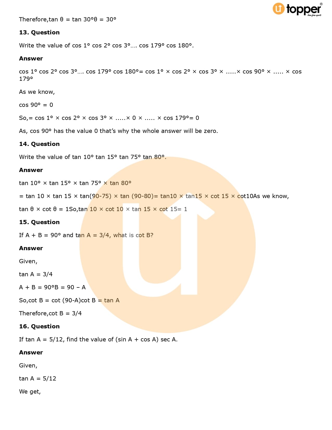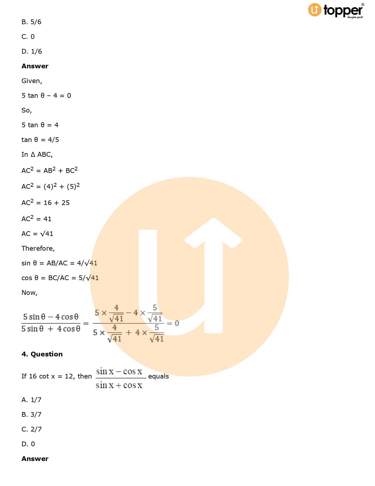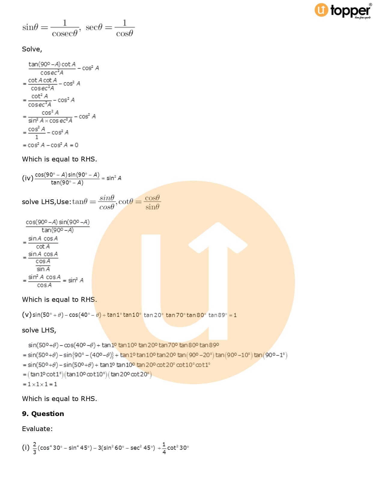 Download the latest version of RD Sharma Solutions for Class 10 Maths Chapter 5 Trigonometric Ratios PDF at Utopper. It provides step by step Solution PDF. You can download RD Sharma Maths Solutions with a free PDF download option, which includes chapter wise solutions. All the questions in RD Sharma Solutions have been solved and explained by expert mathematics teachers as per the CBSE Board guidelines. By studying these Maths Solutions, you can easily get good marks in the CBSE board exams.