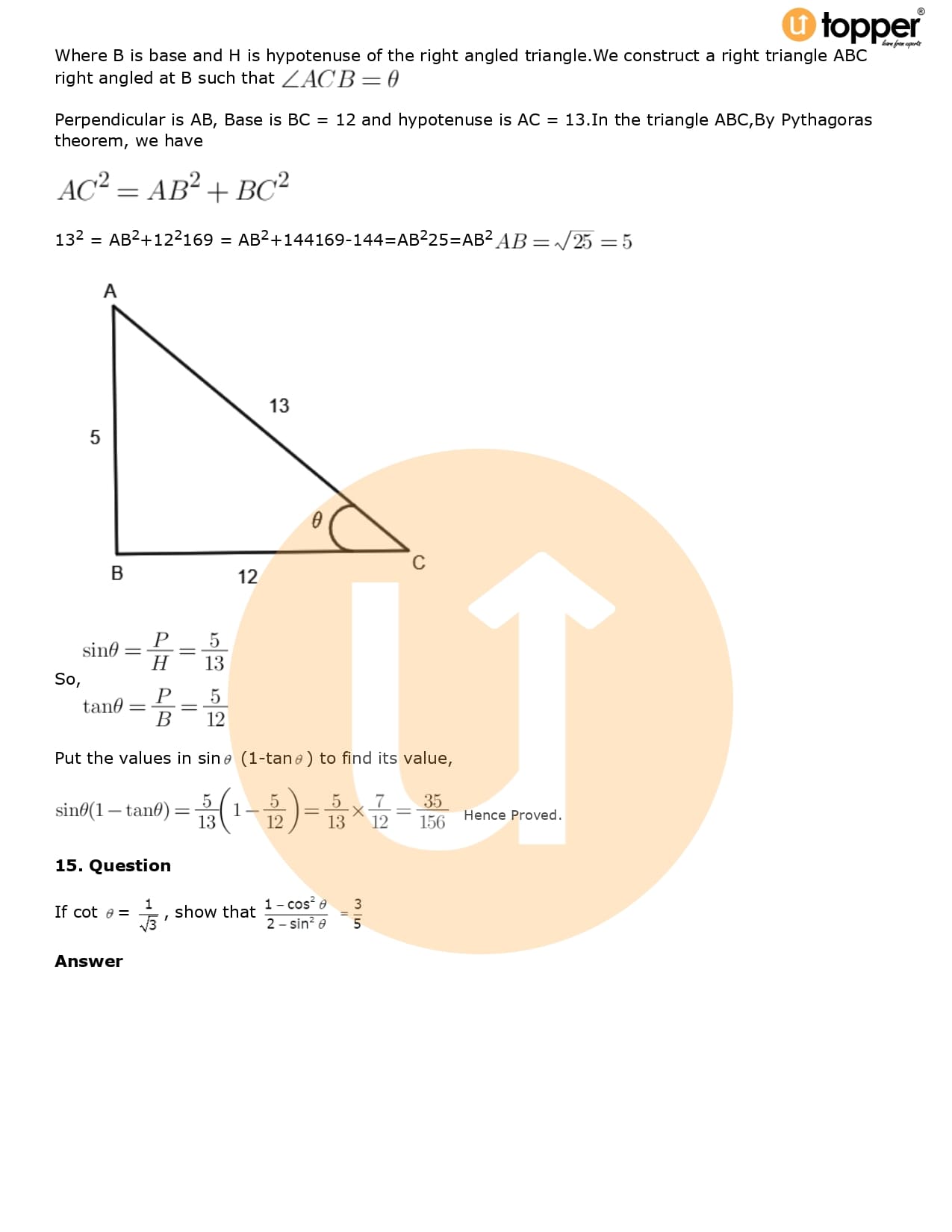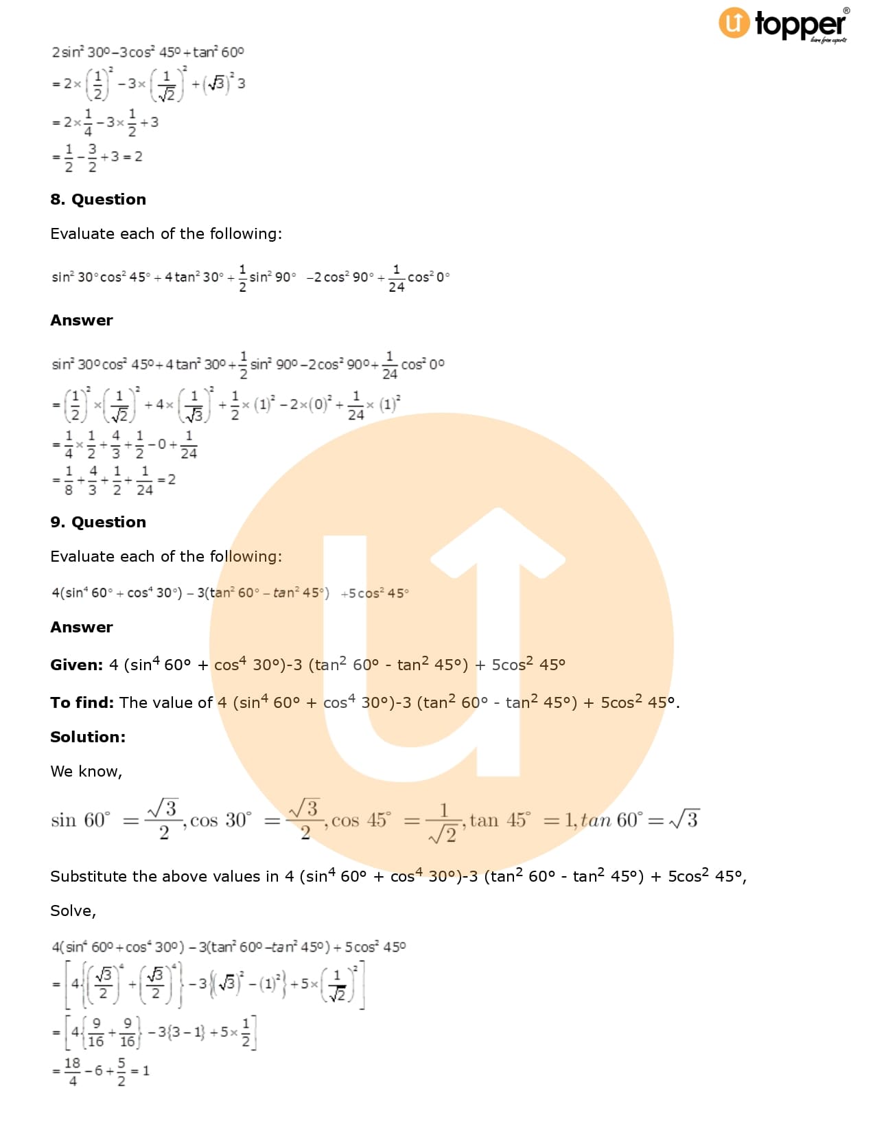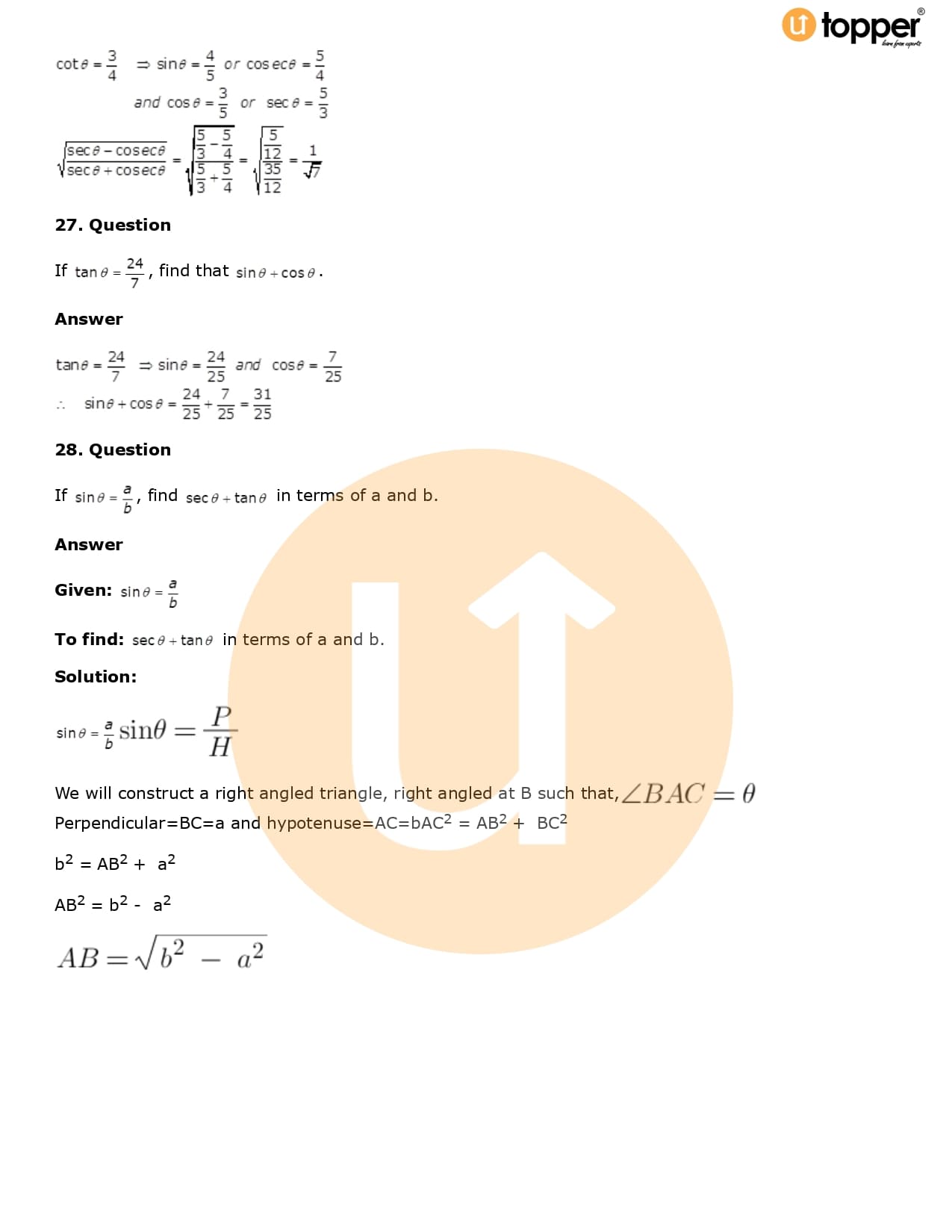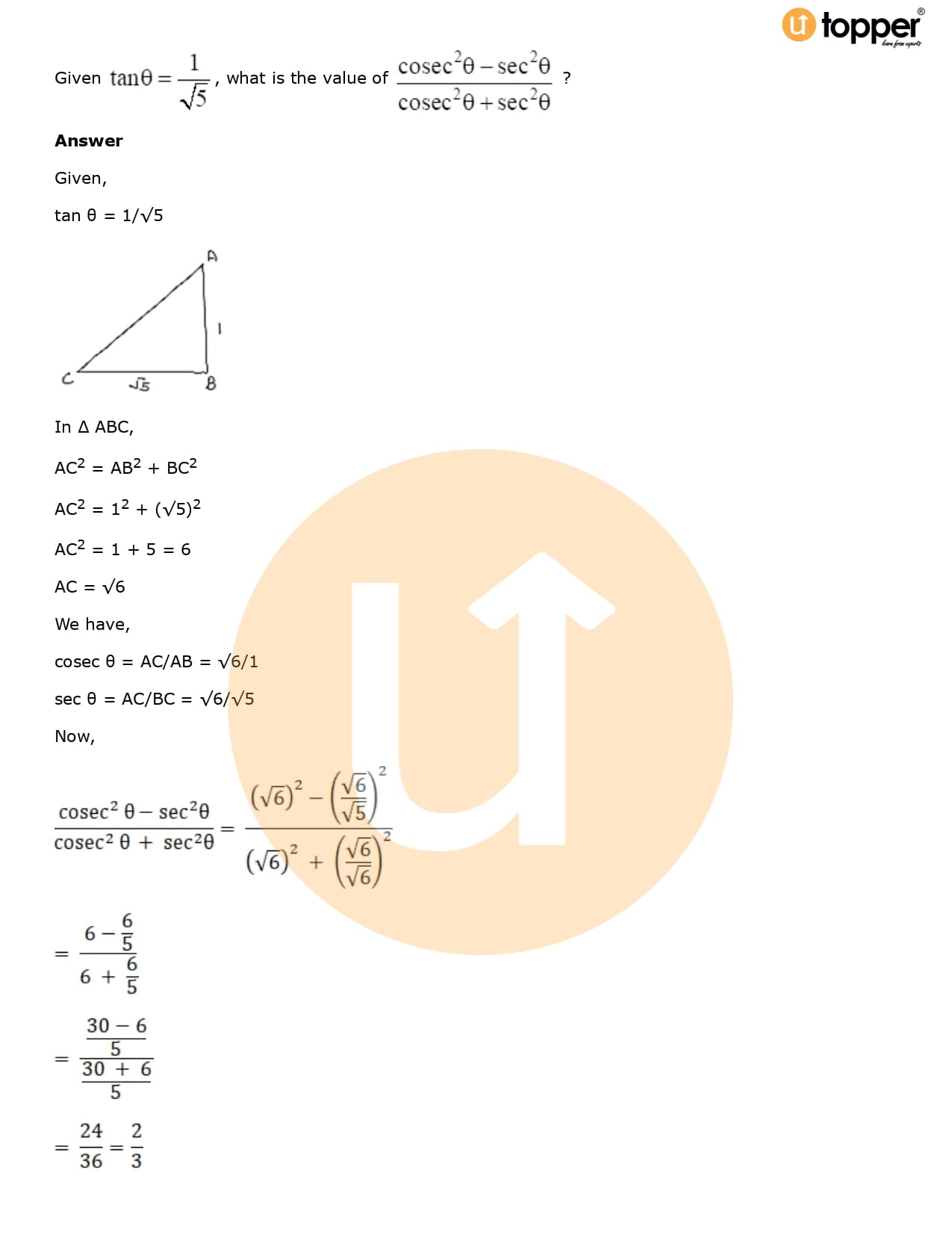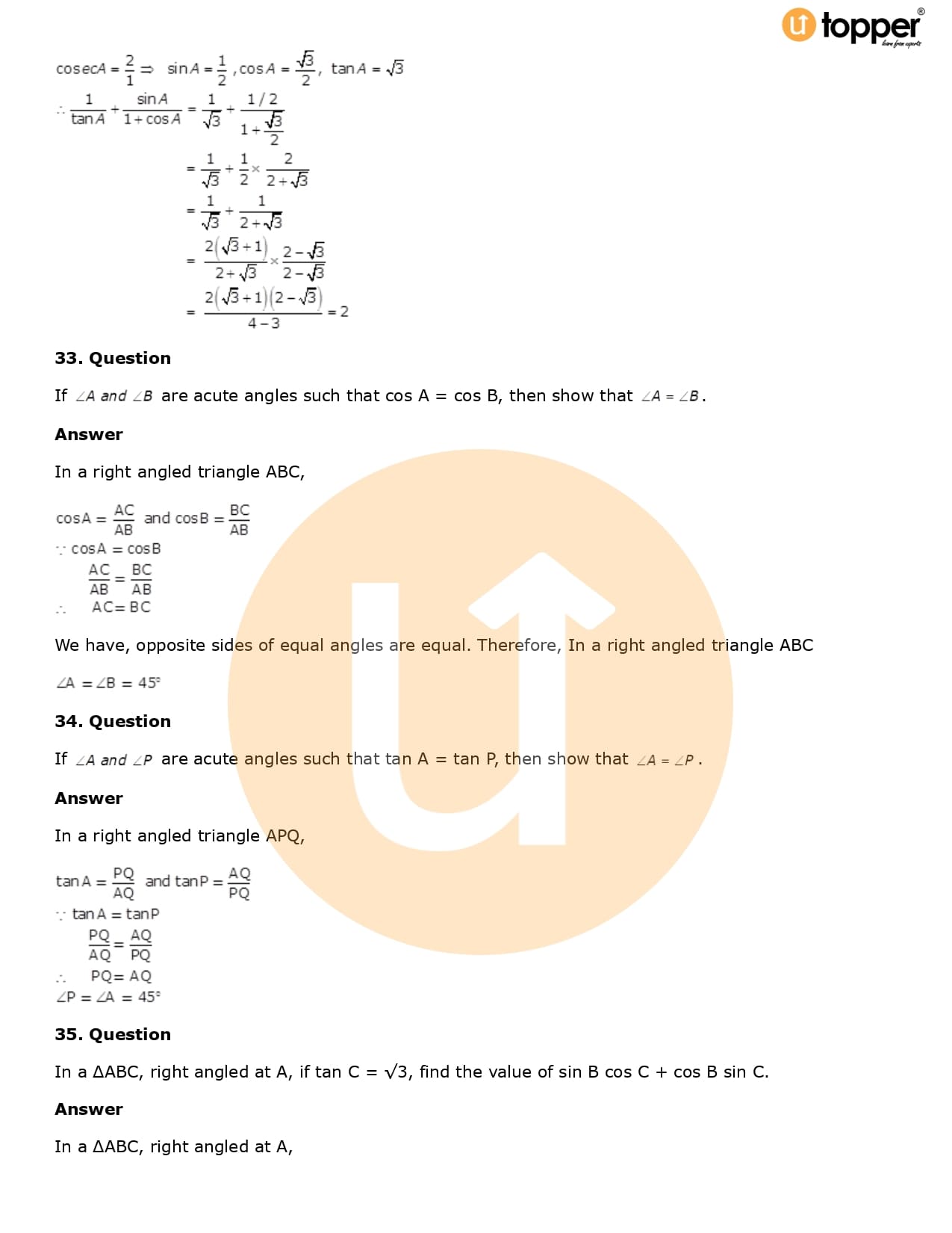 Download the latest version of RD Sharma Solutions for Class 10 Maths Chapter 5 Trigonometric Ratios PDF at Utopper. It provides step by step Solution PDF. You can download RD Sharma Maths Solutions with a free PDF download option, which includes chapter wise solutions. All the questions in RD Sharma Solutions have been solved and explained by expert mathematics teachers as per the CBSE Board guidelines. By studying these Maths Solutions, you can easily get good marks in the CBSE board exams.