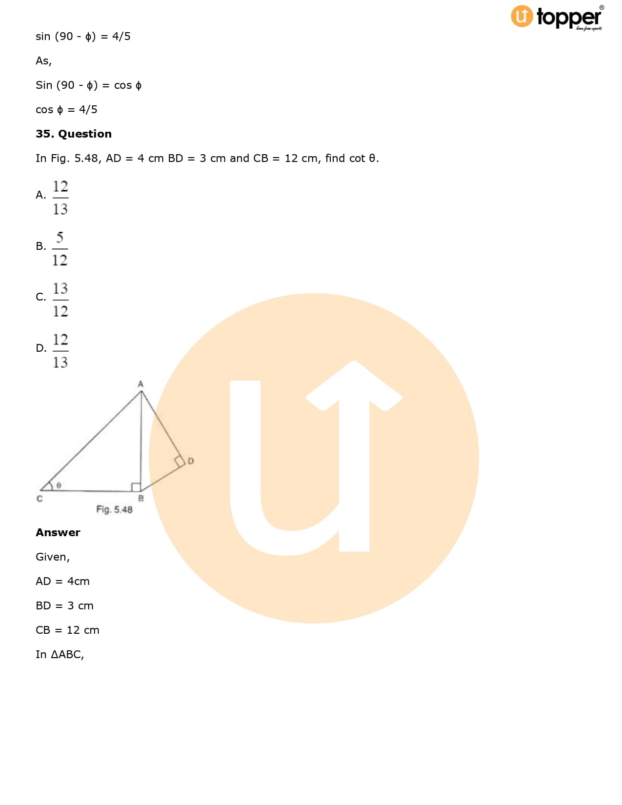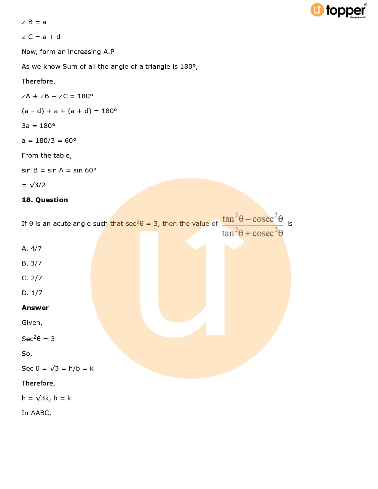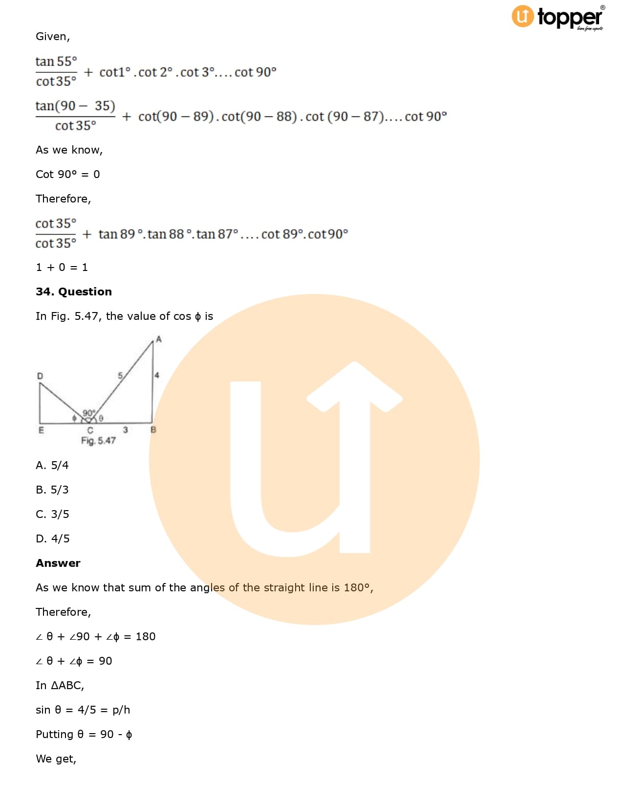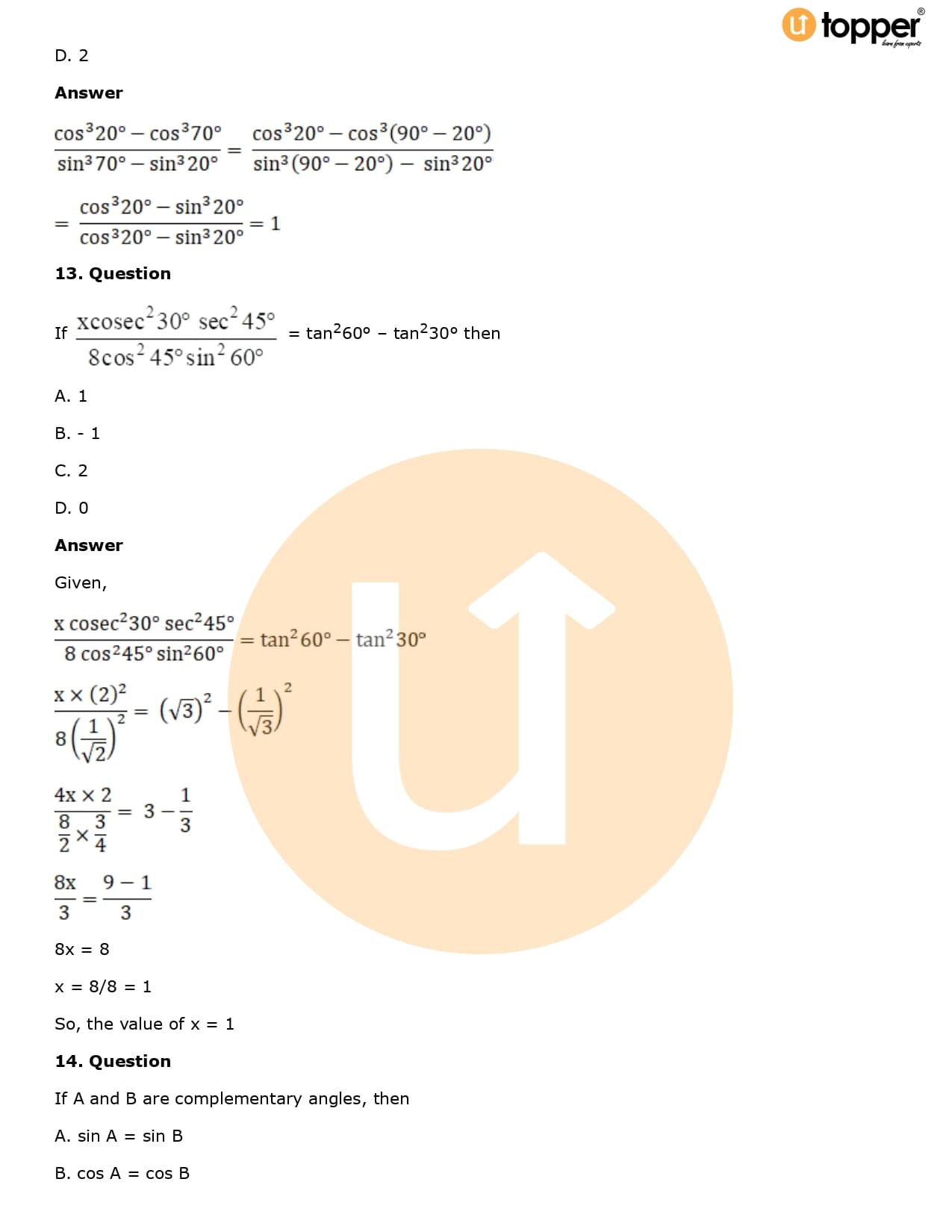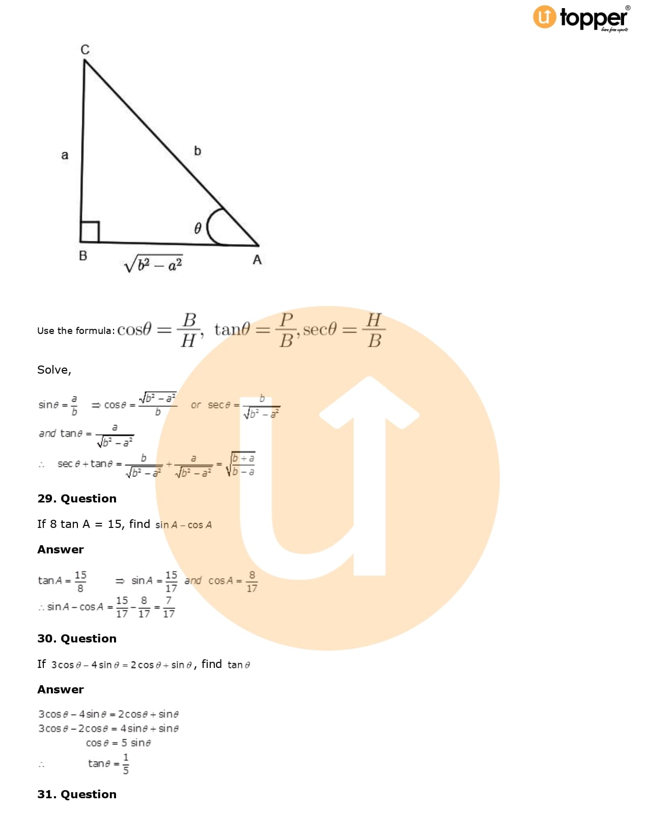 Download the latest version of RD Sharma Solutions for Class 10 Maths Chapter 5 Trigonometric Ratios PDF at Utopper. It provides step by step Solution PDF. You can download RD Sharma Maths Solutions with a free PDF download option, which includes chapter wise solutions. All the questions in RD Sharma Solutions have been solved and explained by expert mathematics teachers as per the CBSE Board guidelines. By studying these Maths Solutions, you can easily get good marks in the CBSE board exams.