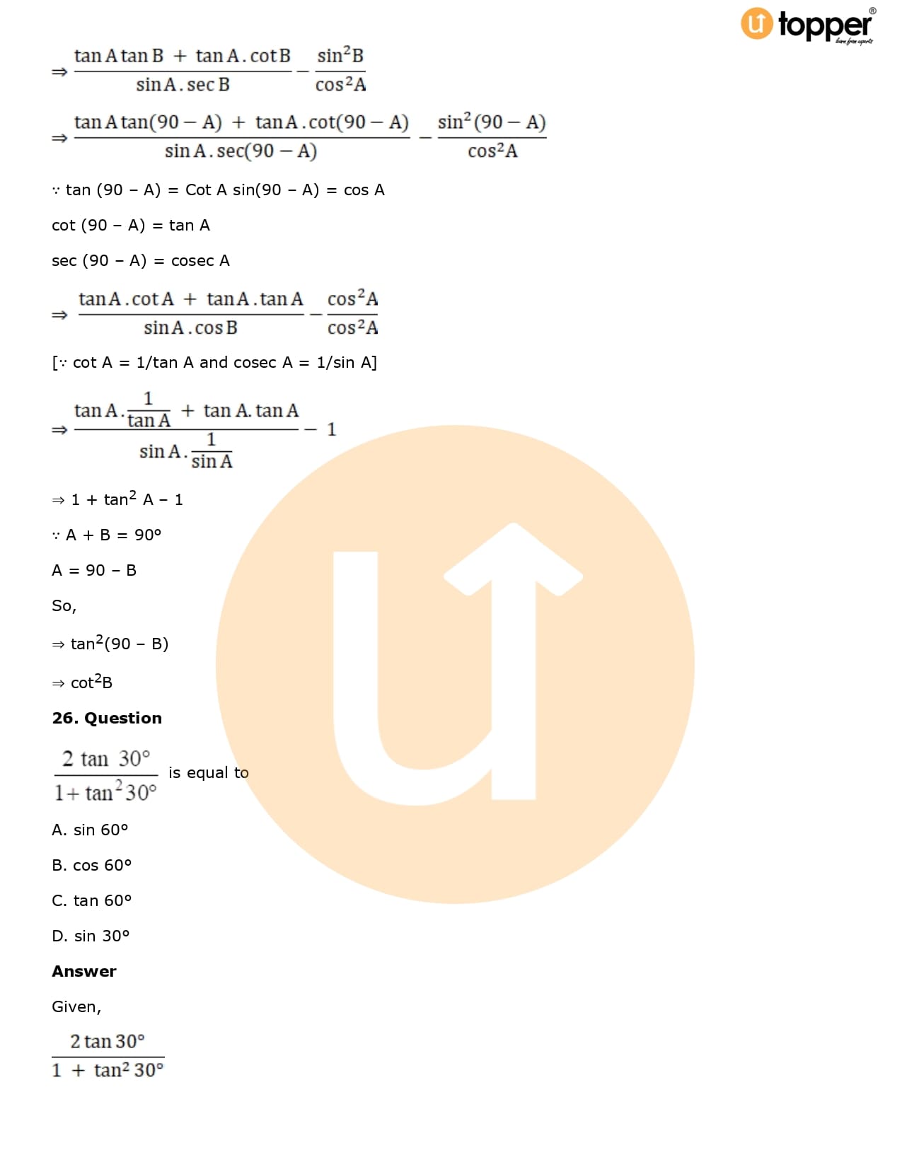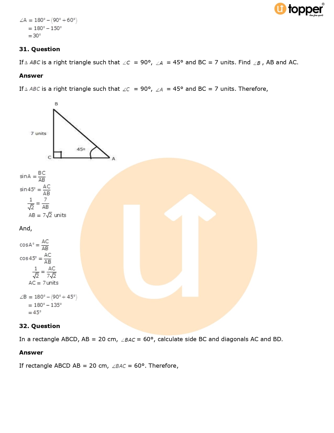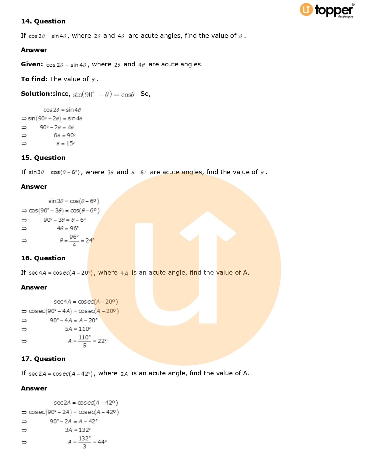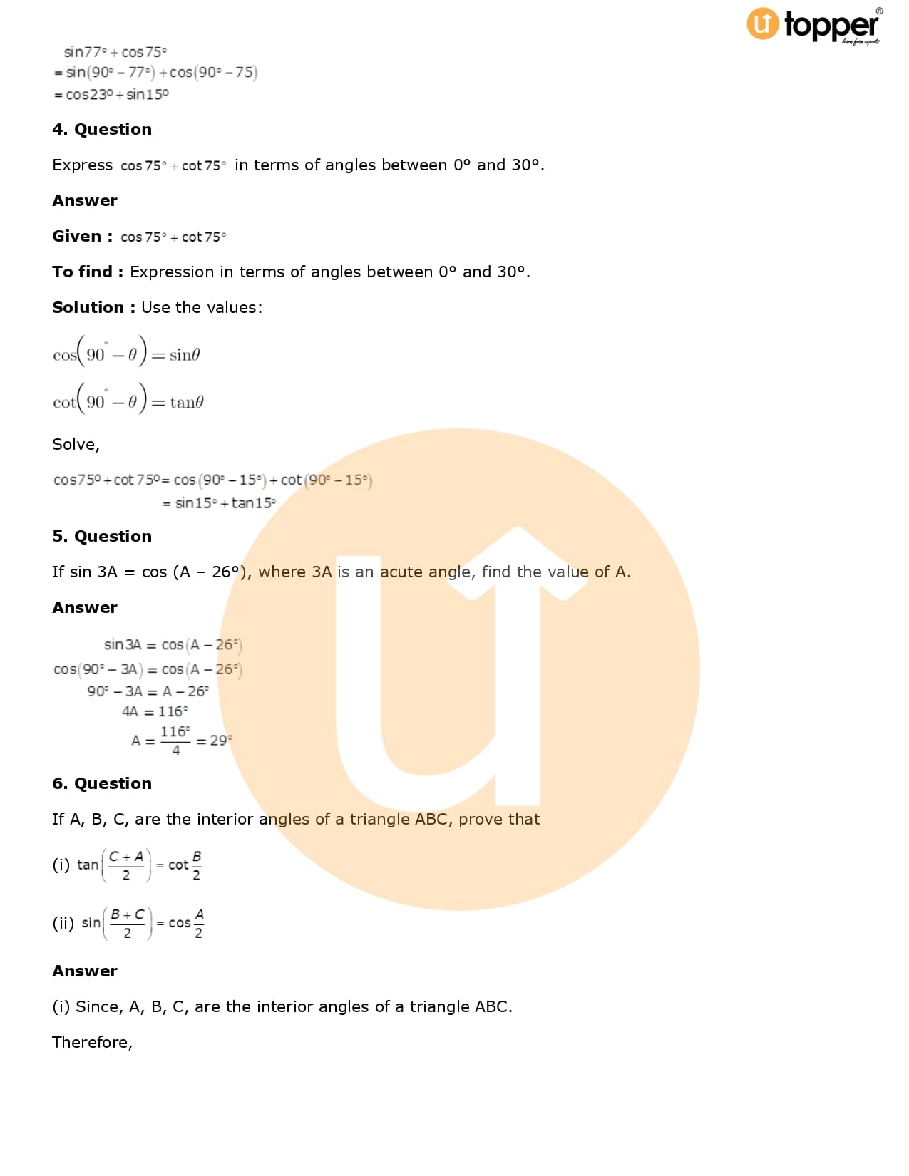 Download the latest version of RD Sharma Solutions for Class 10 Maths Chapter 5 Trigonometric Ratios PDF at Utopper. It provides step by step Solution PDF. You can download RD Sharma Maths Solutions with a free PDF download option, which includes chapter wise solutions. All the questions in RD Sharma Solutions have been solved and explained by expert mathematics teachers as per the CBSE Board guidelines. By studying these Maths Solutions, you can easily get good marks in the CBSE board exams.
