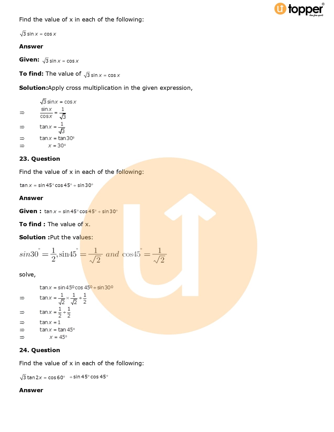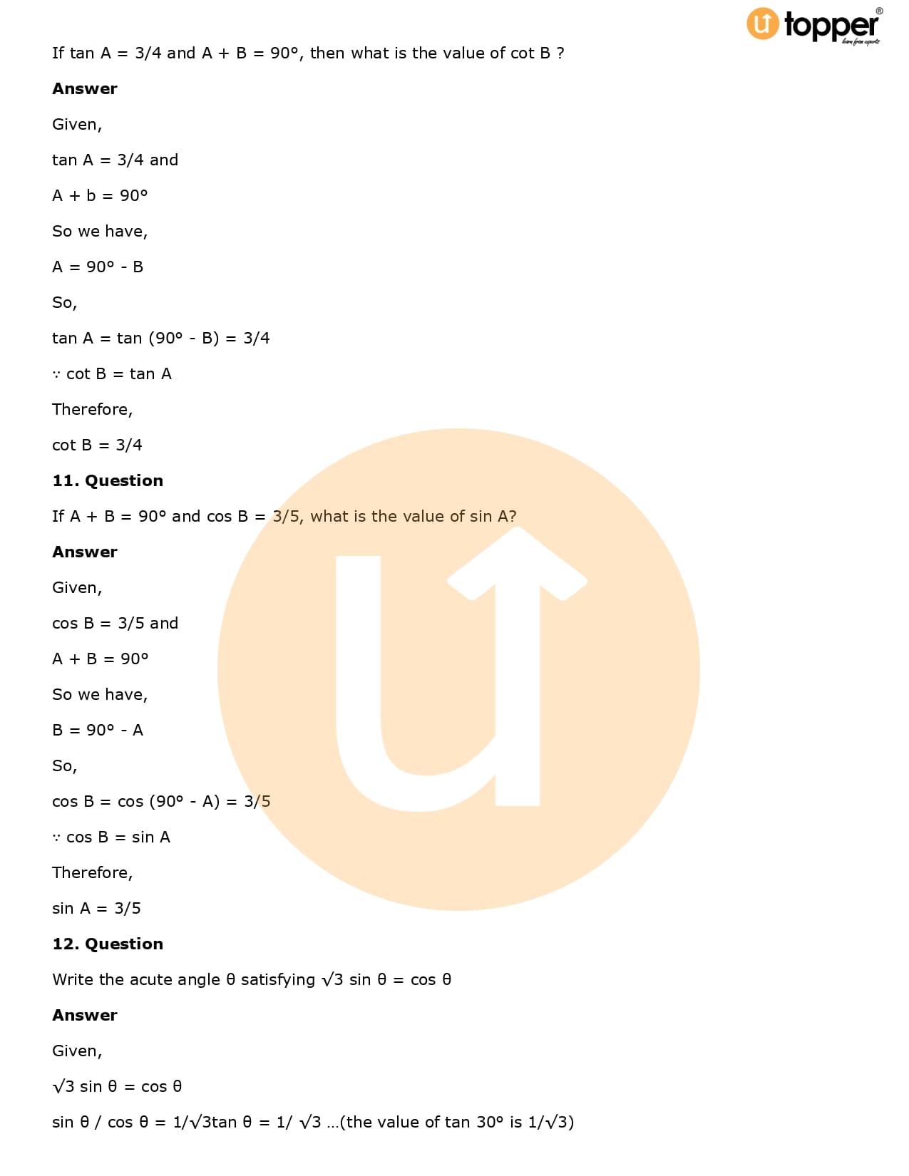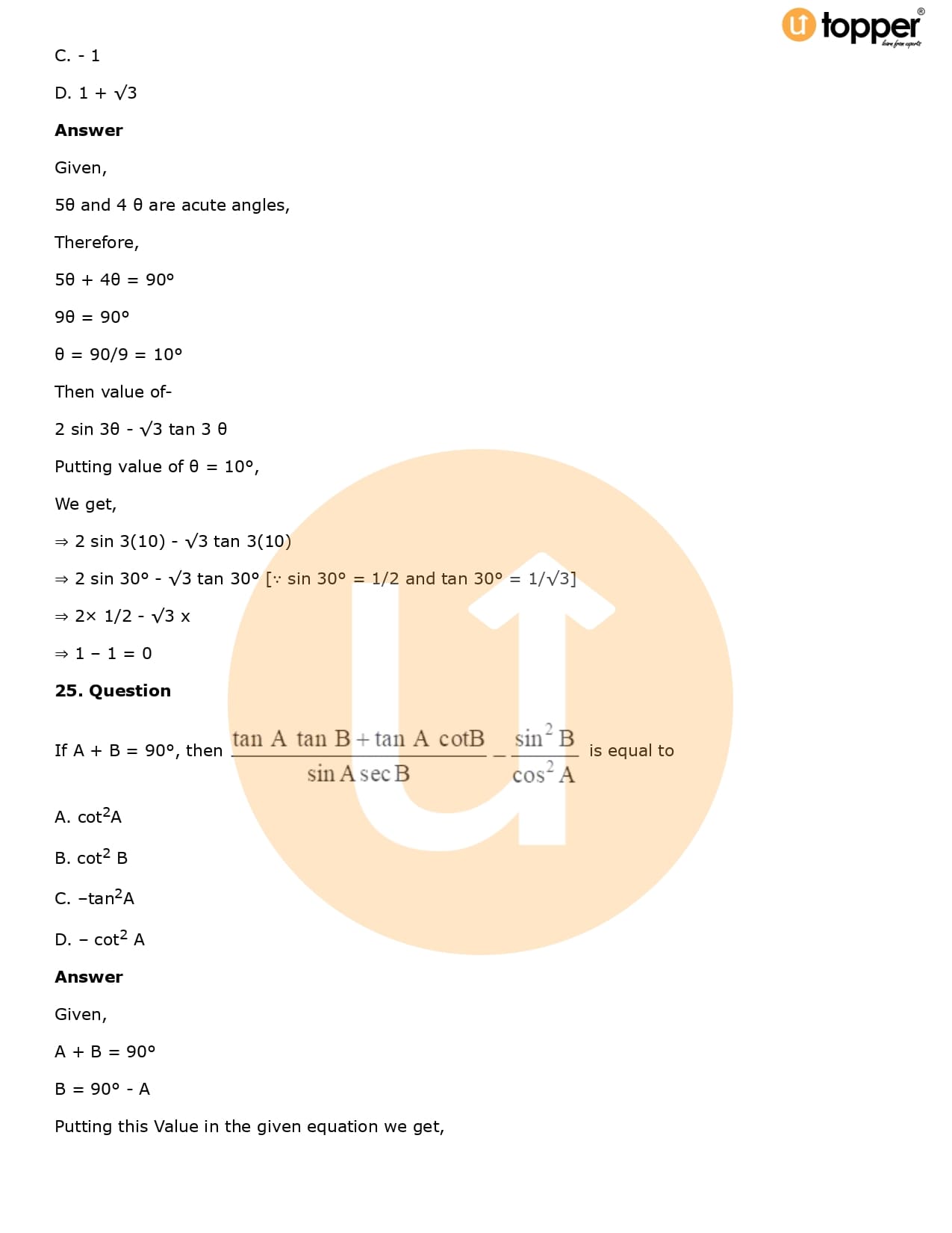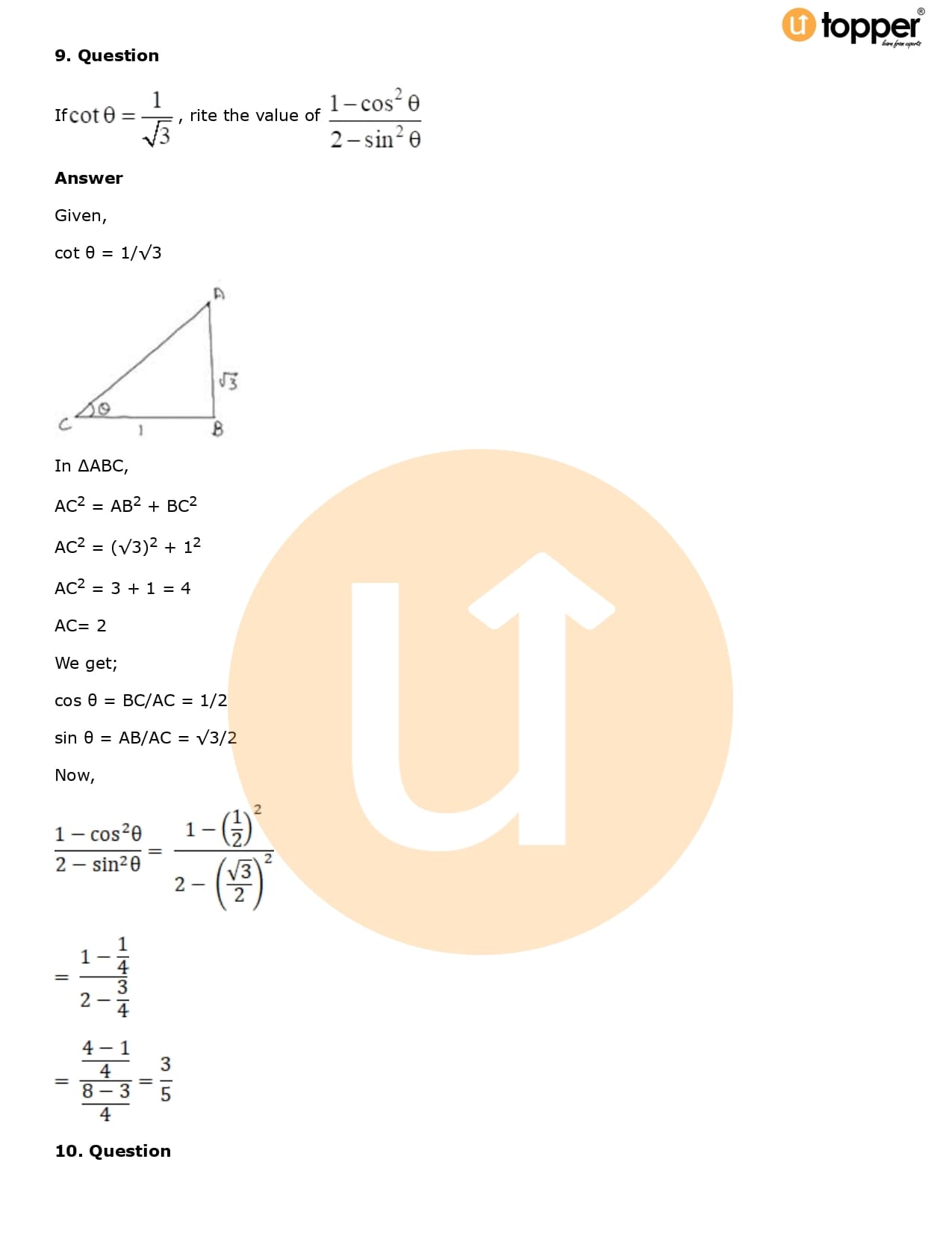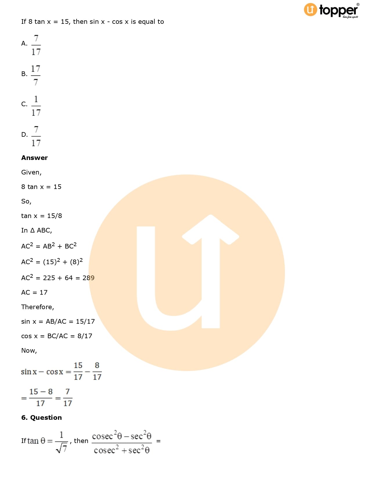 Download the latest version of RD Sharma Solutions for Class 10 Maths Chapter 5 Trigonometric Ratios PDF at Utopper. It provides step by step Solution PDF. You can download RD Sharma Maths Solutions with a free PDF download option, which includes chapter wise solutions. All the questions in RD Sharma Solutions have been solved and explained by expert mathematics teachers as per the CBSE Board guidelines. By studying these Maths Solutions, you can easily get good marks in the CBSE board exams.