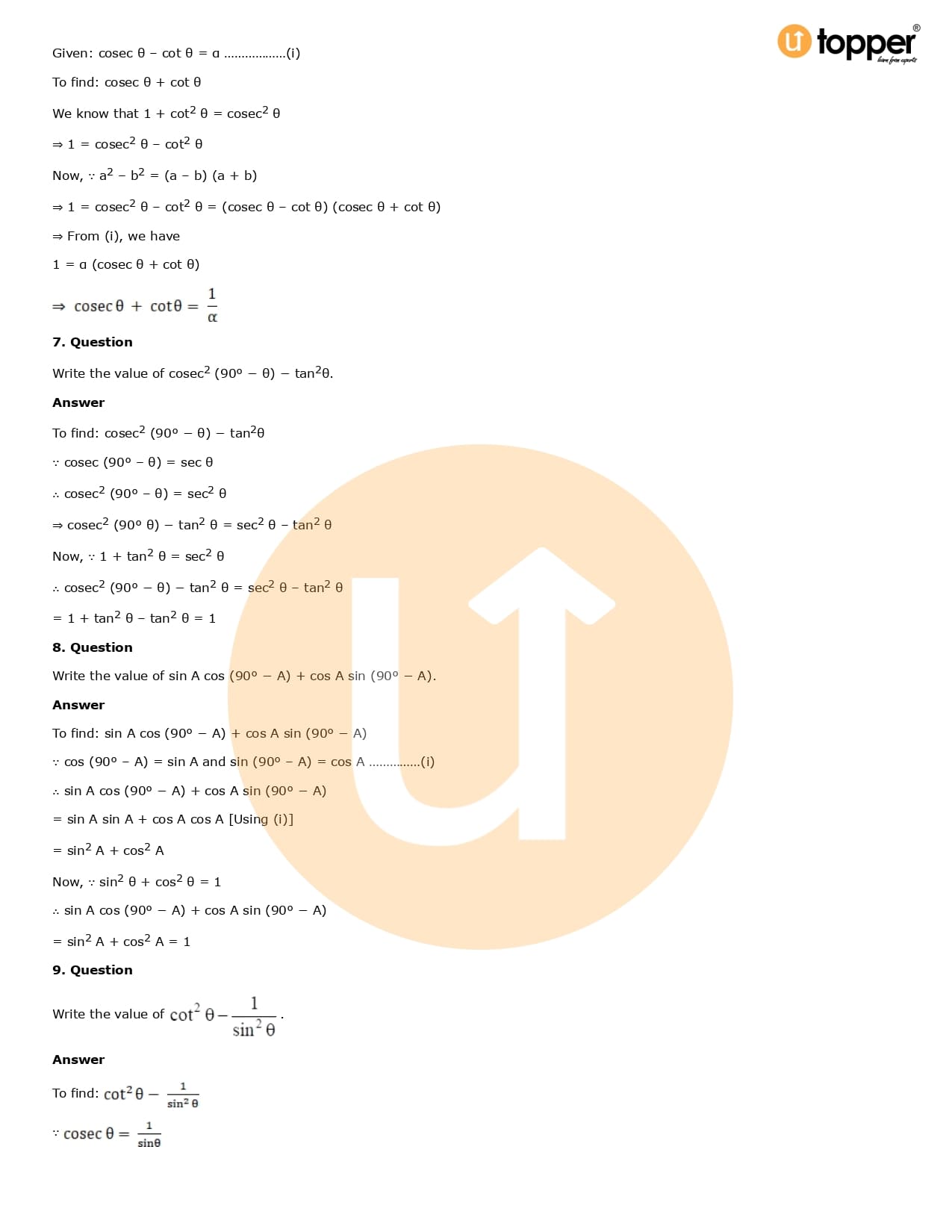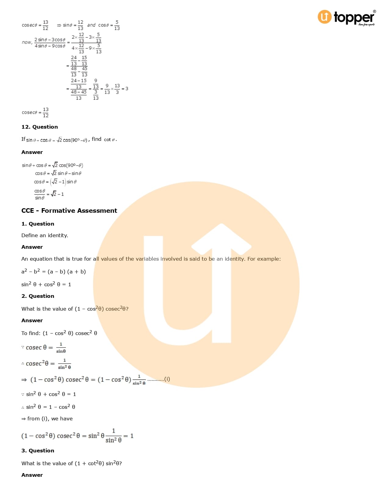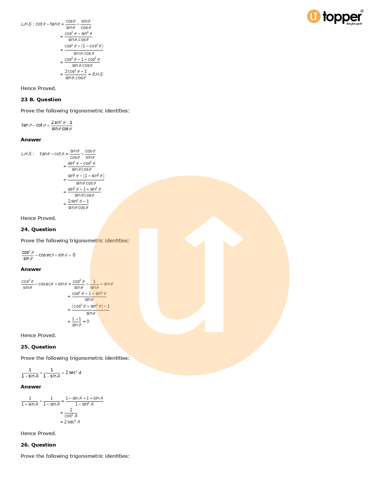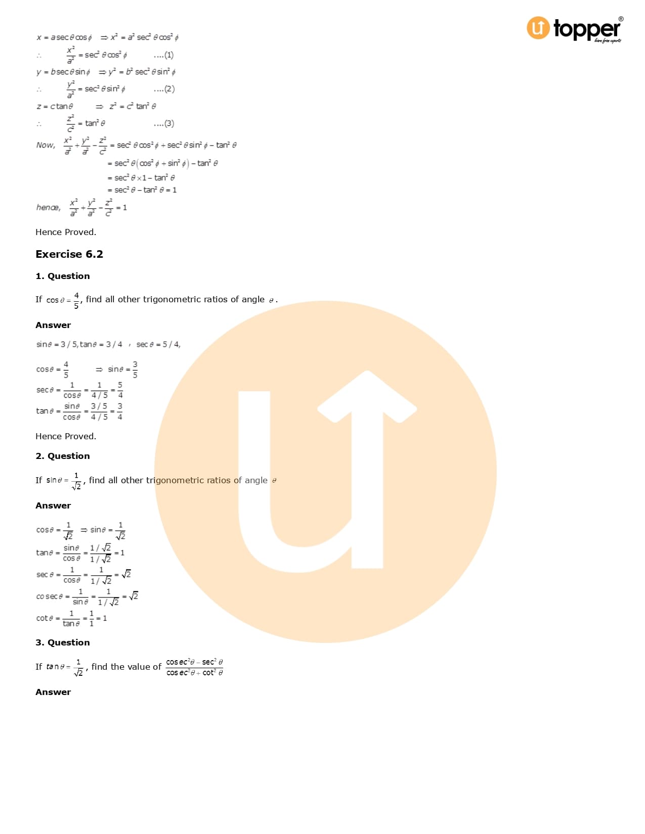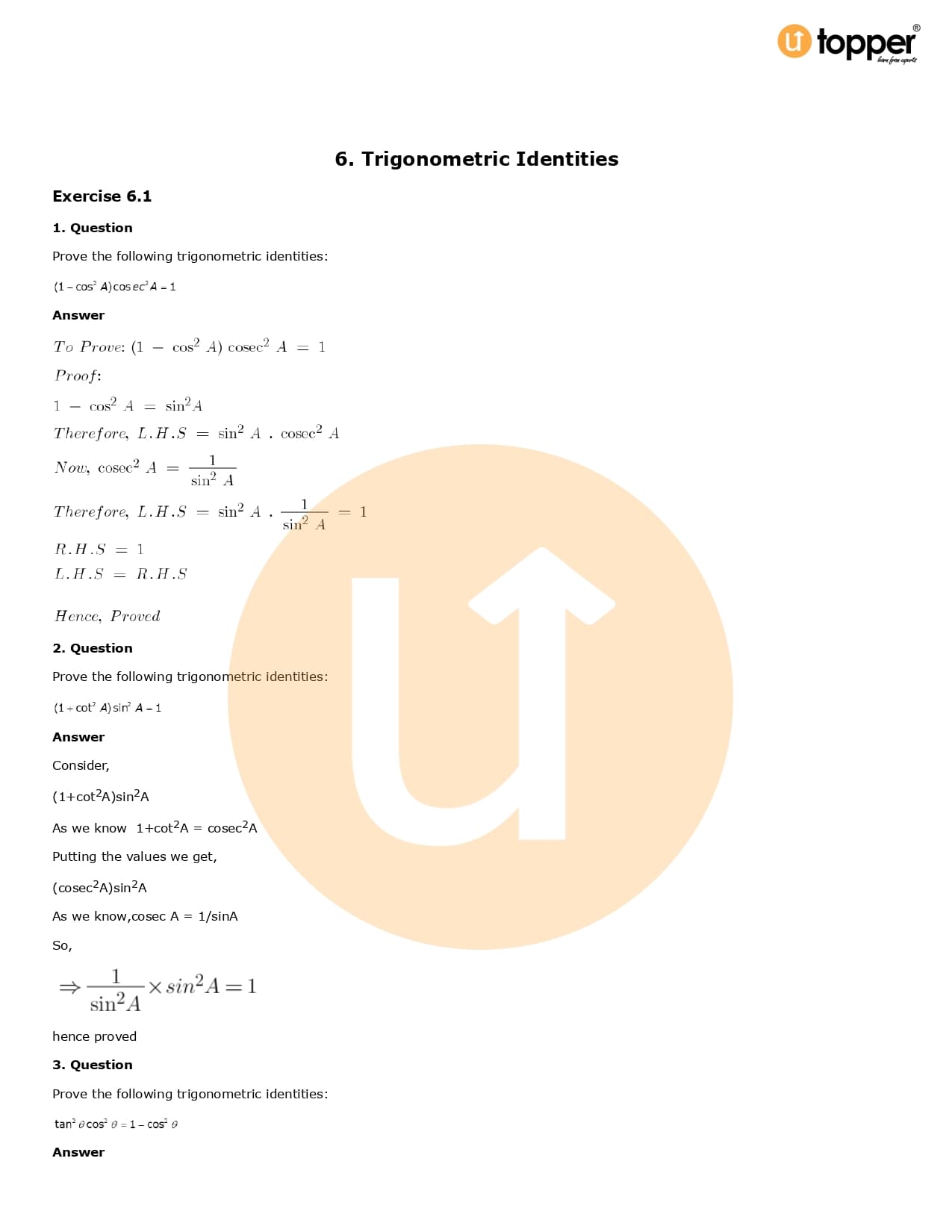 Download the latest version of RD Sharma Solutions for Class 10 Maths Chapter 6 Trigonometric Identities PDF at Utopper. It provides step by step Solution PDF. You can download RD Sharma Maths Solutions with a free PDF download option, which includes chapter wise solutions. All the questions in RD Sharma Solutions have been solved and explained by expert mathematics teachers as per the CBSE Board guidelines. By studying these Maths Solutions, you can easily get good marks in the CBSE board exams.