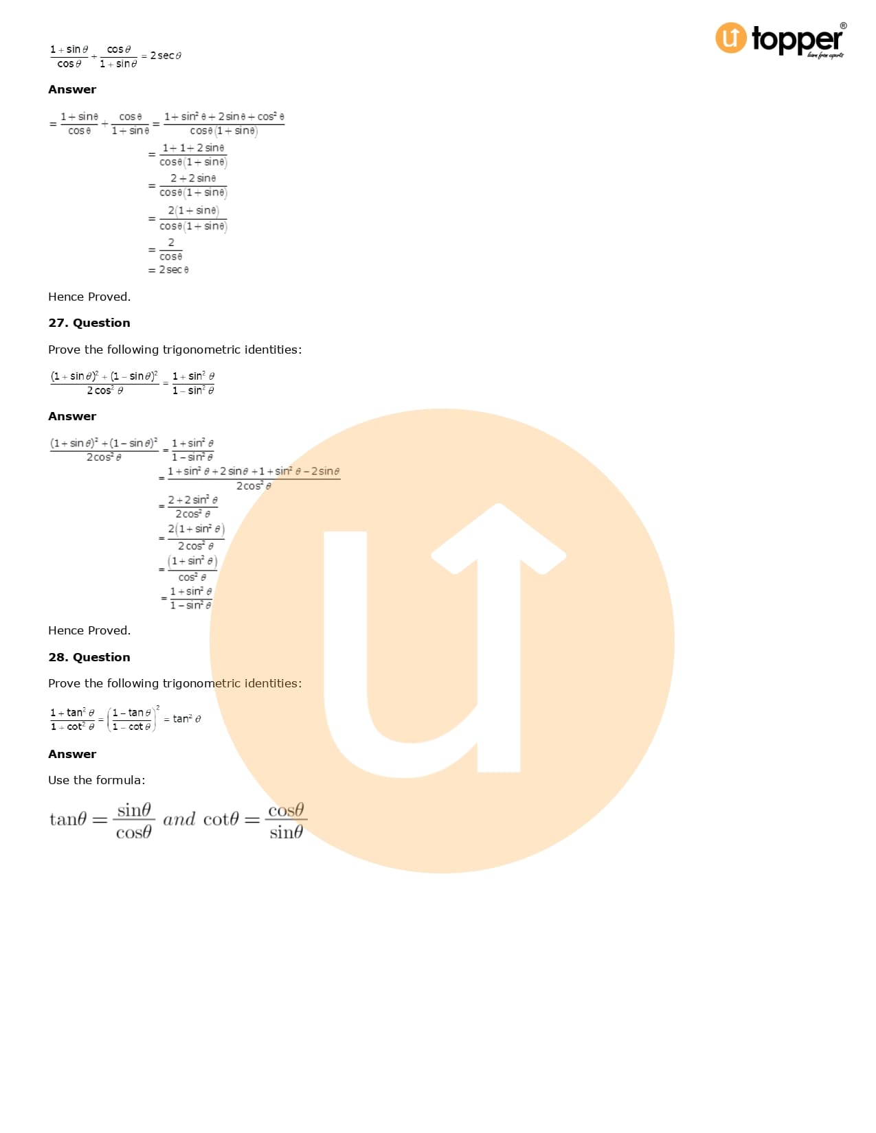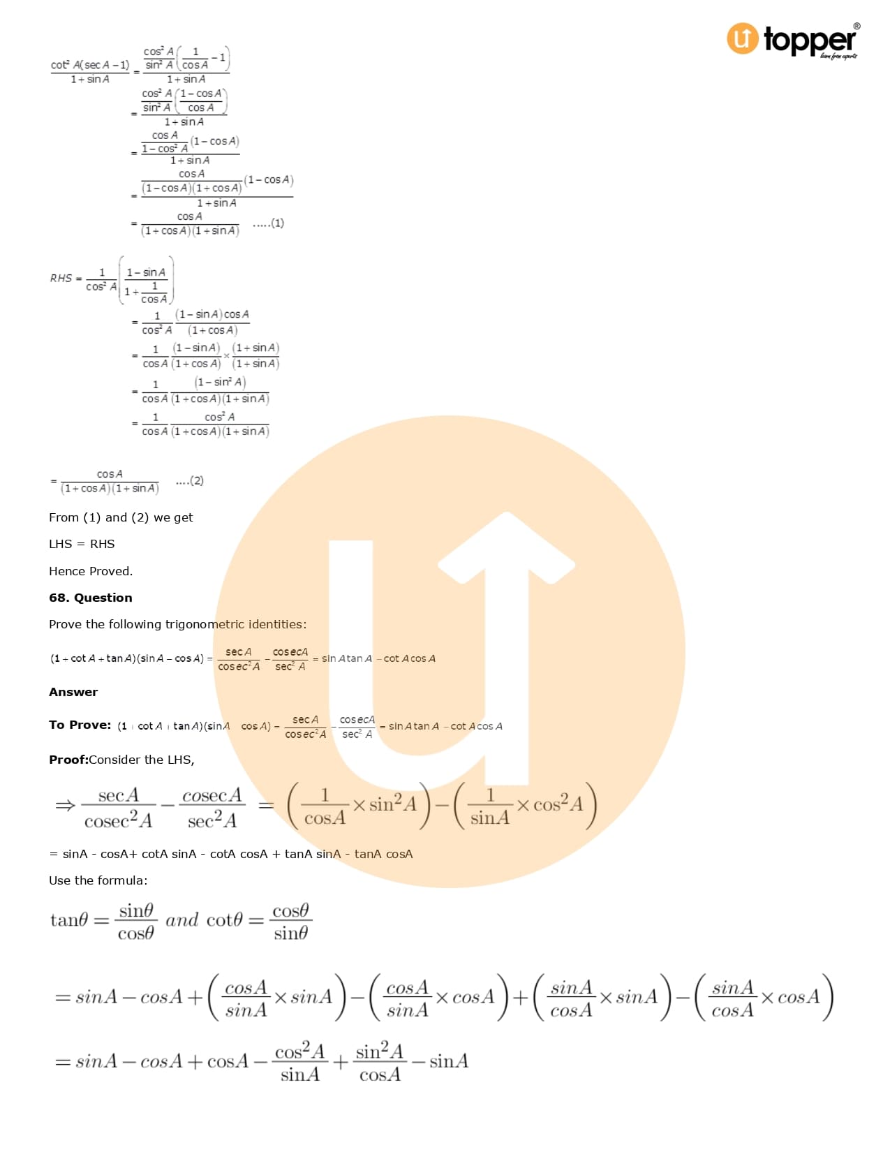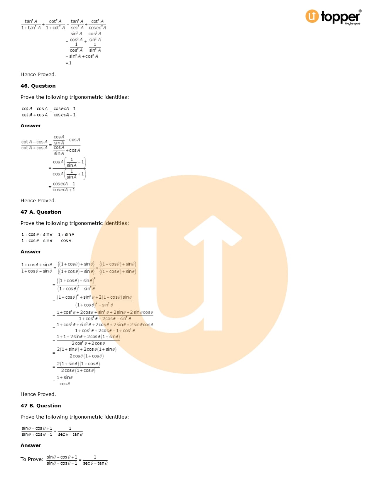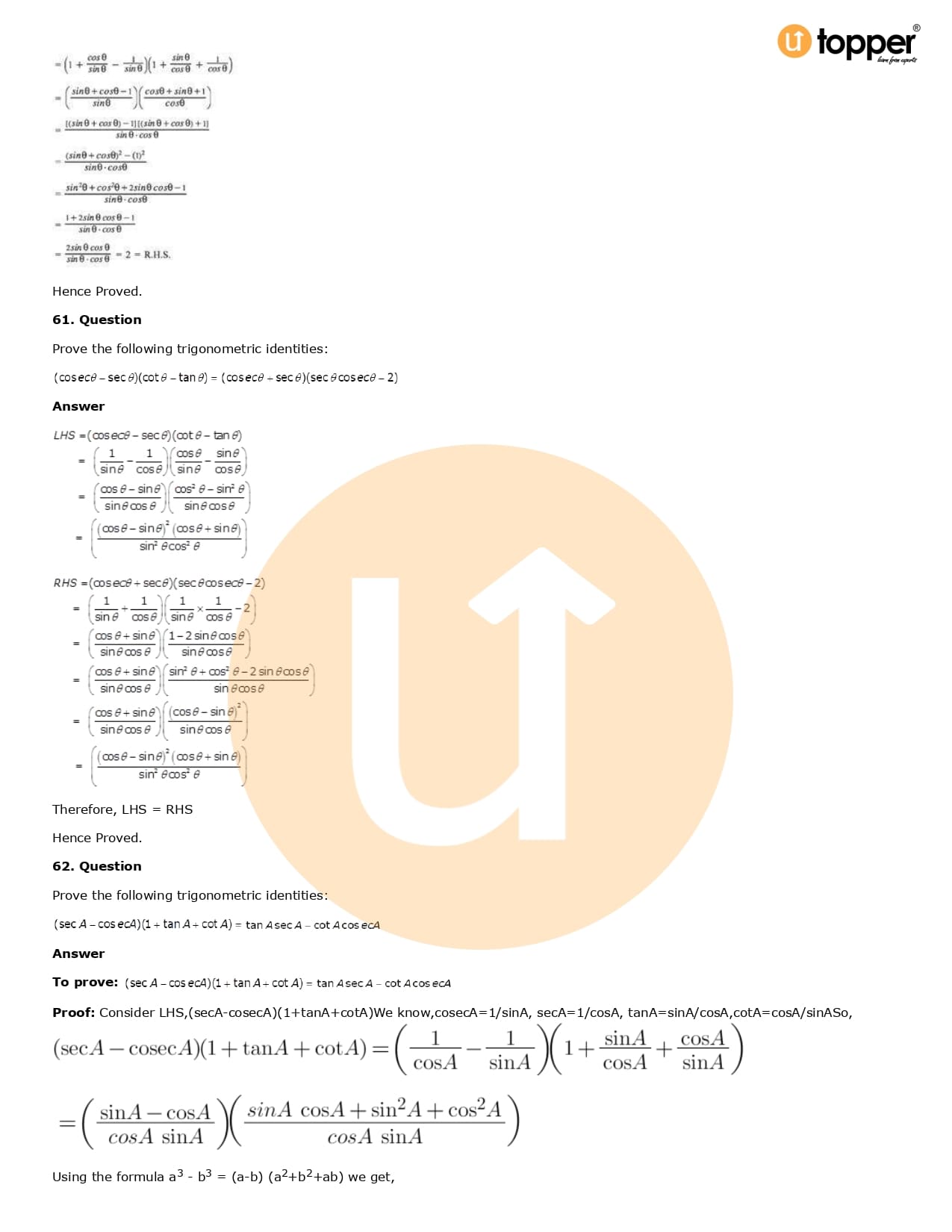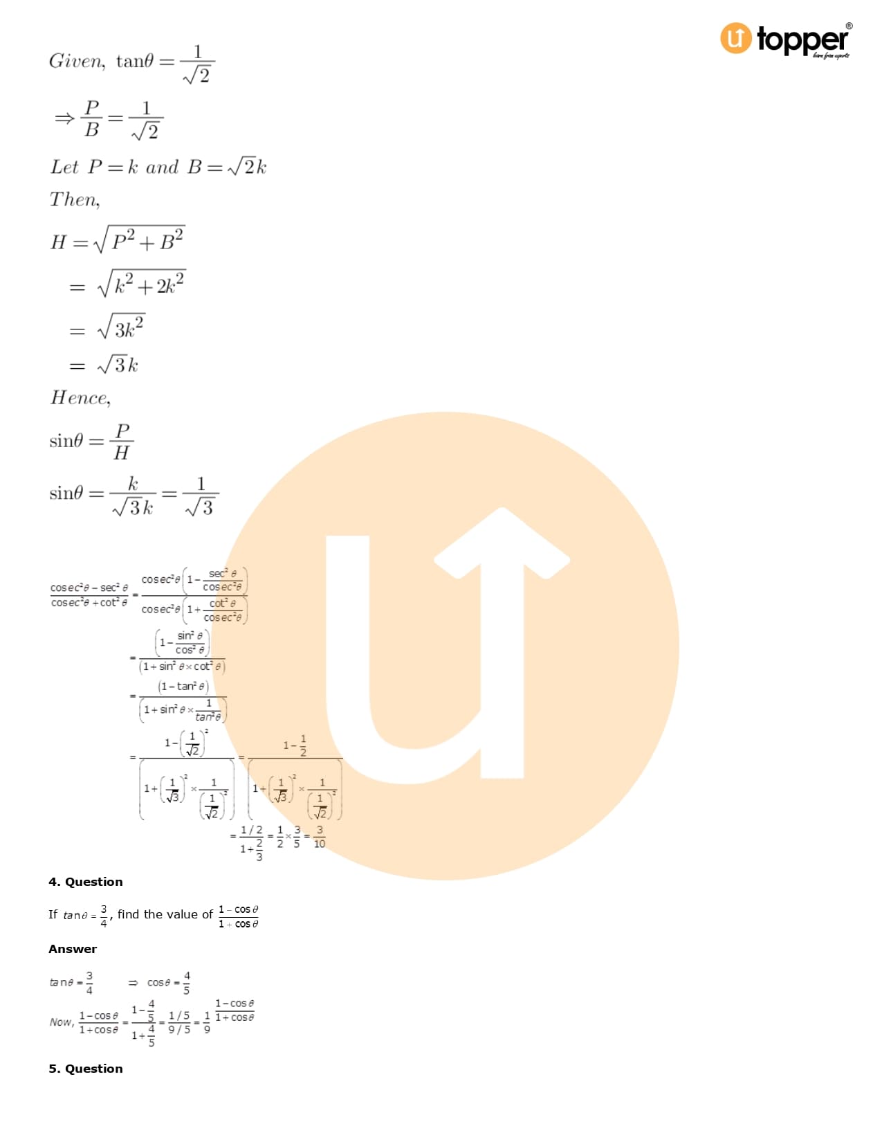 Download the latest version of RD Sharma Solutions for Class 10 Maths Chapter 6 Trigonometric Identities PDF at Utopper. It provides step by step Solution PDF. You can download RD Sharma Maths Solutions with a free PDF download option, which includes chapter wise solutions. All the questions in RD Sharma Solutions have been solved and explained by expert mathematics teachers as per the CBSE Board guidelines. By studying these Maths Solutions, you can easily get good marks in the CBSE board exams.